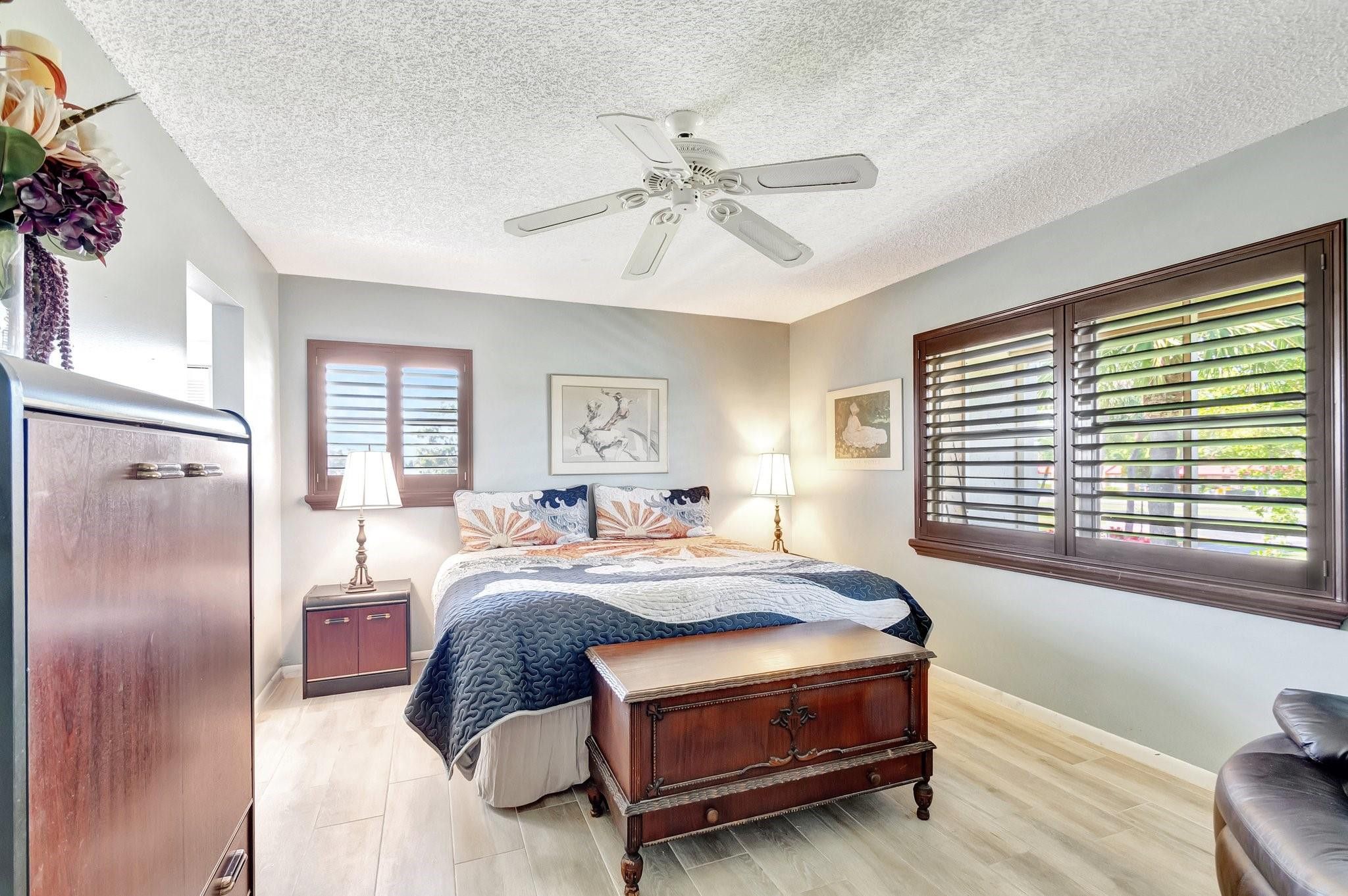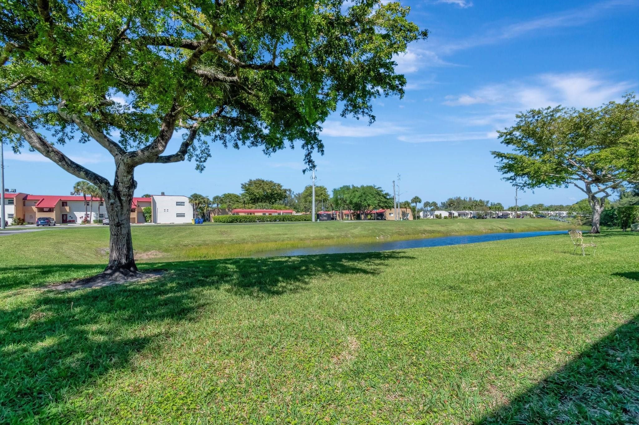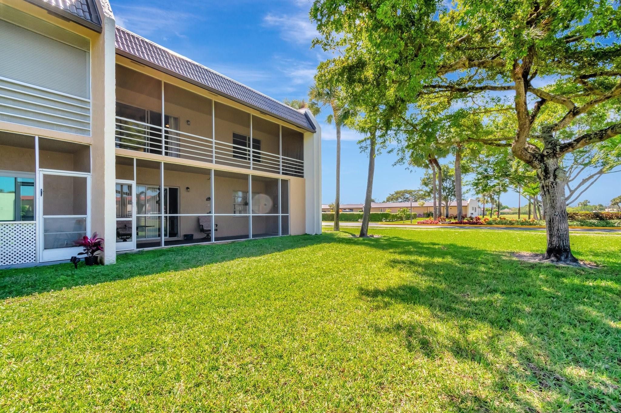 The absolute BEST priced, largest floor plan corner unit is now available to be yours. This unit has a new roof. The extra large screened patio has new screening for you enjoy the quiet of the canal view & large open green space. The large two bedrooms are a split plan with two full baths. The primary bedroom has beautiful plantation shutters. A new dishwasher & new garbage disposal awaits the new owner. The community provides Xfinity Cable and HBO, high speed internet, water, all exterior insurance & a wide selection of programs with an onsite Activities Director. Pickleball, Tennis, Bocci, Water Aerobics, on site restaurant, Zumba, heated pools & so much more is offered. Guard gated in the fantastic location of W. Palm Beach. Close to the airport, downtown, dining Don't miss this one.