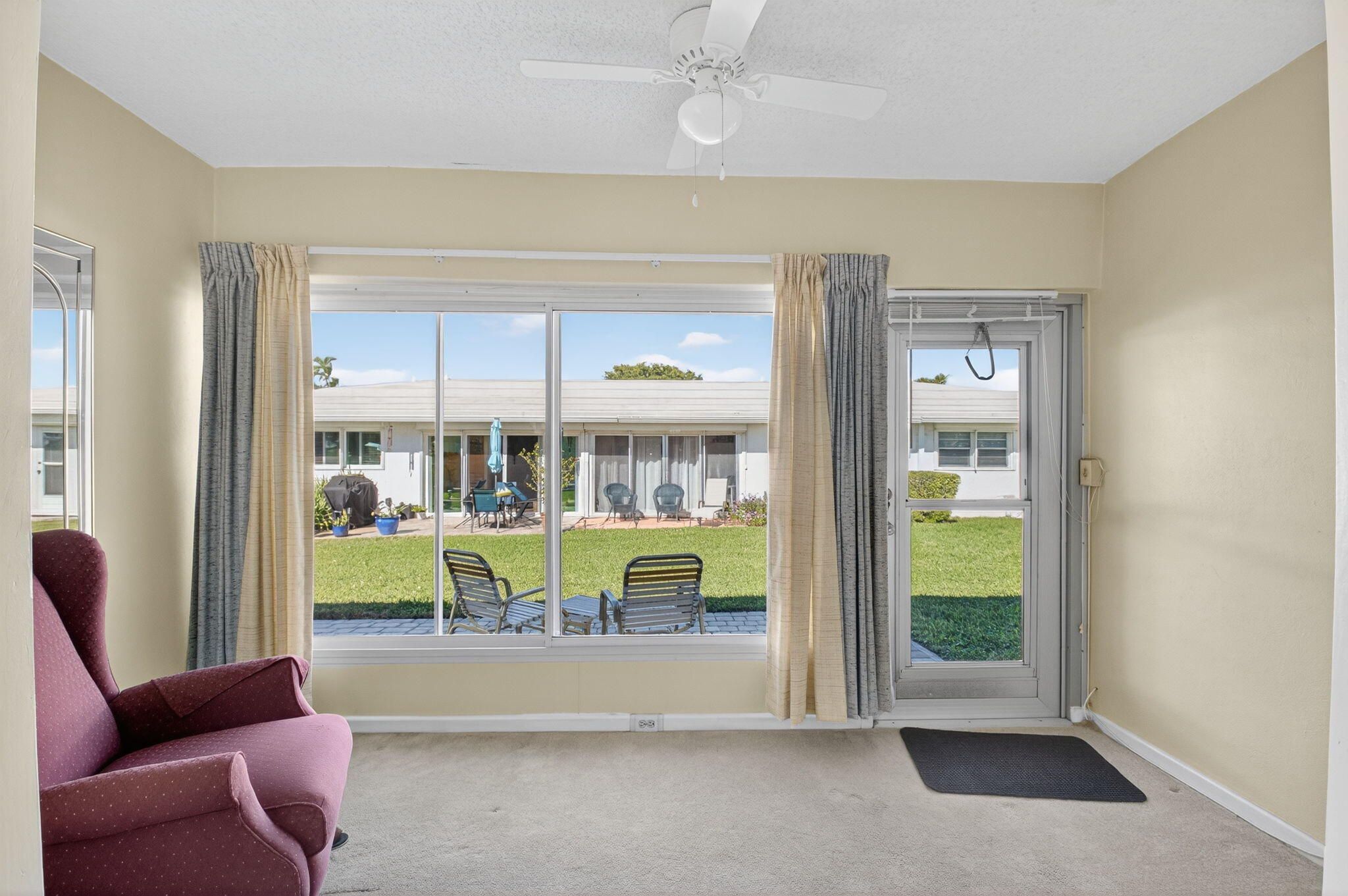 Welcome to this charming 2-bedroom, 2-bath villa-style condo located in the highly desirable 55+ community of Palm Beach Leisureville. Enjoy the comfort and convenience of true one-level living—no steps, no stairs, just an easy, accessible layout designed for everyday ease. This home has been thoughtfully updated for peace of mind, featuring a replaced electrical panel, newer water heater, and a newer HVAC system to keep you comfortable year-round. You'll also appreciate the complete hurricane protection for added security and confidence during storm season. Palm Beach Leisureville is known for its exceptional amenities and beautifully maintained grounds. Residents enjoy access to a free par-three golf course, perfect for casual rounds with friends. The community is surrounded by winding lakes and tranquil canals, creating a picturesque backdrop for daily living. With three fully equipped clubhouses, there's always something to do. Each clubhouse offers its own pool, steam room, sauna, hot tub, fitness center, billiards and card rooms, plus shuffleboard, bocce courts, and a library. Hobbyists will love the dedicated hobby and woodworking shop, ideal for creative projects and hands-on fun. Whether you're seeking an active lifestyle or a peaceful retreat, this villa offers the best of both worlds in one of the area's most welcoming 55+ communities. Don't miss the chance to make it yours!