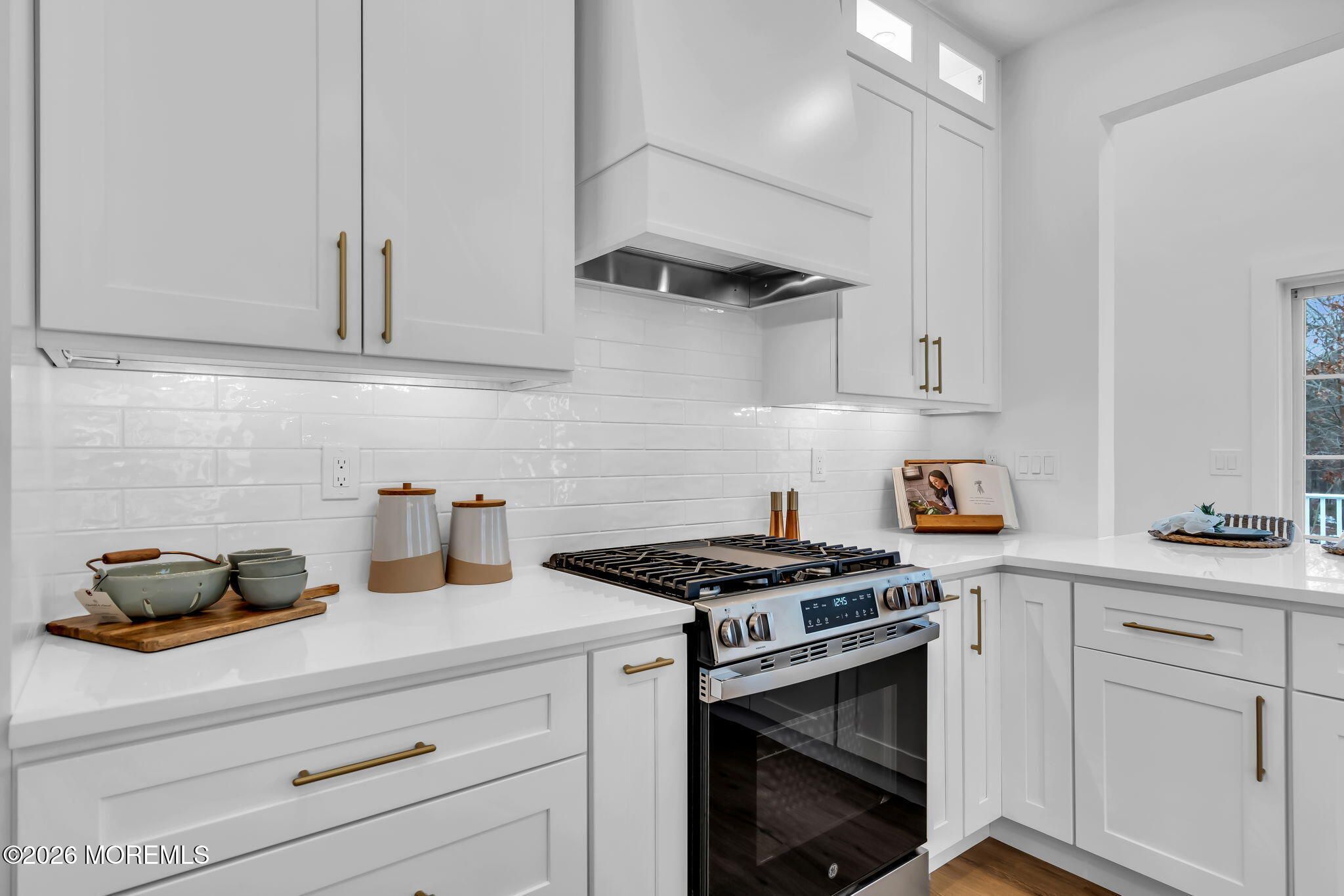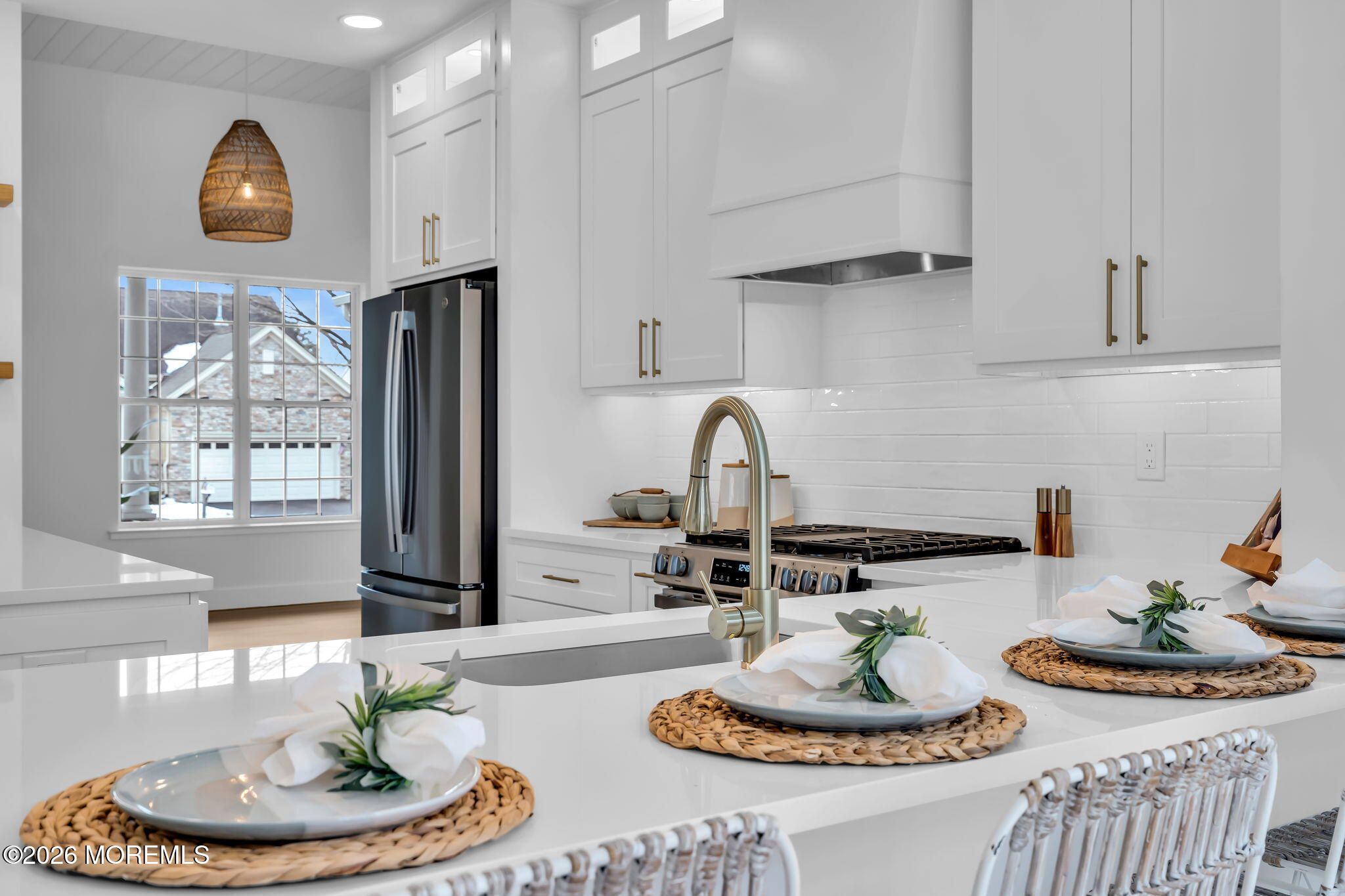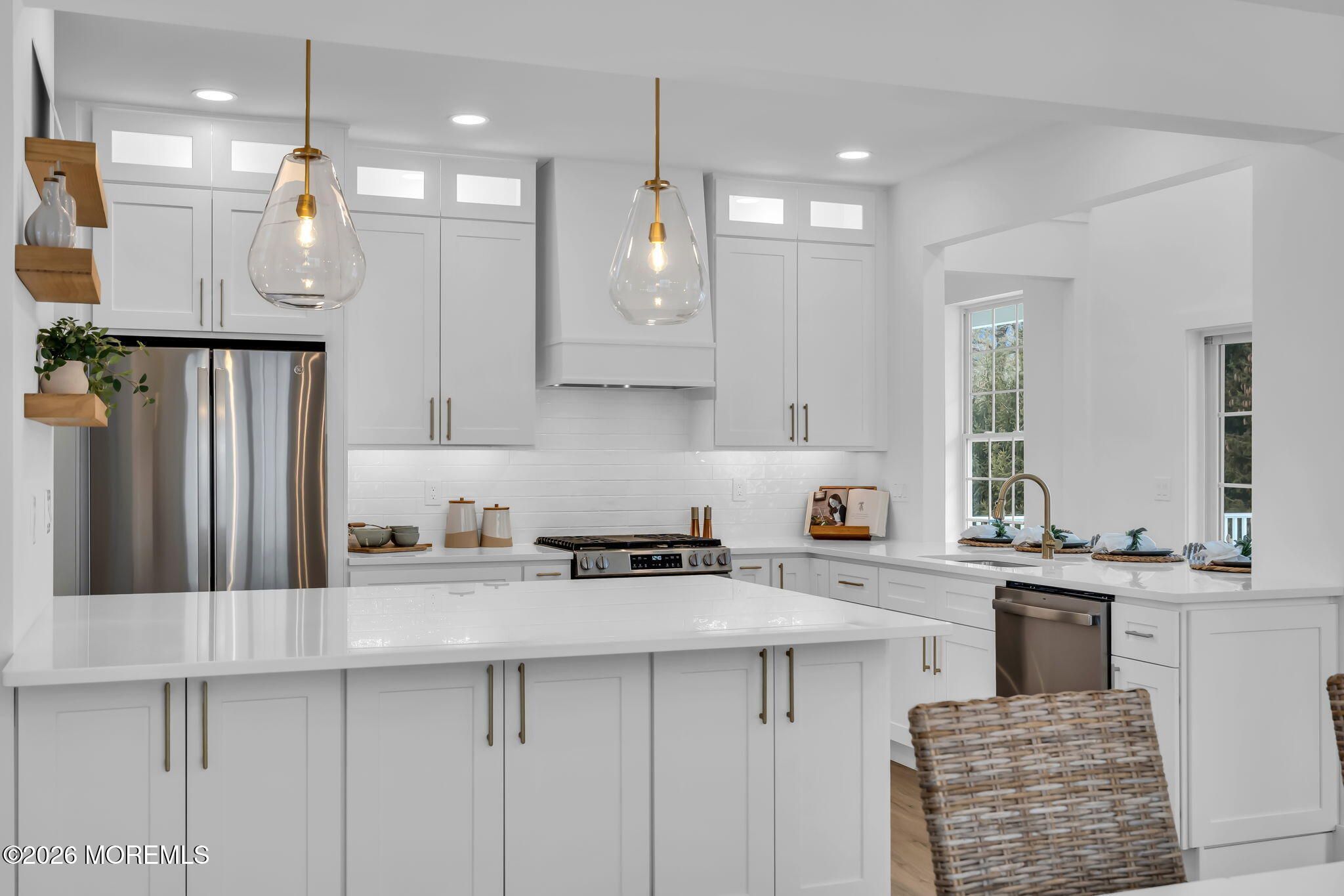 Welcome to 100 Mission Way, a beautifully updated home set on a premium lot with a serene, park-like backdrop. Straight out of HGTV, this exceptional 3-bedroom, 3.5-bath residence with a fully finished basement and attached two-car garage. Every detail has been thoughtfully curated with no expense spared. Upon entry, you're greeted by a dramatic two-story living room flooded with natural light, creating an airy and impressive first impression. The open-concept design flows effortlessly, making everyday living and entertaining seamless. The designer kitchen is a true centerpiece, featuring quartz countertops, white cabinetry, stainless steel appliances, a custom hood, and a sleek in-island microwave. Recessed lighting, custom millwork, beautiful flooring, and a striking double-sided fireplace add warmth and architectural interest throughout the main level. The primary suite serves as a private retreat, complete with two walk-in closets and a spa-inspired en-suite bath featuring a double vanity, soaking tub, and walk-in shower -- the perfect space to relax and recharge. Upstairs offers an additional bedroom, full bath, and versatile flex room ideal for a home office, guest suite, or playroom. Each additional bathroom has been tastefully updated with modern finishes and thoughtful design. The fully finished basement extends your living space, ideal for a media room, fitness area, or recreation lounge. Step outside to a beautiful deck overlooking the peaceful backyard -- perfect for quiet mornings or hosting gatherings in your own private oasis. Conveniently located near shopping, dining, and beaches, this home perfectly balances style, comfort, and accessibility. Schedule your private showing today -- homes like this don't last.