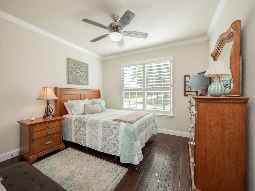 Beautifully maintained and desirable Abbeyville Plan one-owner custom-built home in a desirable 55+ community, situated on a corner lot with 2 bedrooms, 2 baths, plus a versatile multipurpose room or office. Spanning 2,125 square feet, this thoughtfully designed residence offers comfort, style, and convenience with numerous upgrades throughout. The open living area features a cozy gas fireplace, while upgraded lighting, including elegant island pendants and decorative fixtures, adds a touch of sophistication. The all-weather spa room, connected to the primary suite and featuring a second fireplace, provides the perfect place to relax year-round. Wide-plank engineered flooring runs throughout (no carpet), with tile in the bathrooms and the utility room. Outdoor living is exceptional with a sunroom, an expansive 12x25 deck with an extended gas line, a concrete sitting area with a fire pit, and privacy screens around the patio. The fenced backyard, featuring wrought iron and puppy wire, is beautifully adorned with five mature Live Oaks—two in the backyard, two along the side, and one gracing the front yard. One of the backyard trees is a distinguished Heritage Oak estimated to be over 100 years old, adding rare character and history to the landscape.. Additional highlights include a smart electronic sprinkler system, structured wiring for high-speed internet, an oversized garage with a utility sink, and a transferable Choice Home warranty that will be conveyed to the buyers at no cost. Located within a 10-minute walk to the amenity center offering pools, a weight room, and social activities. Residents of Sun City also enjoy exclusive access to three private golf courses, available only to those living within the community.. Conveniently close to Williams Drive for easy access in and out of the community.