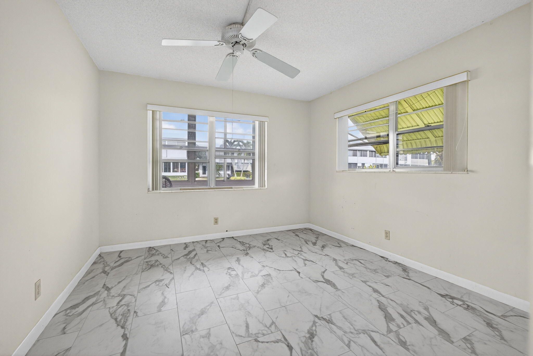MOVE IN READY 2 BED 1.5 BATHS GROUND FLOOR CORNER PARTIALLY FURNISHED UPDATED WHITE KITCHEN WITH GRANITE COUNTERS VERY CLEAN NO CARPETING EXTRA WINDOWS EXTRA SUNLIGHT CENTRAL AIR CONDITIONING. WELL MANAGED ASSOCIATION ROOF WAS REPLACED 2023 AND THEY HAVE AN OPEN PATIO TO SIT OUT AND RELAX ON. FANTASTIC CENTRAL LOCATION CLOSE TO HASTING FITNESS CENTER AND THE CLUBHOUSE. COME AND ENJOY RESORT STYLE LIVING IN CENTURY VILLAGE A GATED COMMUNITY FOR ADULTS 55+ CLUBHOUSE features a theater, indoor pool, card room, community/party room, billiard room ,shuffle board ,tennis , pickqleball ,bocce and two outdoor pools. Numerous heated outdoor pools throughout the community. Separate fitness center with gym , outdoor heated pool and a resistance pool. Two guarded gates and 24 hour ro