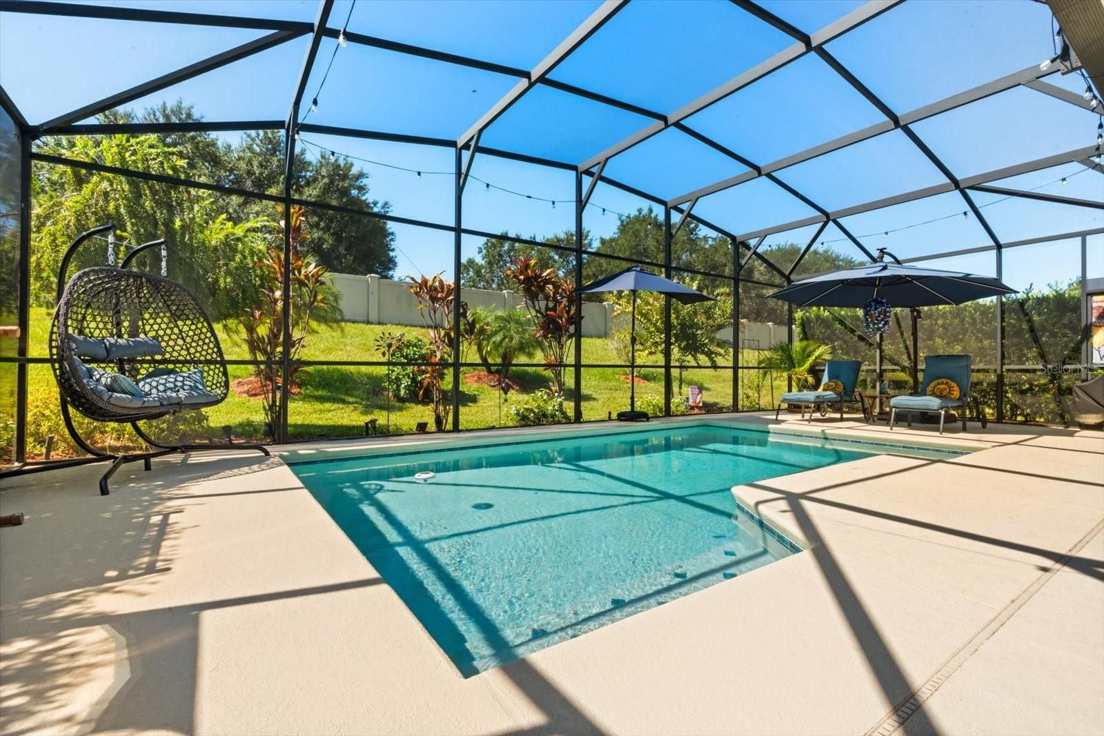 Stunning 3-Bedroom Home in Trilogy 55+ Resort Community - Your Ideal Vacation Lifestyle Awaits! Nestled in the picturesque hills and serene lakes of Groveland, Florida, this beautifully upgraded home offers a perfect blend of comfort, luxury, and convenience in the coveted Trilogy community. The spacious, open floor plan is designed for effortless entertaining and easy everyday living. Thoughtfully upgraded by the original owners, the home features decorative enhancements, energy-efficient improvements, and accessibility-friendly features that ensure both comfort and safety. Most rooms are adorned with stylish and easy-to-maintain wood-look tile flooring, and crown molding enhances the home’s elegant design. All windows come with full-panel plantation shutters, for added elegance, privacy, and low-maintenance living. The flexible third bedroom can be used as a home office or easily transformed into a home office, adapting to your unique needs. The recently renovated secondary bath offers both style and accessibility, featuring marble tile and a premium vanity. For energy-conscious buyers, the whole-home solar panels—which are fully paid off—mean immediate savings on electricity, making this home as efficient as it is beautiful. The true gem of this home is the screen-enclosed outdoor space, where you can unwind or entertain in privacy. Enjoy a refreshing dip in the saltwater pool surrounded by lush landscaping and no visible rear neighbors, providing a tranquil retreat. For seamless indoor-outdoor living, a triple-panel sliding door opens up the living area to the patio, blending both spaces effortlessly. Home is being offered with a home warranty for 1 year. Conveniently located just 30 miles from metro Orlando and only 14 miles from the scenic Lake Louisa State Park, this home offers the perfect balance of peaceful living with easy access to all the attractions and amenities of the city. As a Trilogy resident, you’ll have access to an incredible list of premium resort-style amenities, including a full-service restaurant and lounge, social events and community activities, tennis and pickleball courts, a state-of-the-art gym, and sparkling pools and relaxing cabanas. Whether you're relaxing at home, mingling with neighbors, or exploring Orlando’s attractions, Trilogy offers a lifestyle that feels like a permanent vacation. Experience it for yourself—schedule a tour today and make this dream home yours!