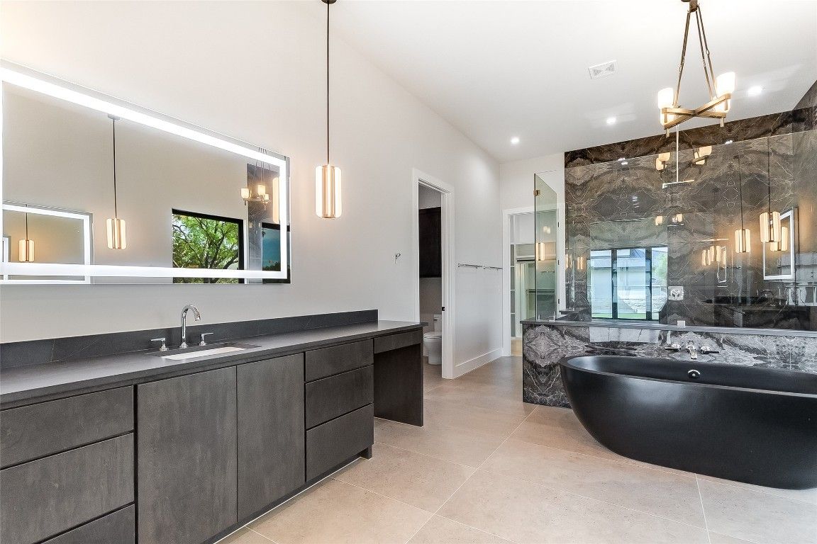 - Wet Bar, Ceiling Fan(s), Chandelier, Double Vanity, Eat-in Kitchen, Kitchen Island, Main Level Primary, Multiple Primary Suites, NoInteriorSteps, Open Floorplan, Pantry, Quartz Countertops, Recessed Lighting, Bar, Walk-In Closet(s)