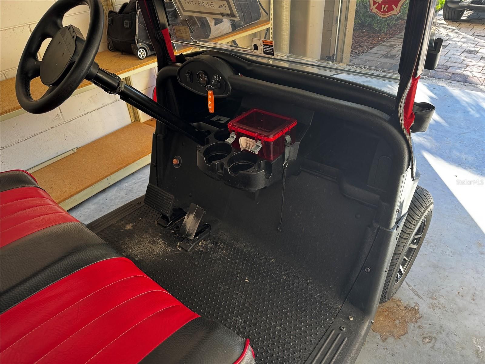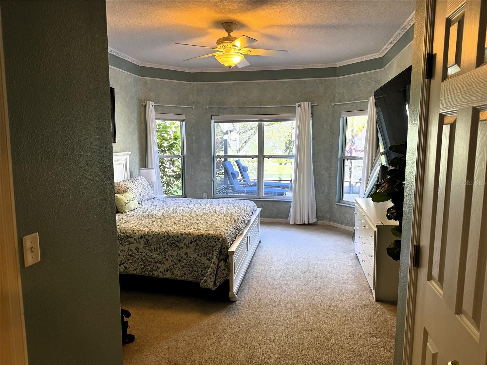 - Ceiling Fan(s), High Ceilings, Open Floorplan, Main Level Primary, Solid-Wood Cabinets, Split Bedrooms, Thermostat, Walk-In Closet(s), Window Treatments