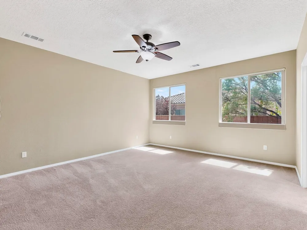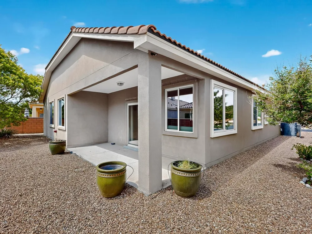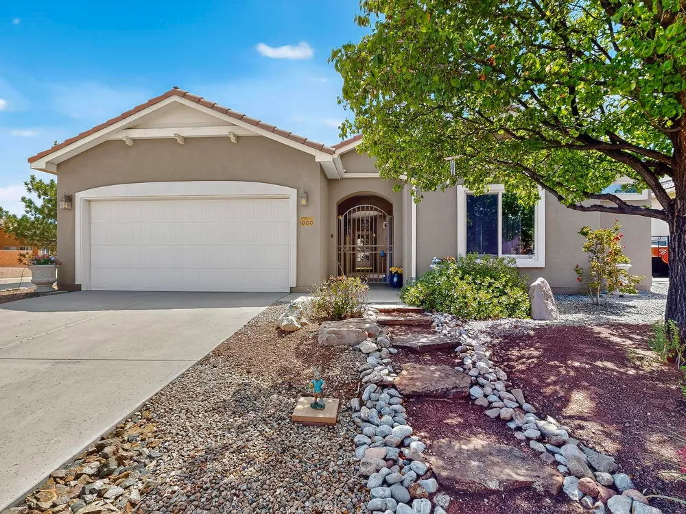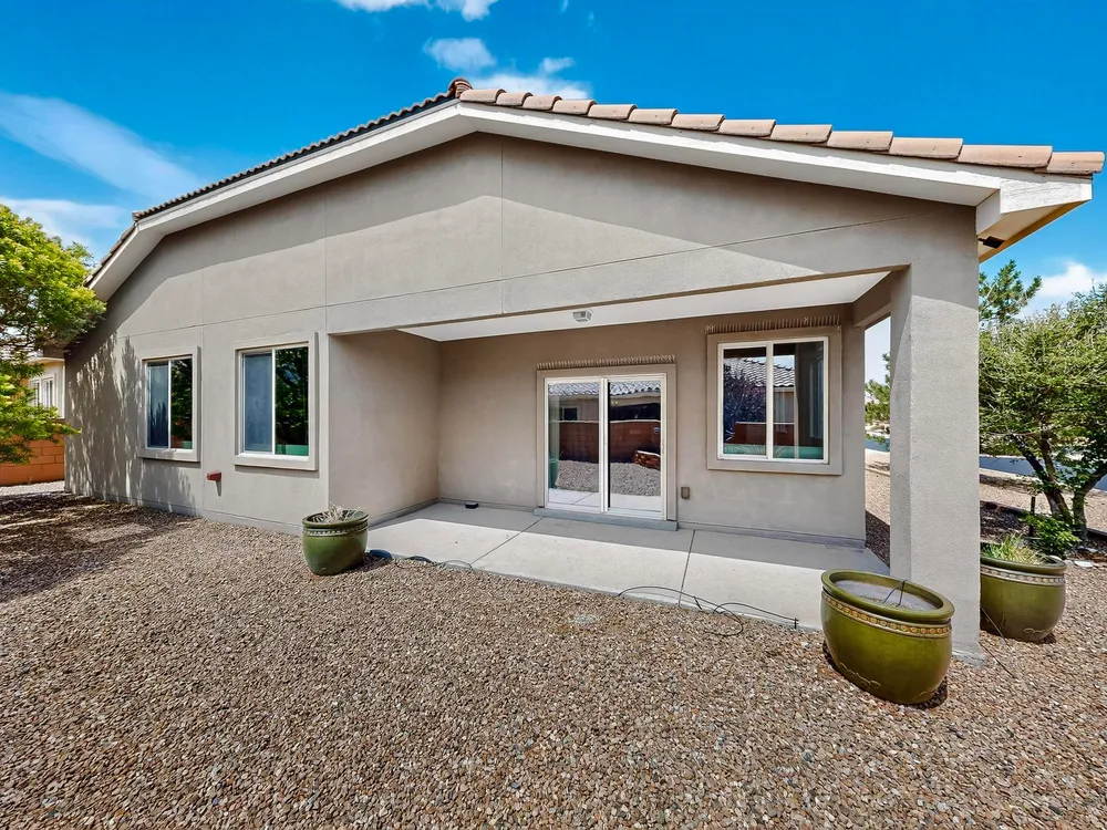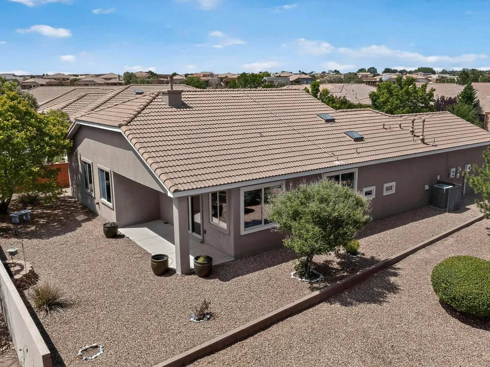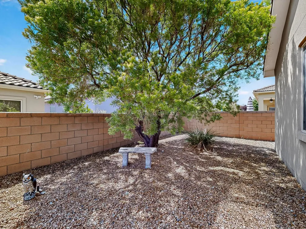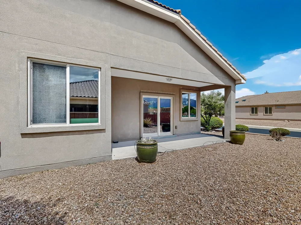 Discover this corner-lot beauty in Alegria, Del Webb's premier 55+ community in NM. Enjoy Sandia Mountain views from the living room and patio, plus a courtyard with custom gate, pergola, and hot tub. The main home offers 2 bedrooms, 2 baths, and upgrades like owned solar, 42'' upper kitchen cabinets, fireplace, and water softener. The highlight is the private casita with full bath--perfect for guests, family, or a hobby retreat. Alegria residents enjoy gated entry, clubhouse, fitness center, pools, walking paths, and an active social calendar. Style, efficiency, and flexibility come together in this exceptional home.