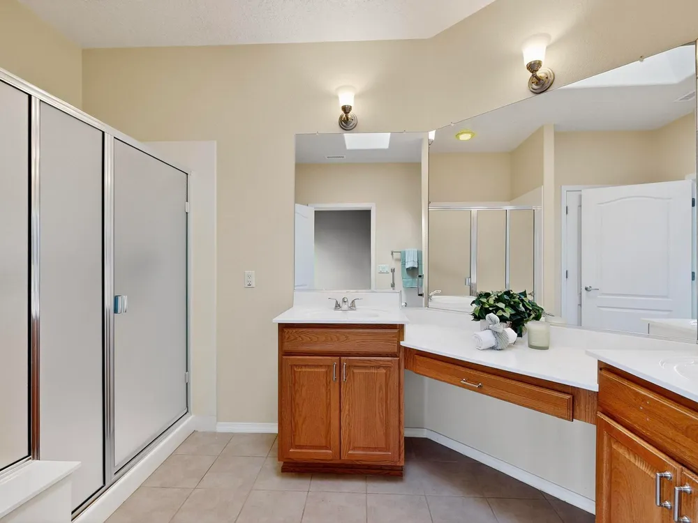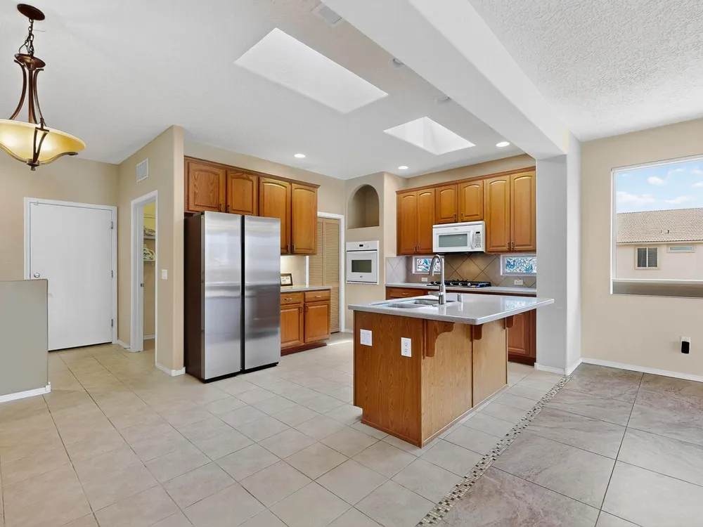 - Breakfast Area, Ceiling Fan(s), Dual Sinks, Great Room, Kitchen Island, Main Level Primary, Pantry, Separate Shower, Skylights, Walk-In Closet(s)