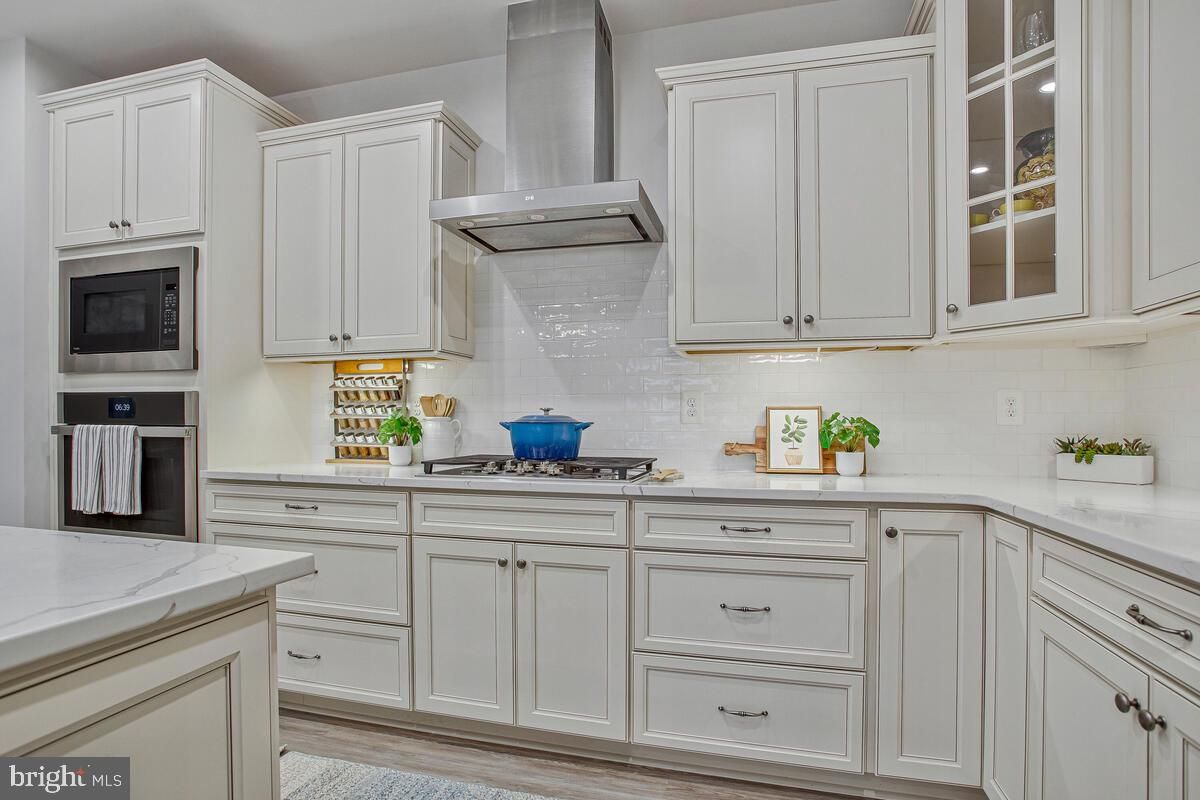 - Built-In Microwave, Cooktop, Dishwasher, Disposal, Dryer - Electric, Exhaust Fan, Oven - Wall, Range Hood, Refrigerator, Stainless Steel Appliances, Washer