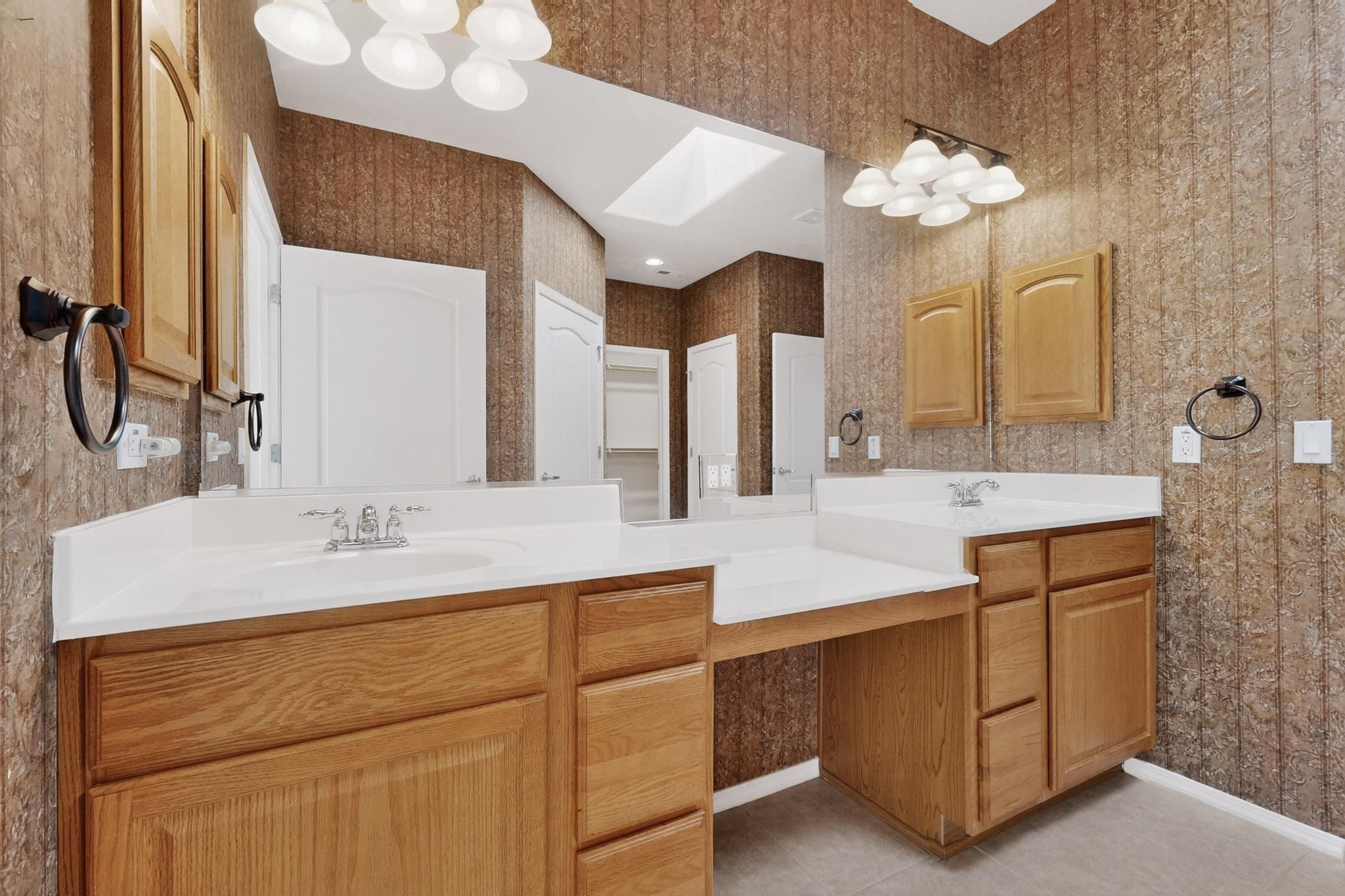 - Breakfast Area, Dual Sinks, Great Room, Kitchen Island, Multiple Living Areas, Main Level Primary, Pantry, Separate Shower, Skylights, Walk-In Closet(s)