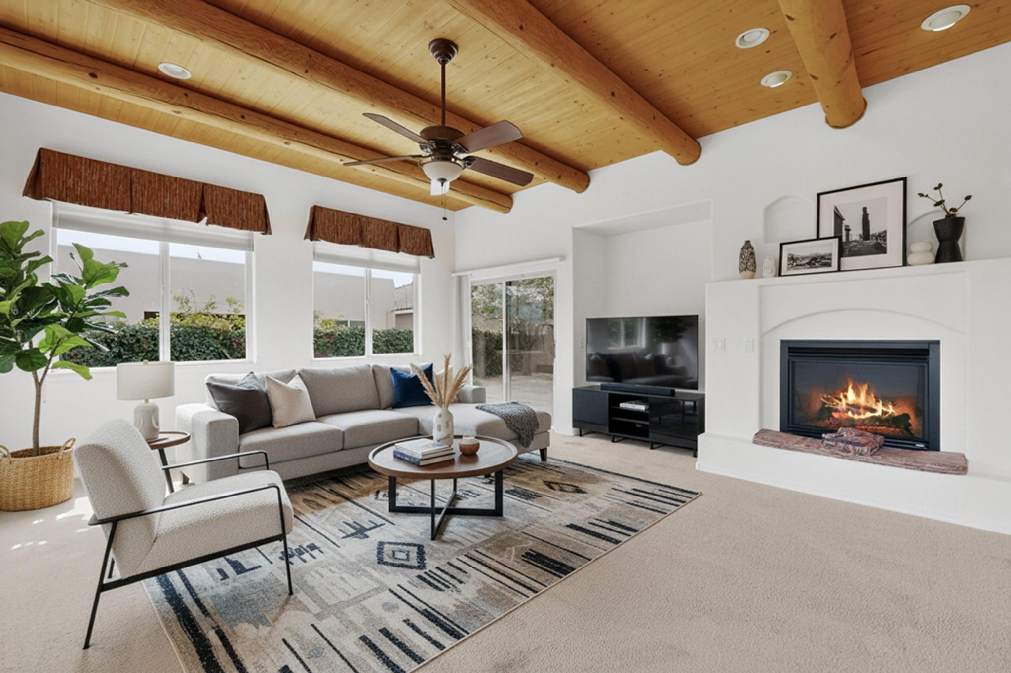 Beautiful home on a corner lot with 3 covered patios, including a side patio with beautiful mountain views--perfect for enjoying peaceful mornings & shaded afternoons. Designed with comfort & flexibility in mind, this spacious home offers room to live well, entertain & accommodate life's next chapter. The great room features a cozy fireplace and stunning tongue-and-groove ceiling. Thoughtfully maintained with recent professional inspection, completed repairs & fresh interior paint. The kitchen includes all appliances, water softener, filtration system, reverse osmosis & instant hot water for everyday convenience. A versatile flex space adjacent to the primary suite offers options for a home office, fitness area, hobby room, or additional living space. Welcome home!