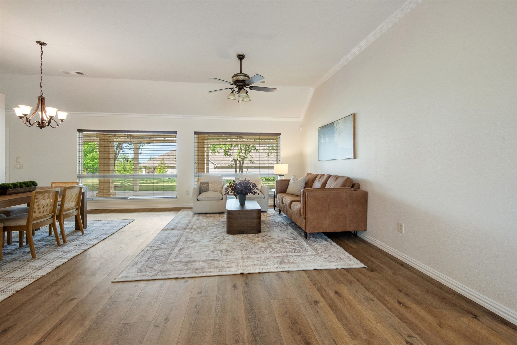 Welcome to easy, resort-style living in the highly sought-after 55+ community of Robson Ranch. This beautifully refreshed home sits on a desirable corner lot and offers the perfect blend of comfort, style, and low-maintenance living—ideal for those ready to enjoy the next chapter. Step inside to find a bright, inviting interior featuring brand-new flooring, fresh interior paint throughout, and updated kitchen countertops that give the home a clean, modern feel. The layout is both functional and welcoming, with open living spaces perfect for relaxing or entertaining family and friends. This home is truly move-in ready, allowing you to settle in and start enjoying the lifestyle right away. The kitchen offers ample storage and workspace, while the living and dining areas flow seamlessly together. The primary suite provides a comfortable retreat, and the overall layout is designed for ease of living and everyday enjoyment. Beyond the home, Robson Ranch offers an unmatched lifestyle with resort-style amenities just minutes away. Residents enjoy access to multiple fitness centers, pickleball and tennis courts, an active clubhouse filled with social events, creative arts studios, walking trails, and the award-winning Wildhorse Golf Course & Grill. Whether you’re looking to stay active, meet new friends, or simply relax, there is something for everyone. For those relocating from out of state, this home offers not only a beautiful place to live but also a welcoming, vibrant community that makes it easy to feel at home from day one. Come experience the lifestyle that makes Robson Ranch one of the most desirable active adult communities in North Texas.