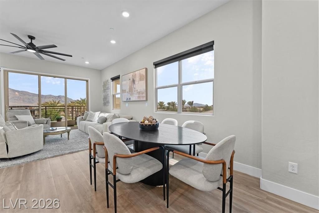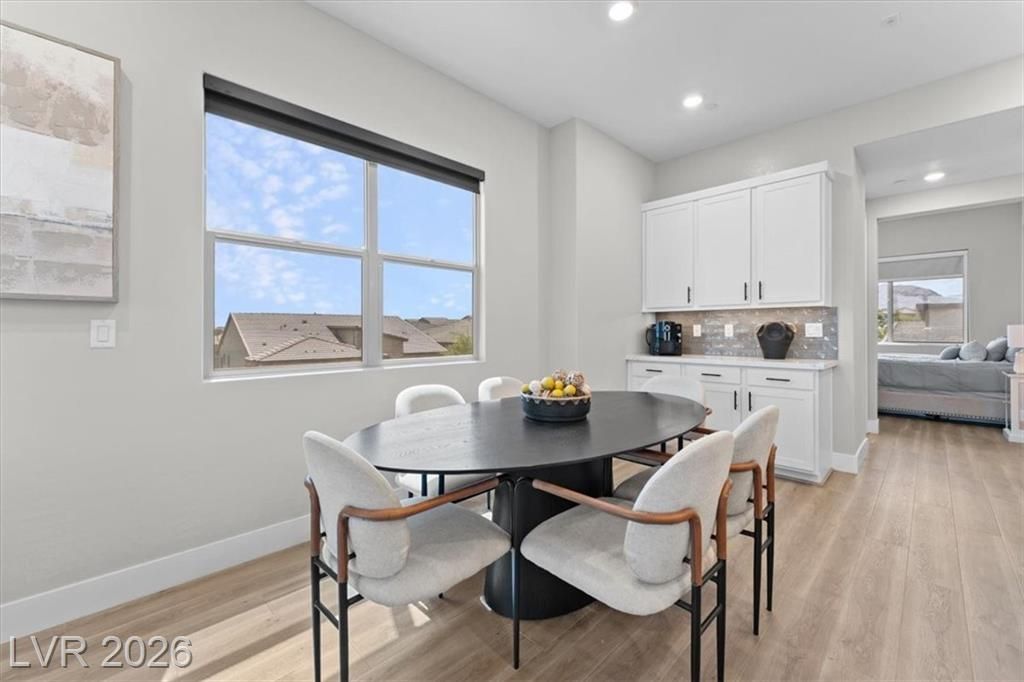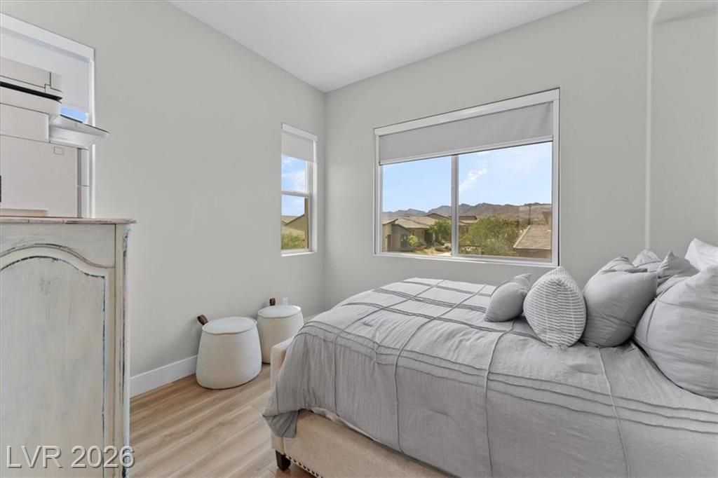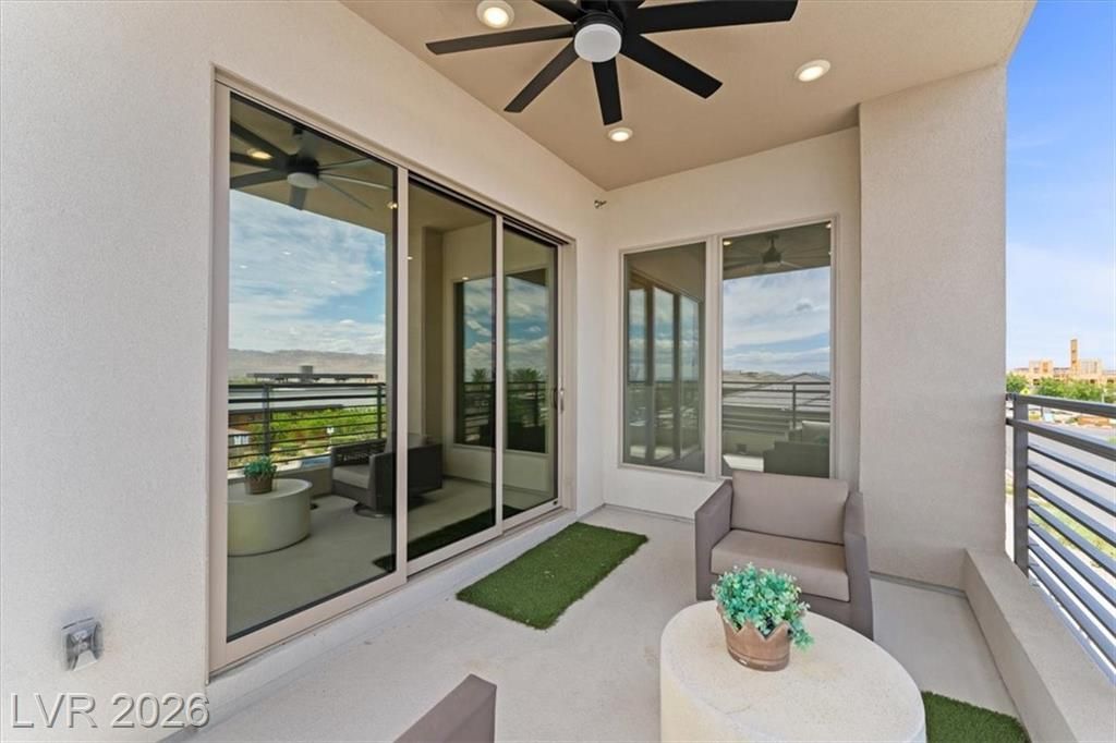 Step into effortless condo living where luxury meets simplicity, no maintenance, no fuss. This upgraded residence features approximately $150,000 in builder upgrades, offering elevated finishes throughout. Located just a one minute walk from the community center, pool, and on site bar and restaurant, resort style amenities are right at your doorstep. Enjoy views of the Las Vegas Strip, or escape the heat with a quick 30 minute drive to Mount Charleston.Situated in the highly sought after Sunstone Master Plan, this home is part of Trilogy Sunstone, a premier 55+ community known for its resort style living and vibrant atmosphere. Demand is high, with buyers currently on a waitlist lottery for condos not completing until 2027, making this a rare, move in ready opportunity. Residents enjoy access to the Cabochon Club, a 15,000 sqft resort-style clubhouse with social spaces, events, and amenities designed for an active lifestyle.