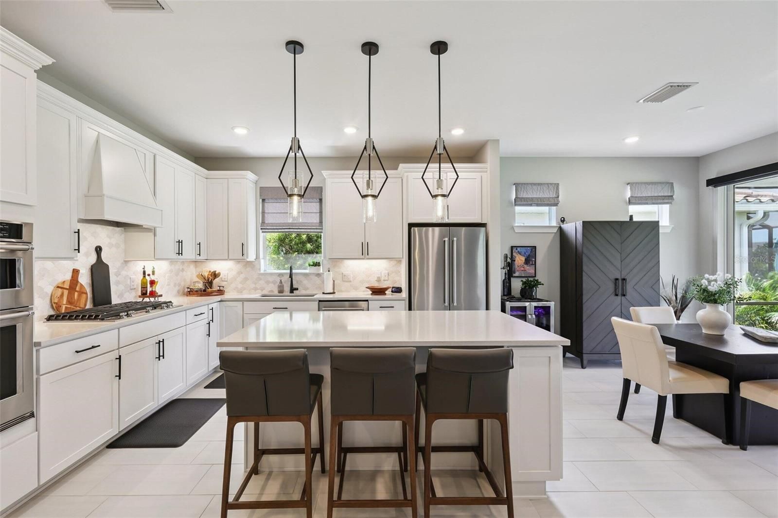 Enjoy a like-new home without waiting for new construction on a new home build. Welcome to this beautifully maintained PROSPERITY model in the highly desirable gated community of BEACHWALK by Manasota Key, located just 2.5 miles from the pristine Gulf beaches of MANASOTA KEY BEACH. This thoughtfully designed home has 2 BEDROOMS, 2 BATHS, plus a versatile enclosed FLEX ROOM that can easily be used as a 3rd bedroom or office, with 1,704 square feet of open comfortable living space. Ideally situated adjacent to a tranquil pond, the home features beautiful west-facing WATER VIEWS and an extended 26’ COVERED LANAI for enjoying Florida’s spectacular sunsets. The exterior has a modern coastal curb appeal, highlighted by upgraded landscaping and a decorative glass front door. Inside, the open-concept floor plan is enhanced by tile flooring throughout and an elegant tray ceiling, creating a bright and welcoming atmosphere. The GOURMET KITCHEN is a centerpiece of the home, featuring soft close cabinetry, QUARTZ countertops, and premium KitchenAid stainless steel appliances, including a natural gas cooktop, making it suitable for both everyday living and entertaining. This home includes numerous upgrades and practical features, such as: Custom window coverings, 8’ doors, lighting and ceiling fans (5), UPGRADED PANTRY, expanded driveway, 4’ GARAGE EXTENSION, Epoxy-coated garage floor, and hidden hurricane roller shutter for the front door. The property shows LIKE NEW, as it has been owner-occupied only during winter and spring months. Residents of Beachwalk by Manasota Key enjoy true resort-style living with outstanding amenities, including a beautiful clubhouse, state-of-the-art fitness center, resort-style heated pool with lap lanes, tennis courts, pickleball courts, bocce ball, and miles of scenic walking and biking trails. The community also has NO CDD FEES and features the High Tide Tiki Bar overlooking the lake, with the upscale Waterline Restaurant scheduled to open in 2026. Conveniently located near the charming shops, dining, and entertainment of VENICE, as well as local farm markets and coastal attractions, this home provides the perfect blend of luxury, convenience, and an active coastal lifestyle. Move-in ready and a must-see for anyone seeking Florida resort-style living near the beach.
