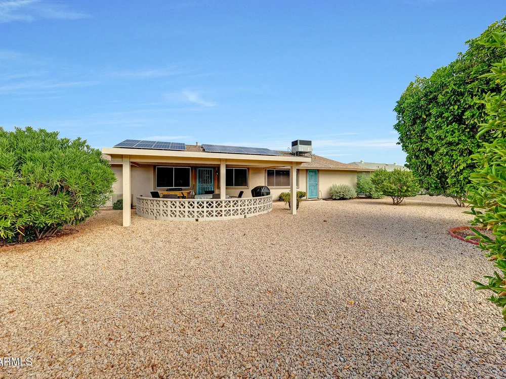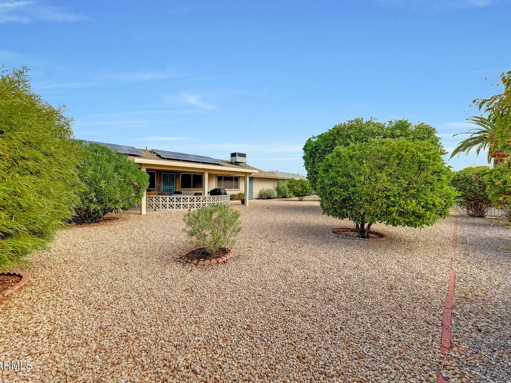 GREAT CURB APPEAL HERE!*STUCCOED*POPCORN CEILINGS REMOVED*CARPET IN BEDROOMS ONLY*POPULAR RANIER MODEL THAT HAS BEEN GENTLY LIVED IN*3 BEDROOMS AND 2 BATHROOMS*ROOF AND UNDERLAYMENT REPLACED 2019*SEWER RELINED 2023(ENTIRE HOUSE)*PLANTATION SHUTTERS*DUAL PANED WINDOWS WITH ADDED 90% SCREENS 2024*ENCLOSED LANAI OVERLOOKS BACK YARD, FINISHED UTILITY ROOM IS 151 SQUARE FEET AND HAS A LOT OF CABINETS*NEUTRAL PAINT THROUGHOUT*EXIT FROM ENCLOSED LANAI TO A COVERED BACK PATIO*NICELY LANDSCAPED BACK YARD WITH A PRIVATE FEEL*THIS HOME IS LOCATED IN A HIGHLY DESIRED AREA AND GREAT NEWS! LOW SOLAR LEASE AND GRANDFATHERED APS SOLAR RATE PLAN*EXCEPTIONALLY LOW APS BILLS!*WATER SOFTENER AND REVERSE OSMOSIS DRINKING WATER SYSTEM (2024)* 2-CAR GARAGE WITH PLENTY OF STORAGE*NEW GARAGE DOOR OPENER '25*