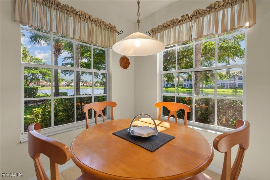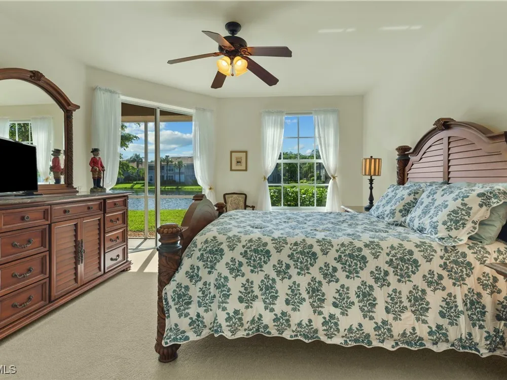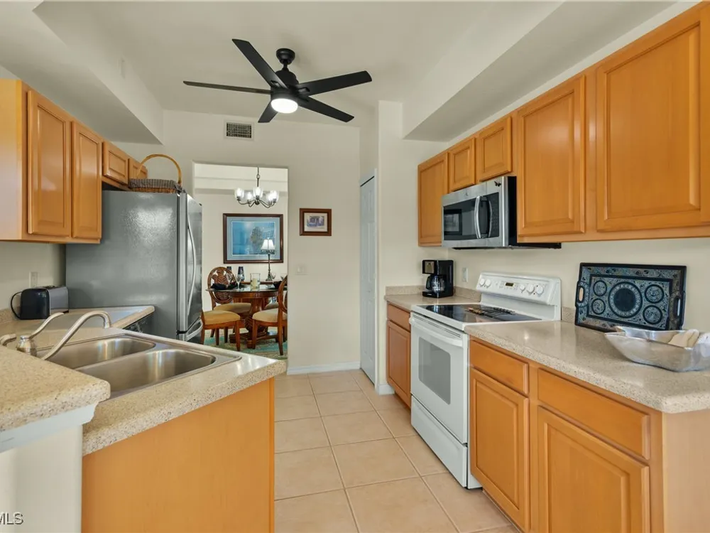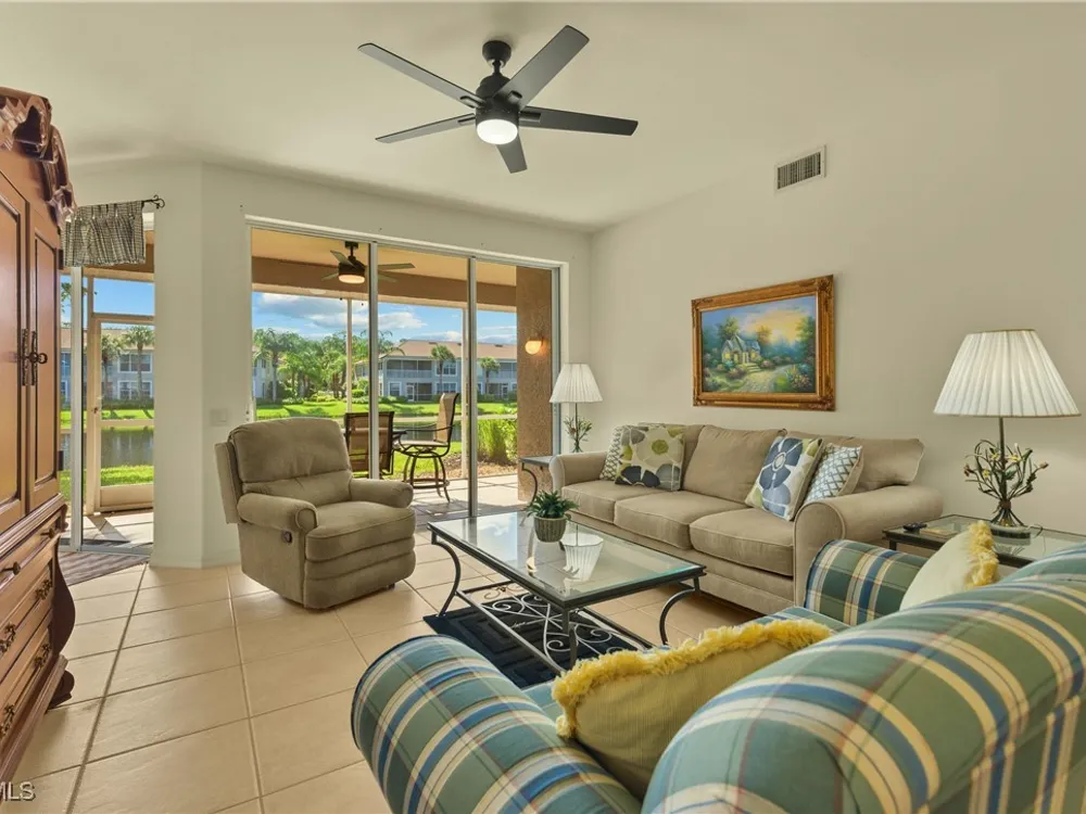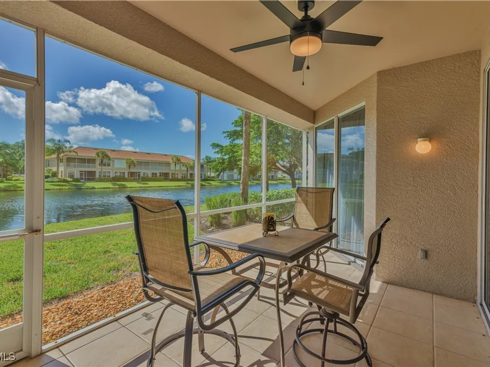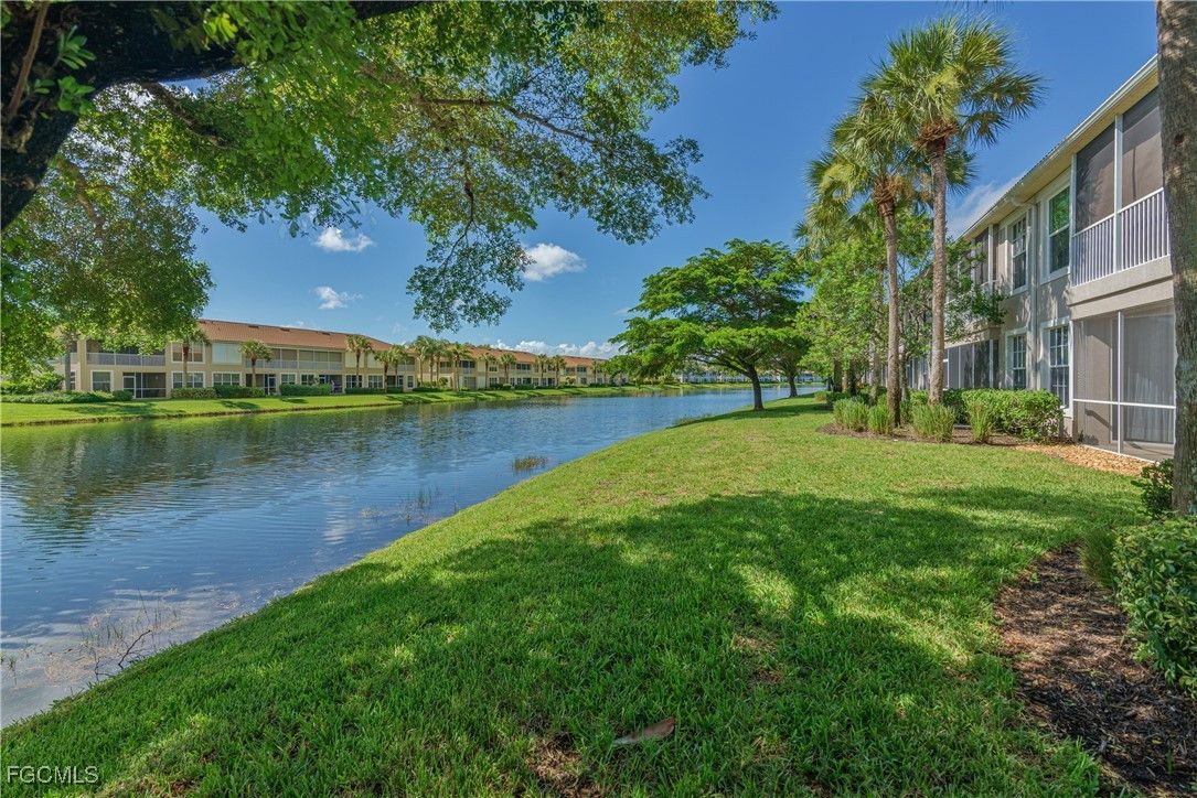 HIGHLY DESIRABLE FIRST FLOOR END UNIT WITH 2BRs+DEN/2BAs OFFERED TURN-KEY FURNISHED! ENJOY SUNNY SE REAL EXPOSURE OVERLOOKING LAKE. New Roof on this building in 2020. A/C, Water Heater and most appliances have all been replaced. Multiple new fans & light fixtures. Excellent floor plan with tile floors in main living areas and carpet in bedrooms. Comes with an attached 1 Car Garage and private driveway. INCLUDES FULL BUNDLED GOLF MEMBERSHIP! Located in in the resort community of Colonial CC which is undergoing a complete upgrade of amenities. Complete Golf Course Renovation started April 1st with re-opening target for December 2025. Renovation of Pro Shop, Cart Barn & Community Center also underway. The Main Clubhouse was fully updated in 2020. These First Class Amenities include 18 holes of Championship Golf, Clubhouse with Dining, Fitness Center, Multiple Pools, Tennis, Pickleball, Bocce, Miles of Walking trails and MORE! MOVE-IN READY FOR YOUR ENJOYMENT!