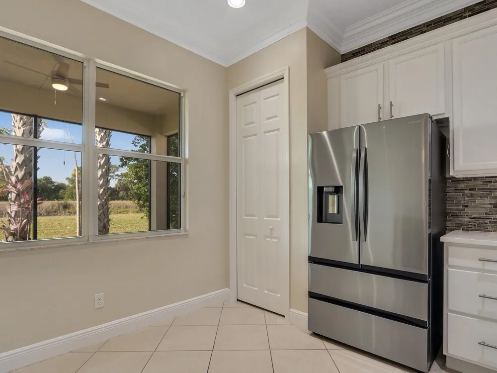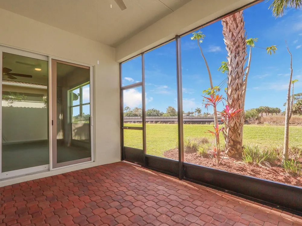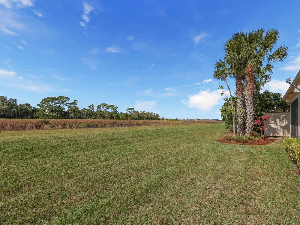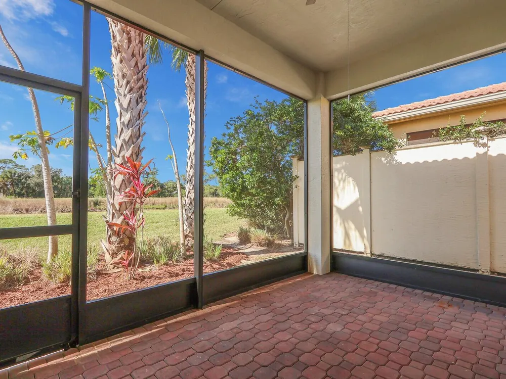 Located in the sought-after PGA Verano community, this move-in ready 2BR/2BA +Den/Office home feels like new and showcases many tasteful and thoughtfully selected upgrades throughout. Enjoy crown molding, recessed high-hat lighting, and a stunning designer kitchen with new Samsung stainless appliances, waterfall quartz countertops, pendant lighting, and full-height glass backsplash. Custom California Closets in all closets and pantry. Freshly painted interior, upgraded garage with epoxy flooring and space for your golf cart. Primary suite offers dual sinks, walk-in shower & Roman soaking tub.. Enjoy sunsets from the screened patio with C-24 Canal views. Lake view in front, near dog park, and easy access to entry gate. Double insulation in attic/garage adds energy efficiency. A must-see!
