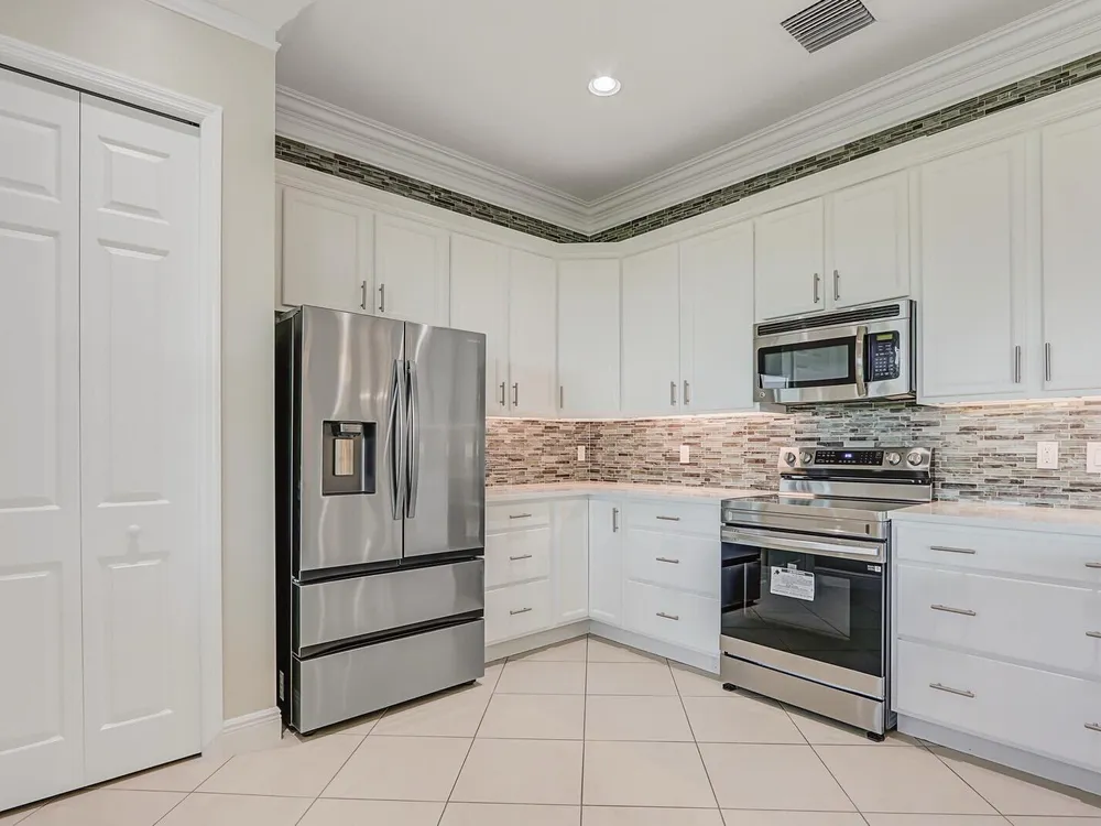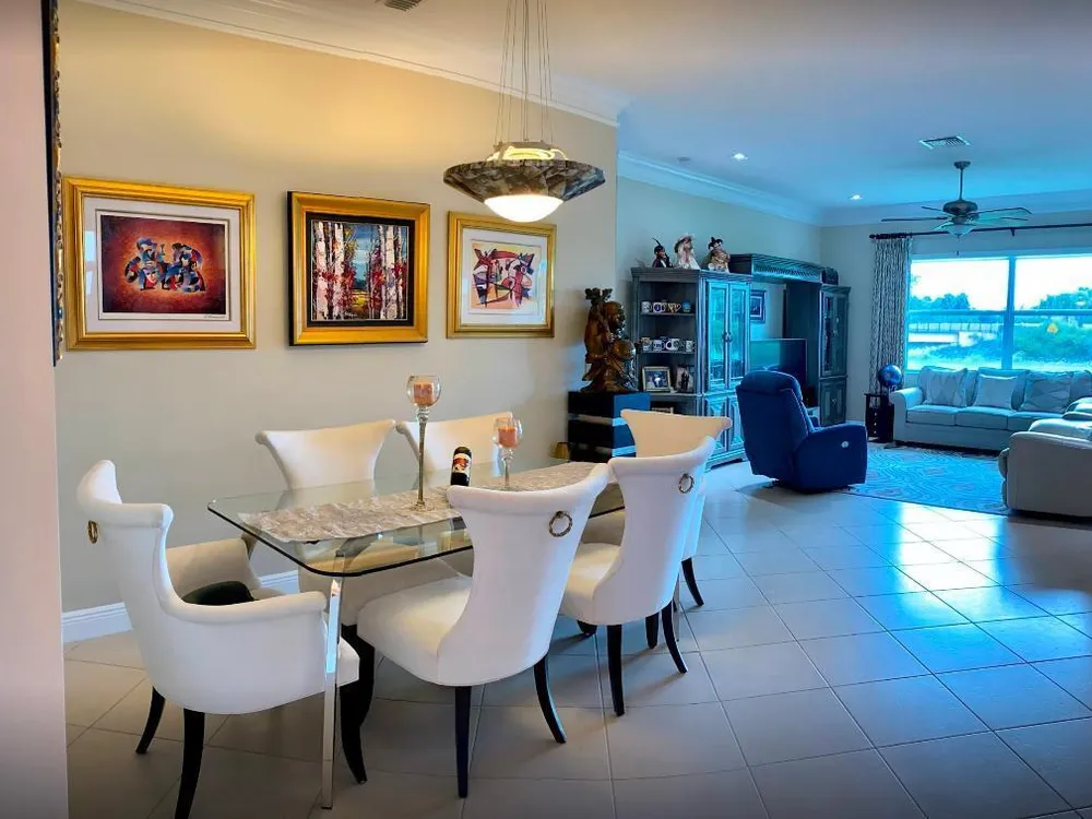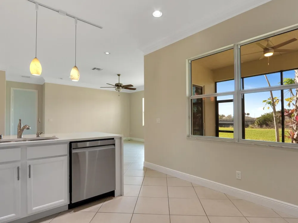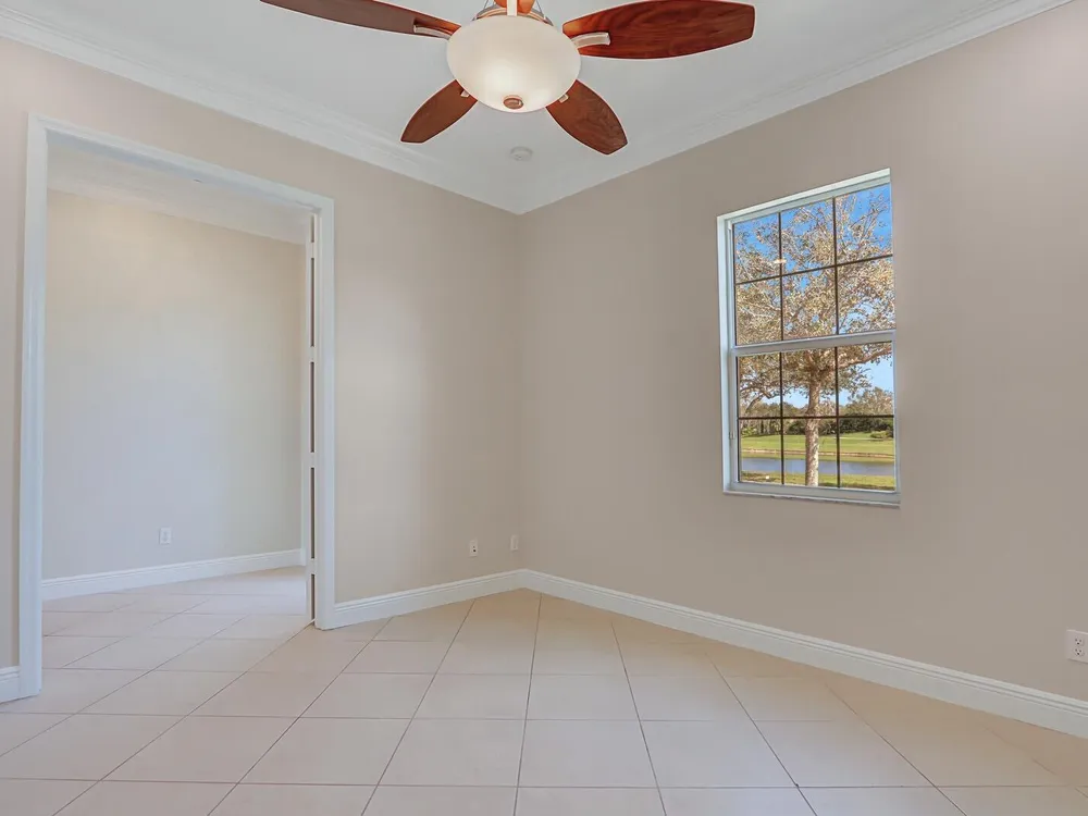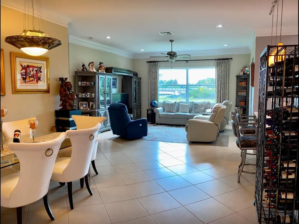 Located in the sought-after PGA Verano community, this move-in ready 2BR/2BA +Den/Office home feels like new and showcases many tasteful and thoughtfully selected upgrades throughout. Enjoy crown molding, recessed high-hat lighting, and a stunning designer kitchen with new Samsung stainless appliances, waterfall quartz countertops, pendant lighting, and full-height glass backsplash. Custom California Closets in all closets and pantry. Freshly painted interior, upgraded garage with epoxy flooring and space for your golf cart. Primary suite offers dual sinks, walk-in shower & Roman soaking tub.. Enjoy sunsets from the screened patio with C-24 Canal views. Lake view in front, near dog park, and easy access to entry gate. Double insulation in attic/garage adds energy efficiency. A must-see!