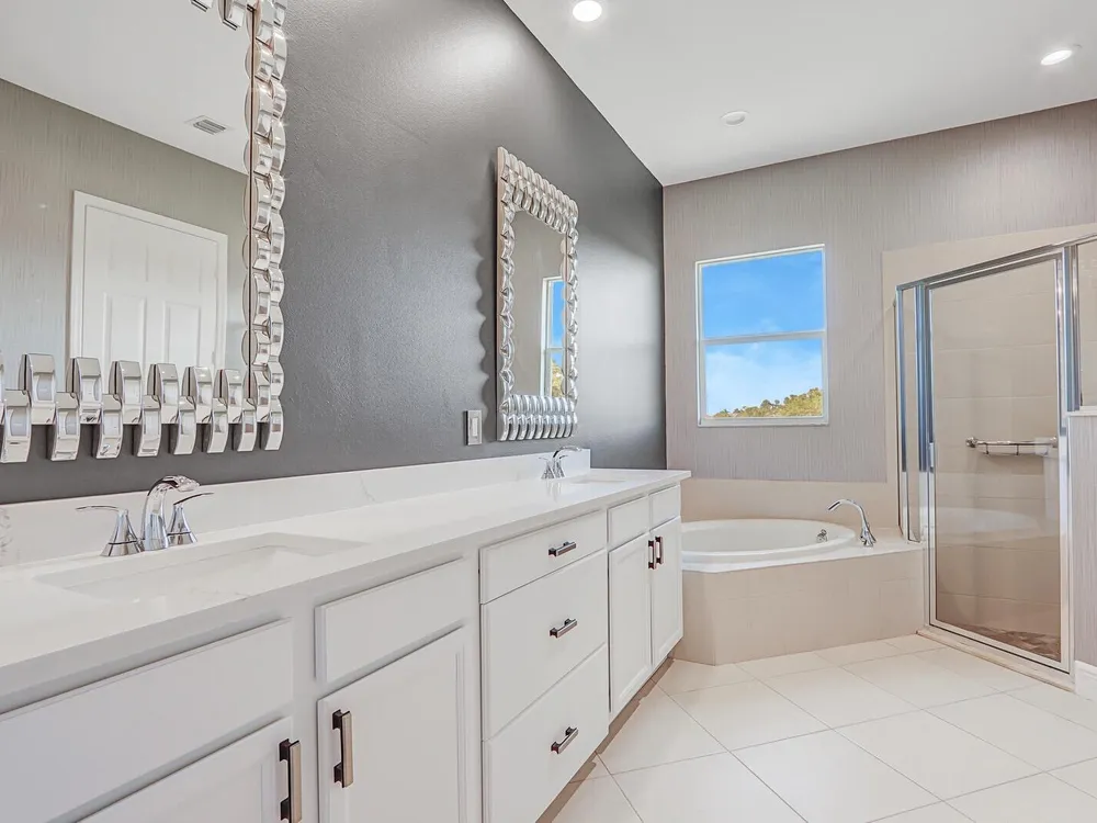 - Built-in Shelving, Closet Cabinetry, Garden Tub/Roman Tub, Split Bedrooms, Walk-In Closet(s), Home Office, Great Room, Living/Dining Room, Bidet, Dual Sinks, Separate Shower, Bathtub