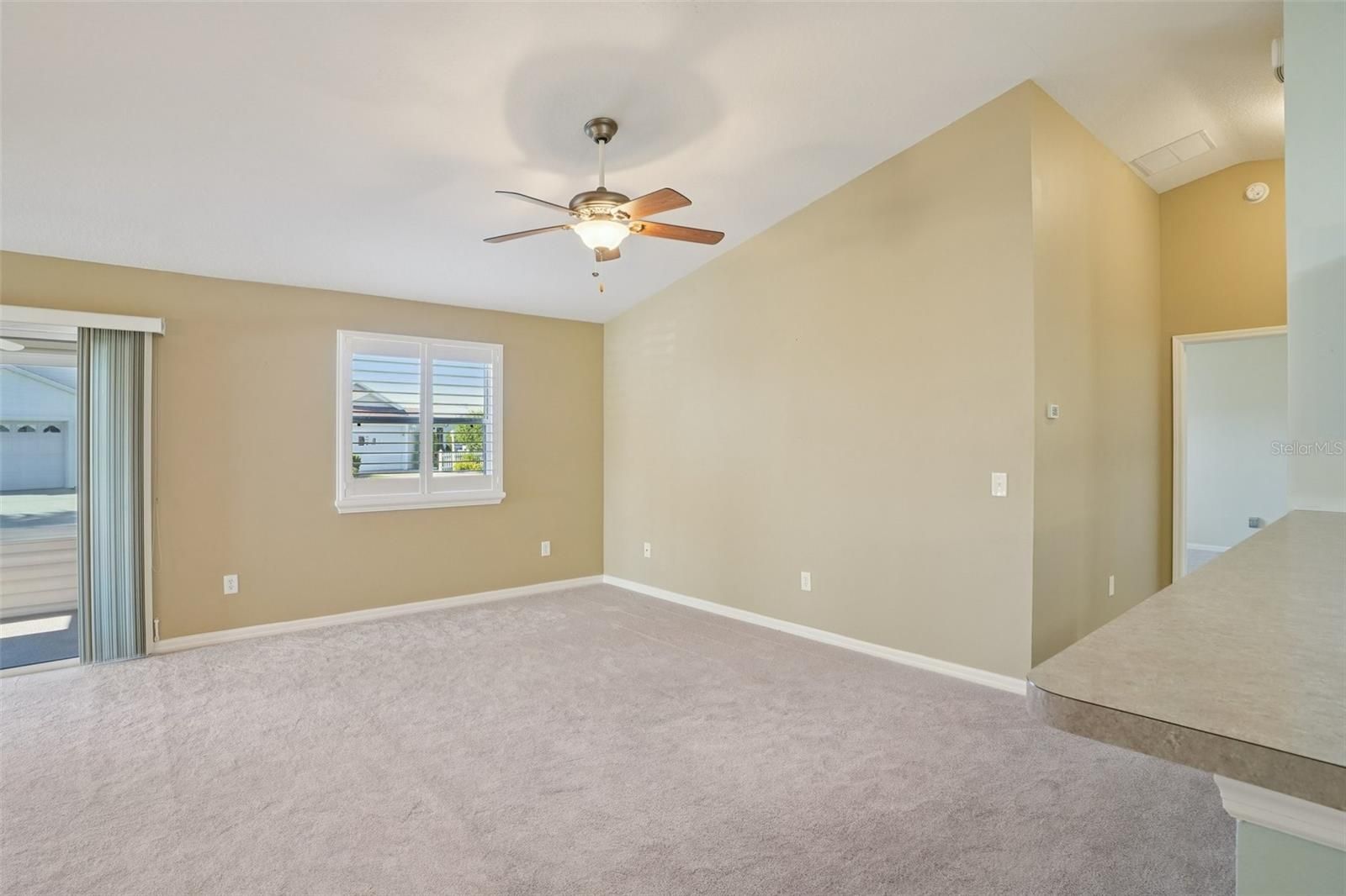 - Cathedral Ceiling(s), Ceiling Fan(s), Eat-in Kitchen, High Ceilings, L-Shaped Dining Room, Living/Dining Room, Open Floorplan, Main Level Primary, Vaulted Ceiling(s), Walk-In Closet(s), Window Treatments