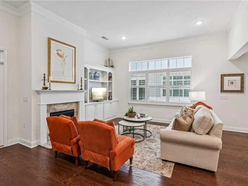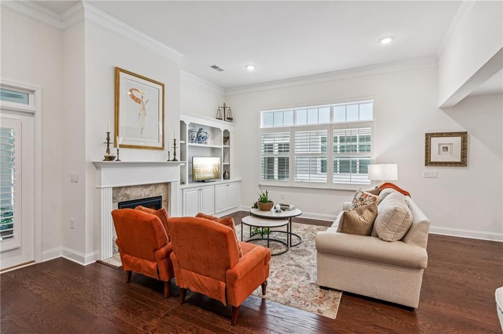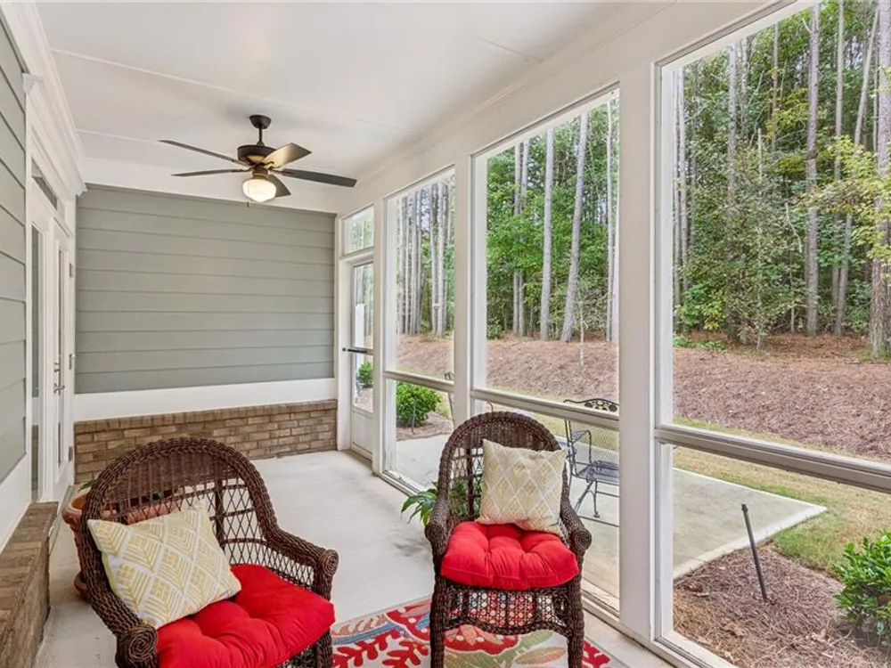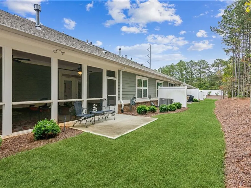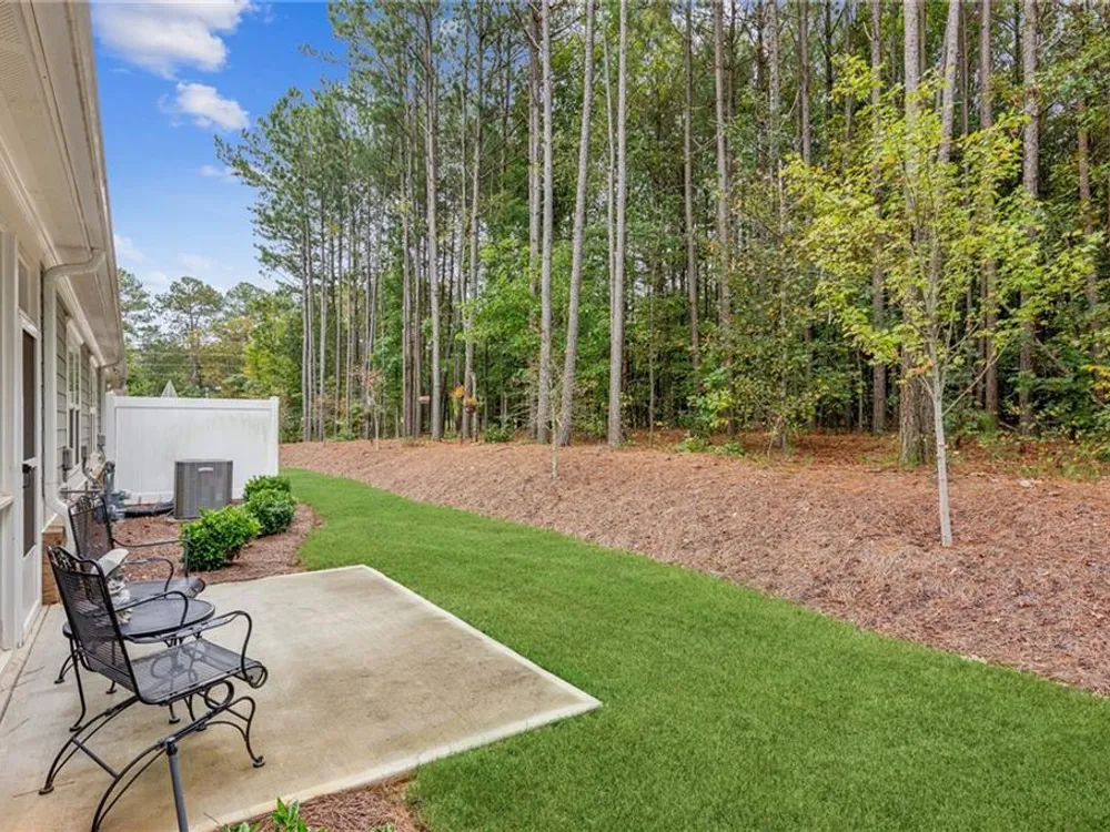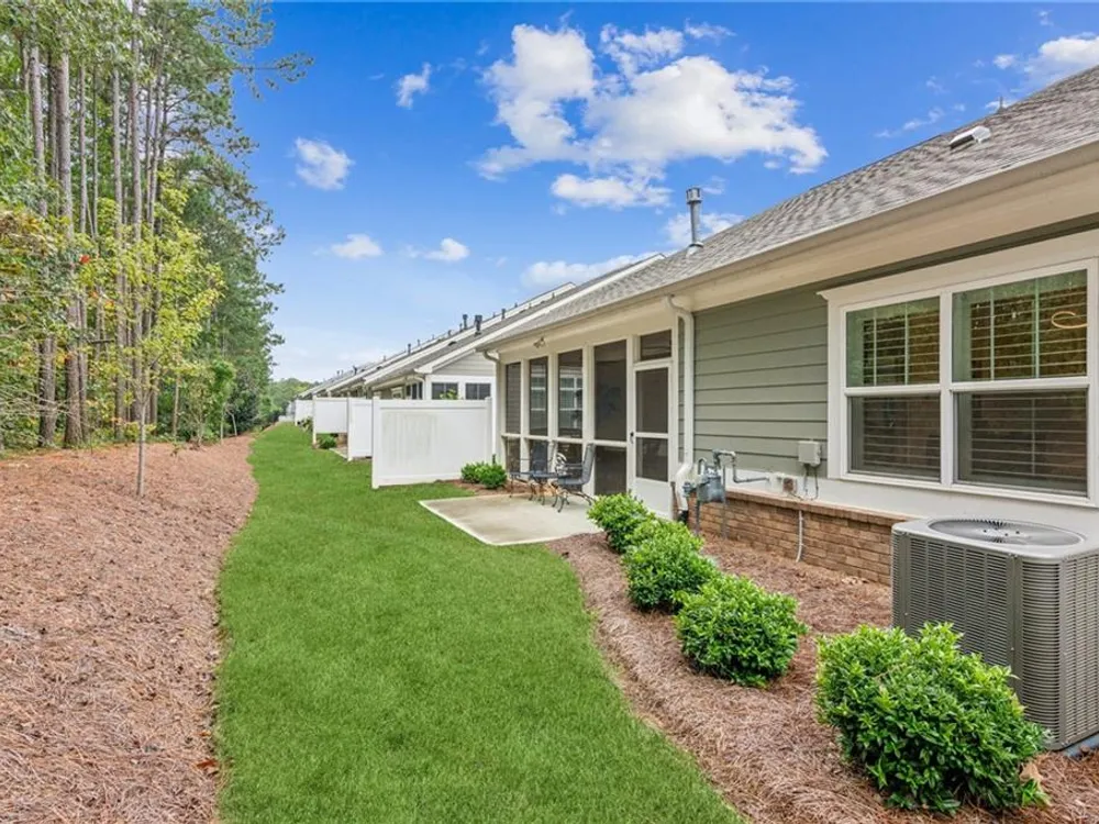 Discover this stunning home in the sought-after Orchards of Central Park, a vibrant 55+ community. Nestled on a premium lot with tranquil wooded views backing up to Central Park, this end-unit Cypress model is a favorite for its open-concept design, featuring a chef’s kitchen, spacious dining area, and inviting family room. Monthly dues cover exterior and yard maintenance for hassle-free living. This home boasts upgrades like an extended patio, screened porch, built-in bookshelves, rich hardwood floors, abundant natural light with plantation shutters, elegant crown molding, tray ceilings, iron spindles, and instant hot water circulation. The main-level primary suite includes a large bathroom and closet, cleverly connected to the laundry room for convenience. A second main-level bedroom doubles as an ideal office. Upstairs, find a generous third bedroom, bathroom, bonus/media room, and ample storage with walk-in attic space and a secure lockable closet.The community shines with a spacious clubhouse, fitness center, and a beautiful pool, fostering an active social scene. Enjoy nearby Central Park’s walking trails, tennis courts, and activities, plus easy access to Highway 400 for seamless travel. This home blends luxury, comfort, and convenience in a lively community setting.
