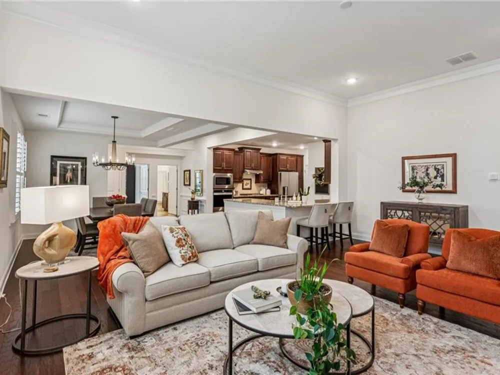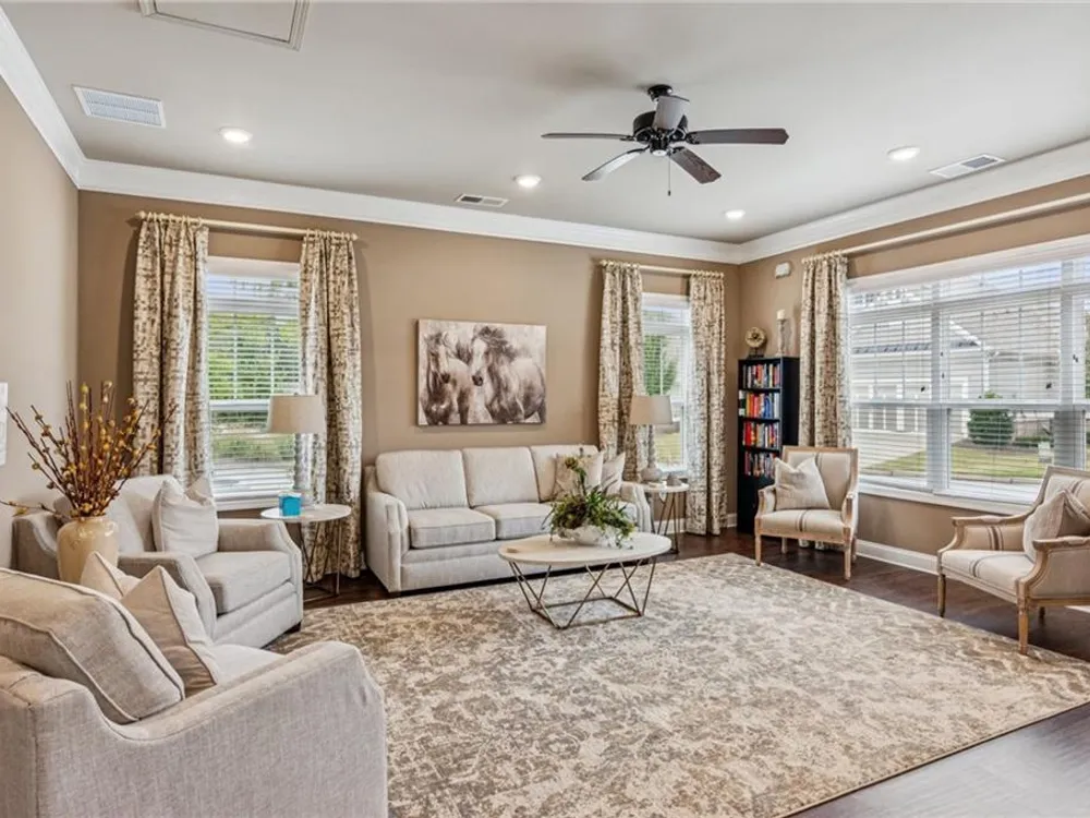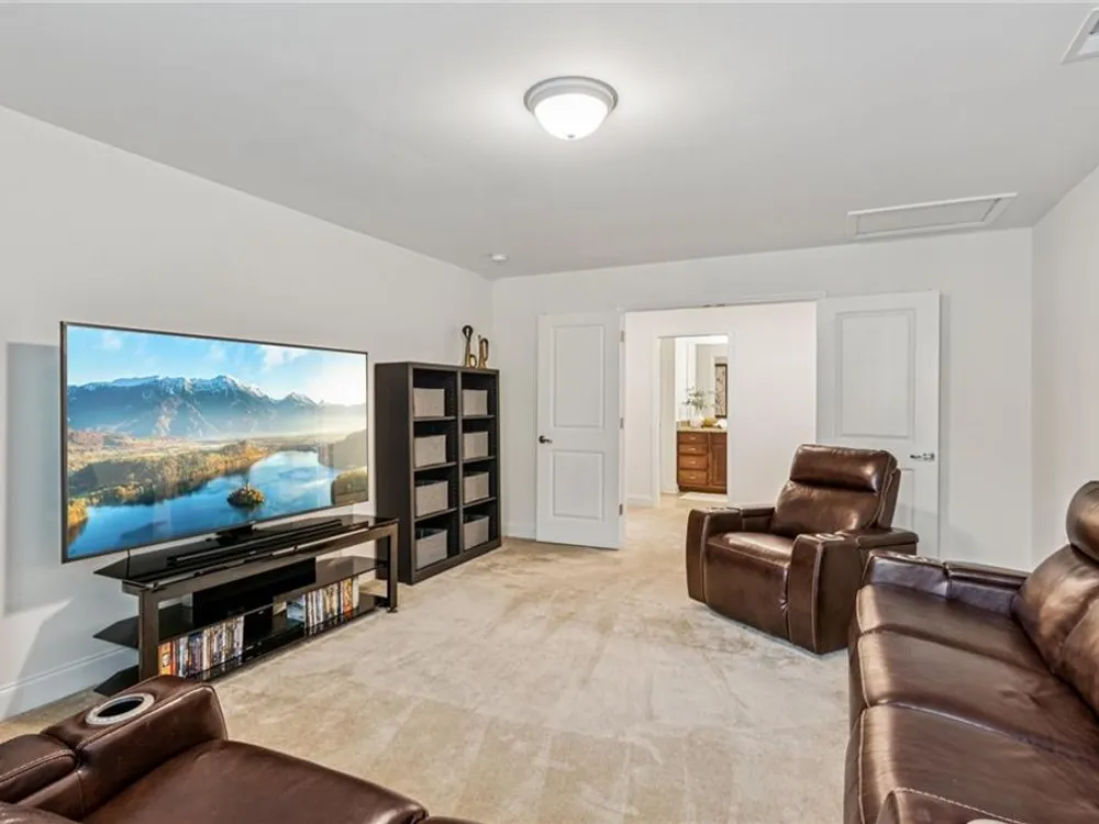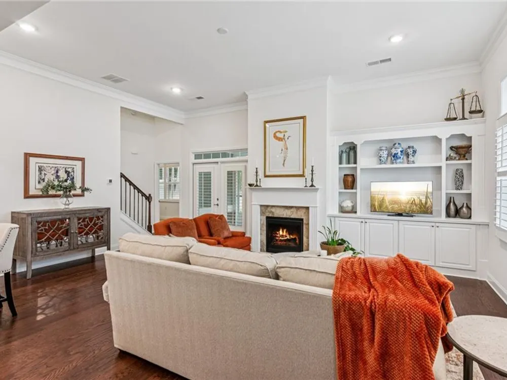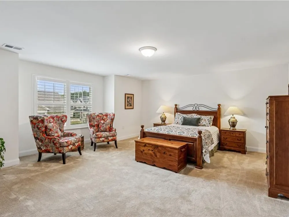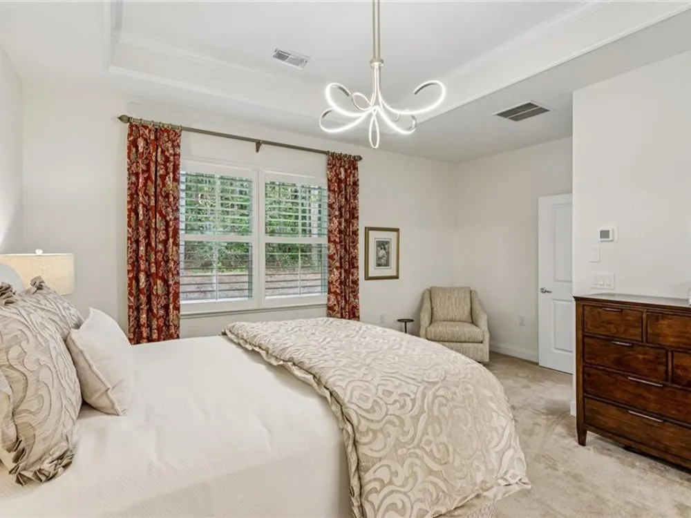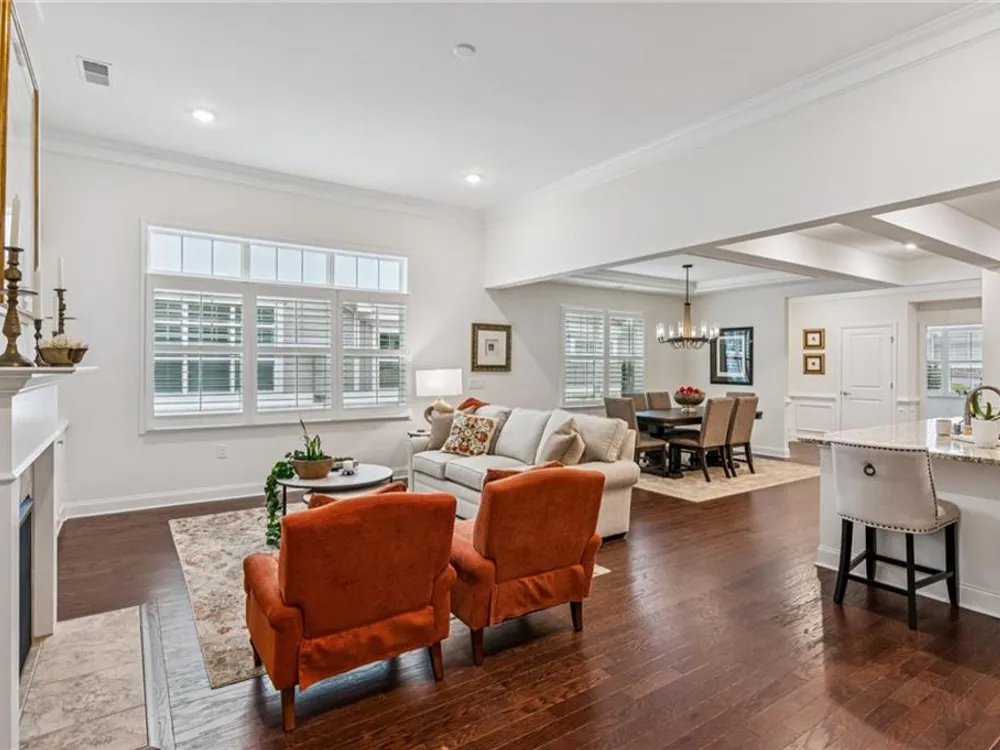 Discover this stunning home in the sought-after Orchards of Central Park, a vibrant 55+ community. Nestled on a premium lot with tranquil wooded views backing up to Central Park, this end-unit Cypress model is a favorite for its open-concept design, featuring a chef’s kitchen, spacious dining area, and inviting family room. Monthly dues cover exterior and yard maintenance for hassle-free living. This home boasts upgrades like an extended patio, screened porch, built-in bookshelves, rich hardwood floors, abundant natural light with plantation shutters, elegant crown molding, tray ceilings, iron spindles, and instant hot water circulation. The main-level primary suite includes a large bathroom and closet, cleverly connected to the laundry room for convenience. A second main-level bedroom doubles as an ideal office. Upstairs, find a generous third bedroom, bathroom, bonus/media room, and ample storage with walk-in attic space and a secure lockable closet.The community shines with a spacious clubhouse, fitness center, and a beautiful pool, fostering an active social scene. Enjoy nearby Central Park’s walking trails, tennis courts, and activities, plus easy access to Highway 400 for seamless travel. This home blends luxury, comfort, and convenience in a lively community setting.