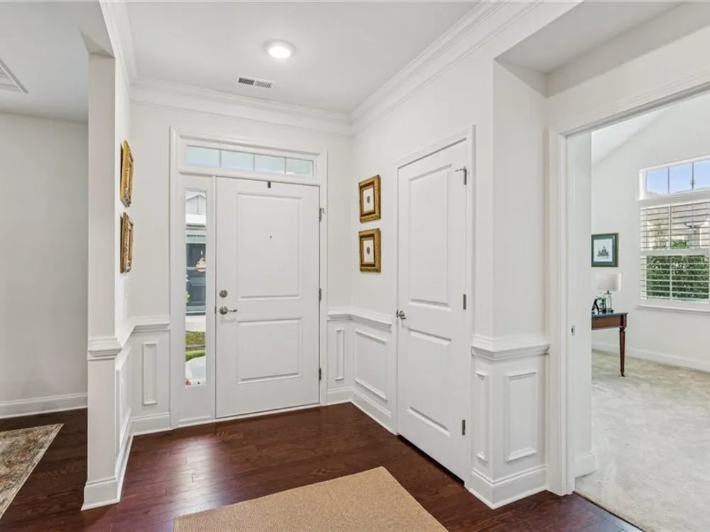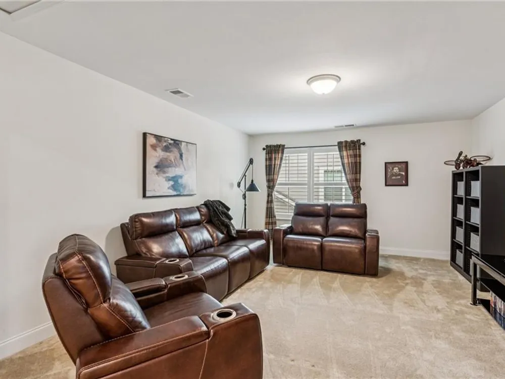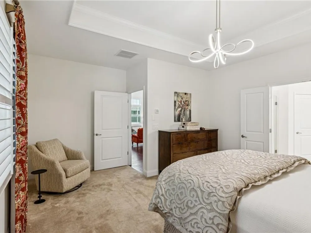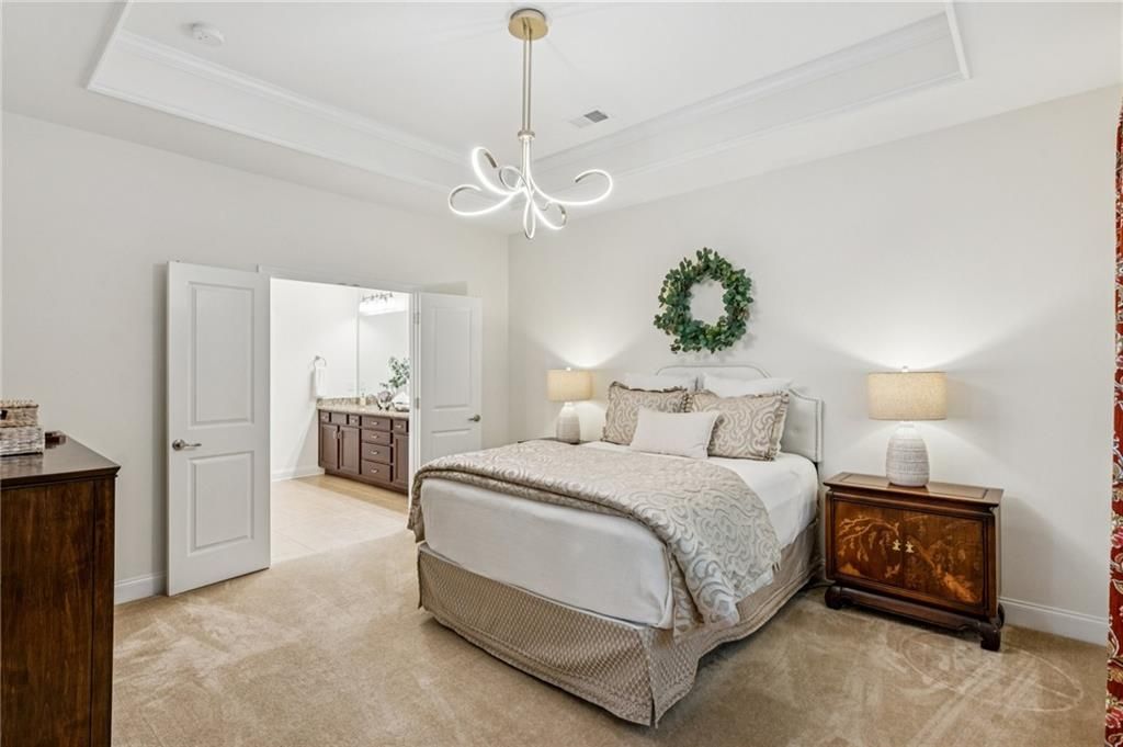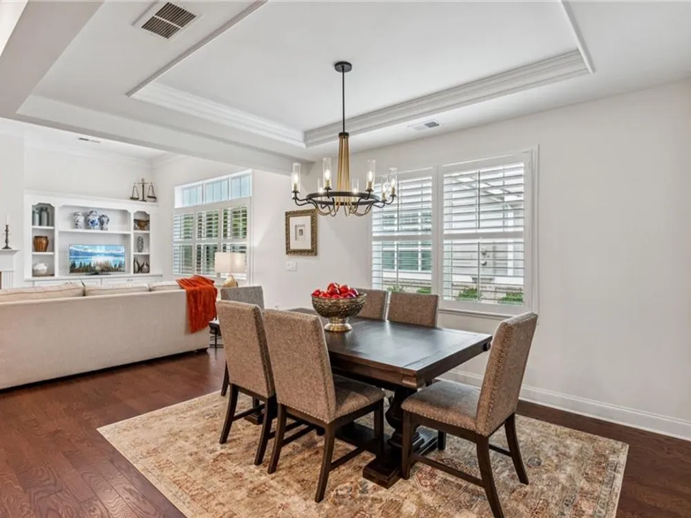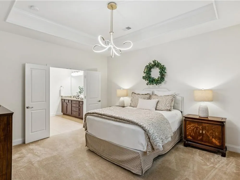 Discover this stunning home in the sought-after Orchards of Central Park, a vibrant 55+ community. Nestled on a premium lot with tranquil wooded views backing up to Central Park, this end-unit Cypress model is a favorite for its open-concept design, featuring a chef’s kitchen, spacious dining area, and inviting family room. Monthly dues cover exterior and yard maintenance for hassle-free living. This home boasts upgrades like an extended patio, screened porch, built-in bookshelves, rich hardwood floors, abundant natural light with plantation shutters, elegant crown molding, tray ceilings, iron spindles, and instant hot water circulation. The main-level primary suite includes a large bathroom and closet, cleverly connected to the laundry room for convenience. A second main-level bedroom doubles as an ideal office. Upstairs, find a generous third bedroom, bathroom, bonus/media room, and ample storage with walk-in attic space and a secure lockable closet.The community shines with a spacious clubhouse, fitness center, and a beautiful pool, fostering an active social scene. Enjoy nearby Central Park’s walking trails, tennis courts, and activities, plus easy access to Highway 400 for seamless travel. This home blends luxury, comfort, and convenience in a lively community setting.