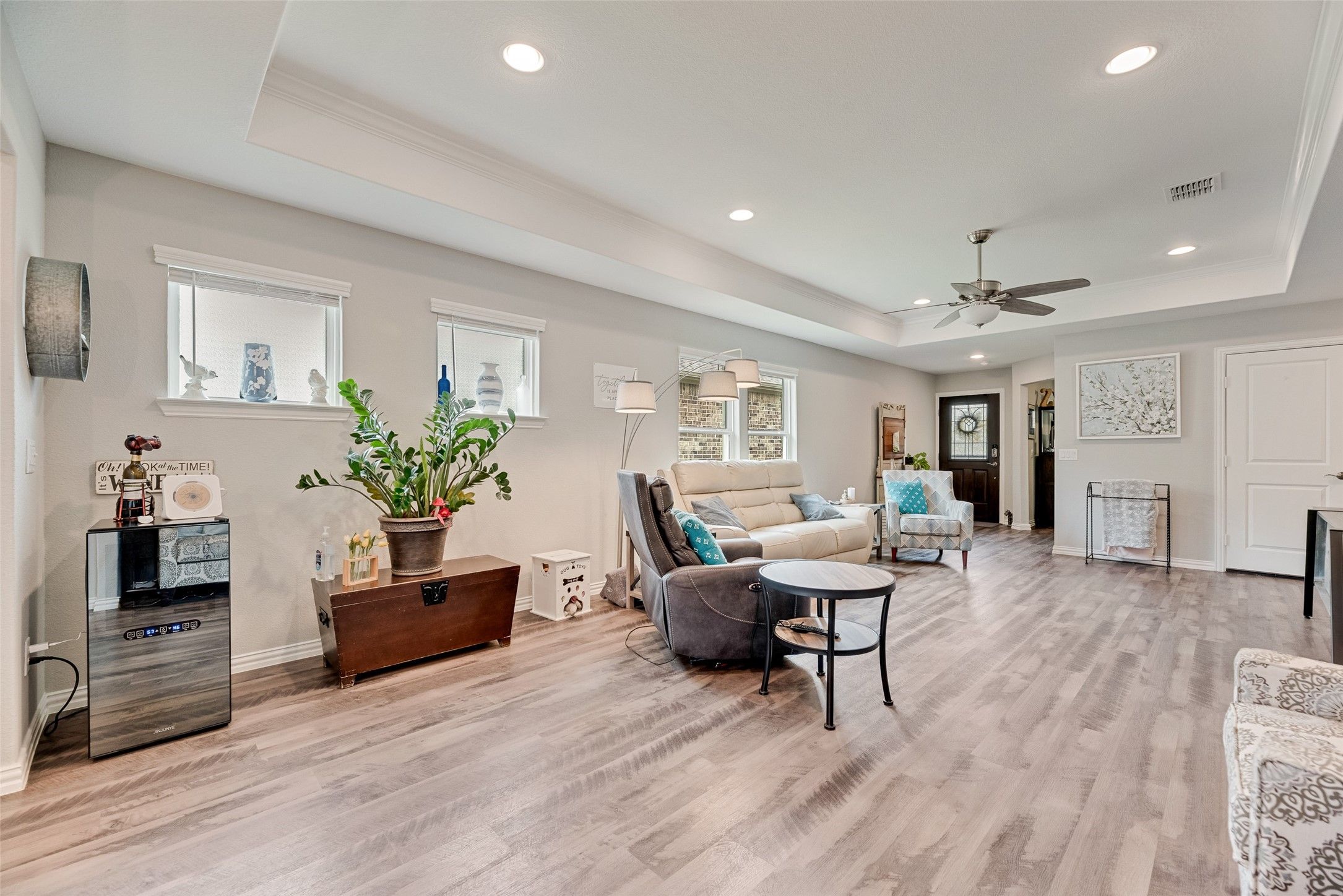 Welcome to 1001 Memorial Drive, located in the sought-after Del Webb at Union Park-an ACTIVE, vibrant 55+ community offering true resort-style living. This beautifully maintained Taft Street floor plan features 2 bedrooms, 2 bathrooms, and 1,613 sq. ft. of thoughtful single-story design. Inside, you’ll find an inviting open layout with hardwood like flooring, custom window treatments, and a stunning chef’s kitchen complete with a large island, soft-close cabinetry, pull-out shelves, and under-cabinet lighting. Enjoy additional versatility with a sunroom and dedicated office, along with custom closet systems throughout. Step outside to relax on the oversized front porch or the extended, fully ENCLOSED back patio with stamped concrete—perfect for year-round enjoyment.