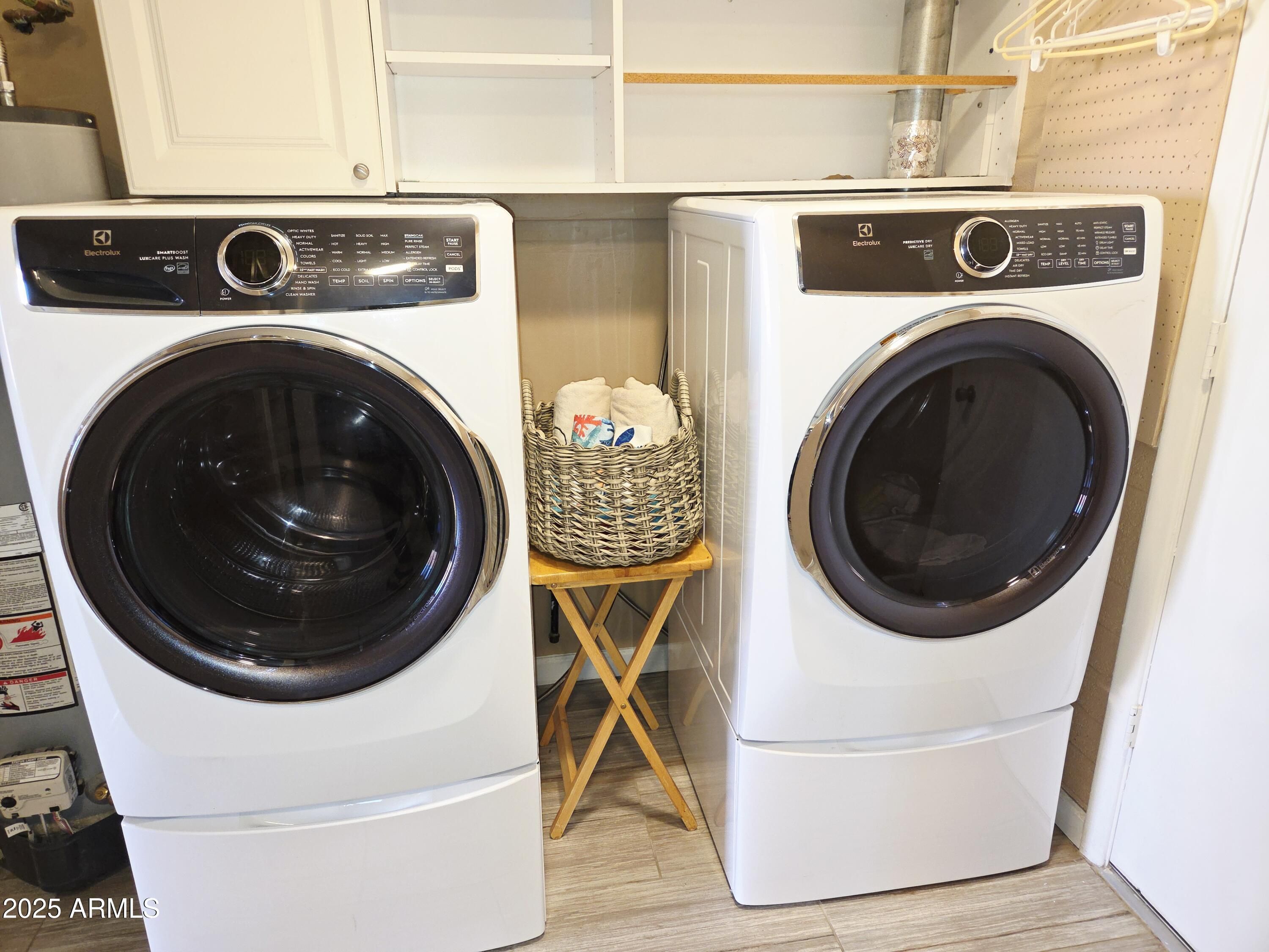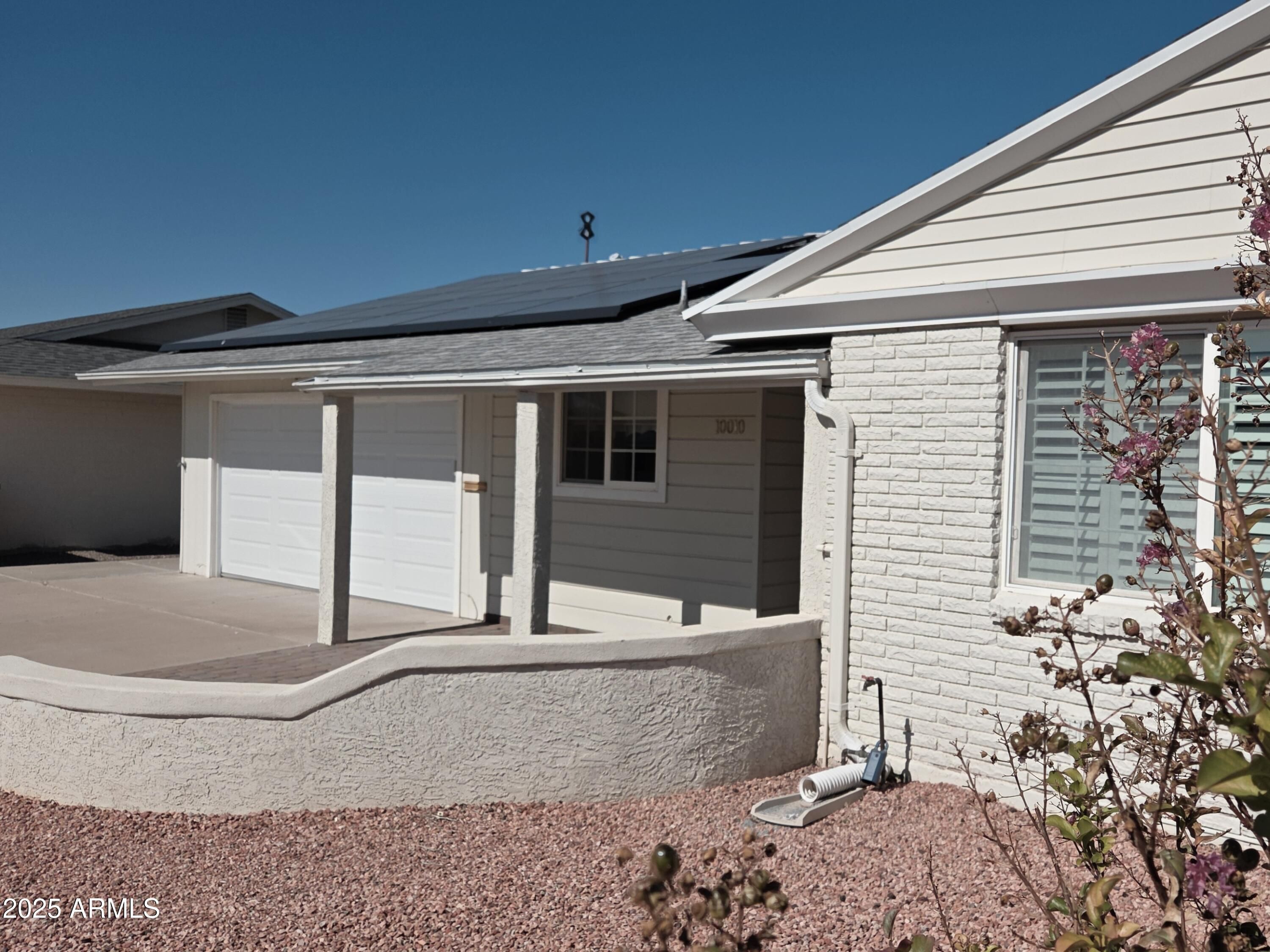 Need Room for a Golf Cart/ Motorcycle/ Bike or a Workshop? Drive Down the Side of the Home to a SEPARATE Garage w/Roll Up Door. Need a Craft Room? It has an Area Adjacent to the Laundry Room that Works. Want an Office Space/Family Room? It's There Too. The Updated Kitchen has Beautiful Granite & Lots of Storage. Windows Replaced & Covered by Plantation Shutters. Outside is a Huge Patio with Pavers & an Amazing Wood Ceiling. The Fenced Yard has Artificial Grass, a Pergola & a Fire Pit. Important Upgrades are: 5/25 Garage Door, 10/24 Washer&Dryer-12/22 15 SEER Gas Unit-11/22 Microwave-5/22 Sewer Line-1/22 Shower. Two Solar Systems. One is Fully Owned, the Second is Leased for Only $80.56 Per Mo/Fixed. AND CHECK THIS OUT---The TOTAL Annual APS Bill from 9/24/24 to 8/25/25 was Under $400.