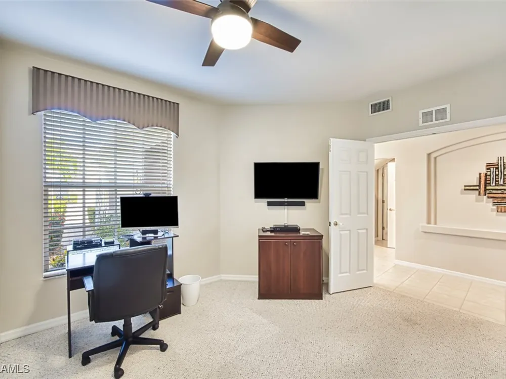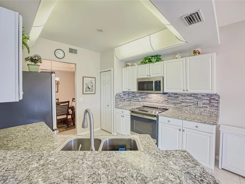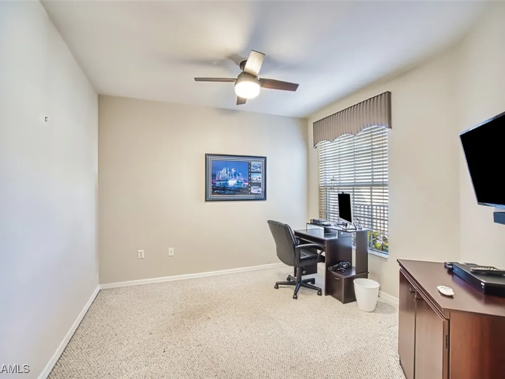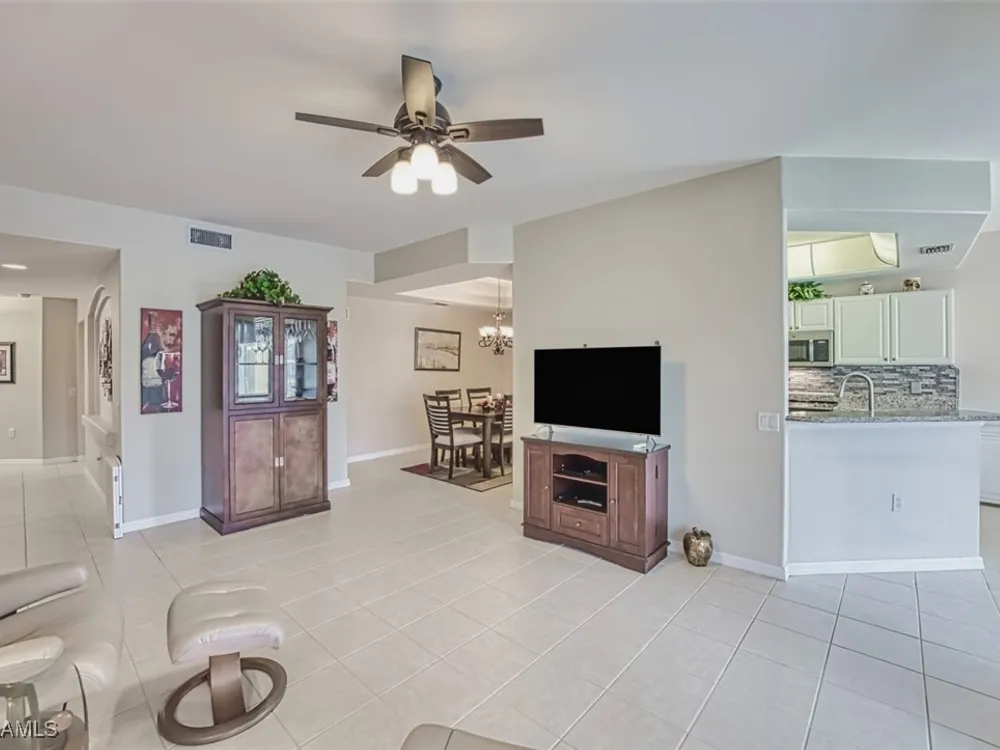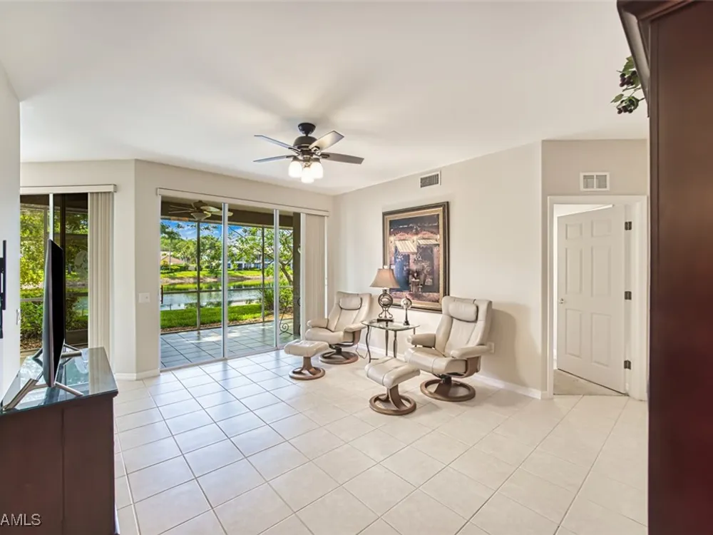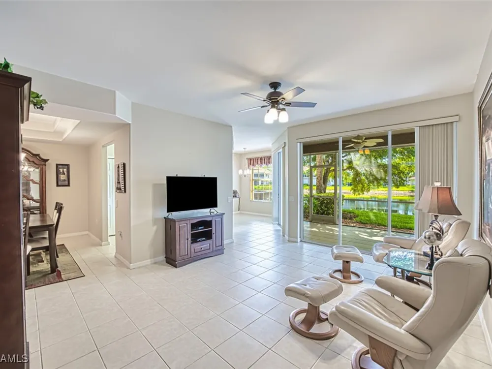 Welcome to your new home in the prestigious Colonial Country Club! NO FLOOD INSURANCE REQUIRED! This wonderful condo comes with A FULL GOLF MEMBERSHIP to a Gordon Lewis designed championship golf course which is being renovated so you will have a brand new course in December. This home offers the perfect blend of luxury and convenience, with 2 bedrooms, 2 bathrooms, an office/den and a 1 car garage. The spacious layout includes granite counters, newer stainless steel appliances, and a new water heater making it the ideal space for both relaxing and entertaining. With a convenient first-floor location and a great pond view, you'll never tire of the beautiful surroundings. Seller is offering a $2000 credit for new carpeting. The award-winning Colonial Country Club offers resort-style living with amenities like bundled golf, tennis, pickleball, bocce ball, a fitness center, restaurant and bar, 3 pools, and walking trails. Don't miss out on this incredible opportunity to live in luxury in one of the most sought-after communities in the area. Come see for yourself why Colonial Country Club is the perfect place to call home.
