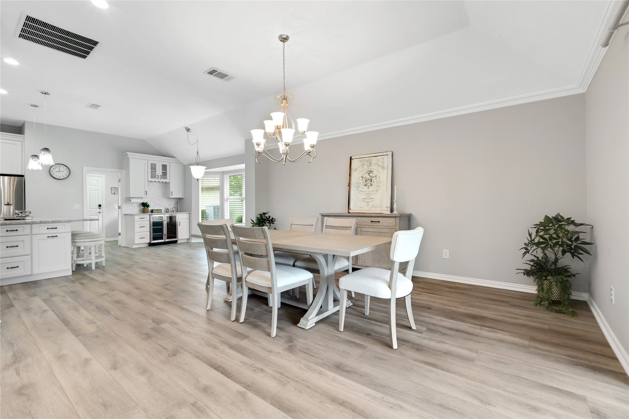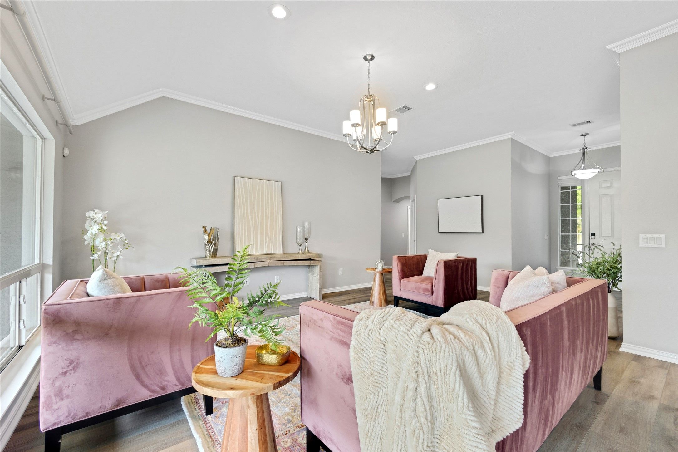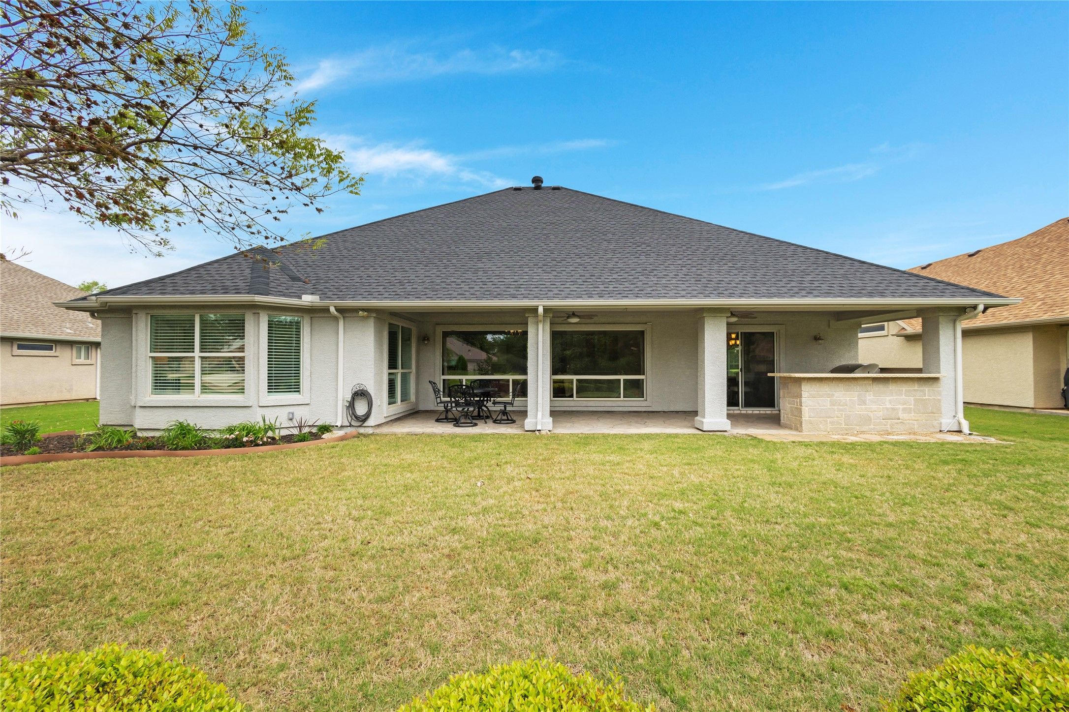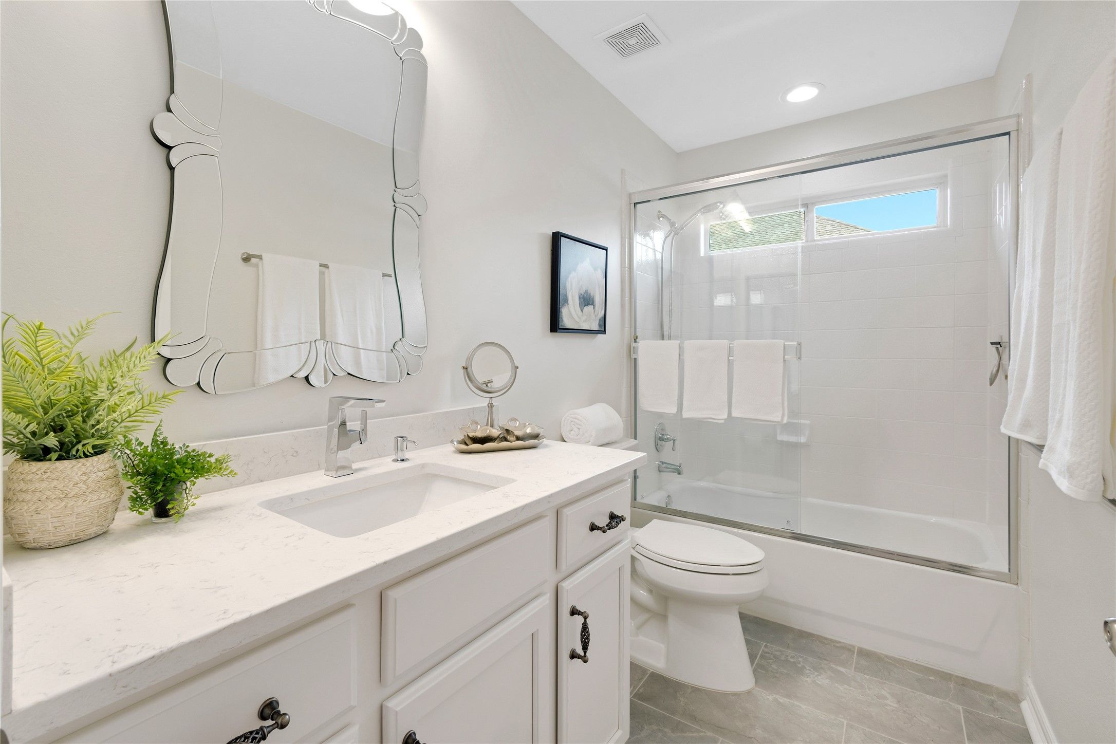 From the moment you step inside, it’s clear this home was designed for both everyday comfort and effortless entertaining, offering refined finishes and thoughtful upgrades throughout. Beautifully updated within the past four years, this exceptional 2-bedroom home, with an office, is located in the highly sought-after active adult community of Robson Ranch. The chef’s kitchen is a true showpiece, featuring a Wolf professional range with double ovens, professional hood vent, pot filler, leathered granite countertops, cabinets extending to the ceiling with illuminated glass uppers, a decorative mother-of-pearl backsplash, and a large island ideal for gathering with family and friends. New flooring flows seamlessly throughout the home, enhancing the bright, open layout highlighted by large windows that showcase peaceful backyard views. The breakfast nook includes a convenient wet bar, adding both functionality and charm for hosting guests. The spacious primary suite has been tastefully updated with new flooring, a beautifully tiled shower with custom glass enclosure, and quartz countertops, creating a relaxing, spa-like retreat. Step outside to enjoy the professionally updated landscape designed by a master gardener, with the added privacy and convenience of backing directly to the community walking path. Additional highlights include an epoxy-coated garage floor with built-in workbench, and the washer, dryer, and kitchen refrigerator conveying with the home. This meticulously maintained property blends quality craftsmanship, elegant design, and the vibrant lifestyle that makes Robson Ranch one of Denton’s premier active adult communities.