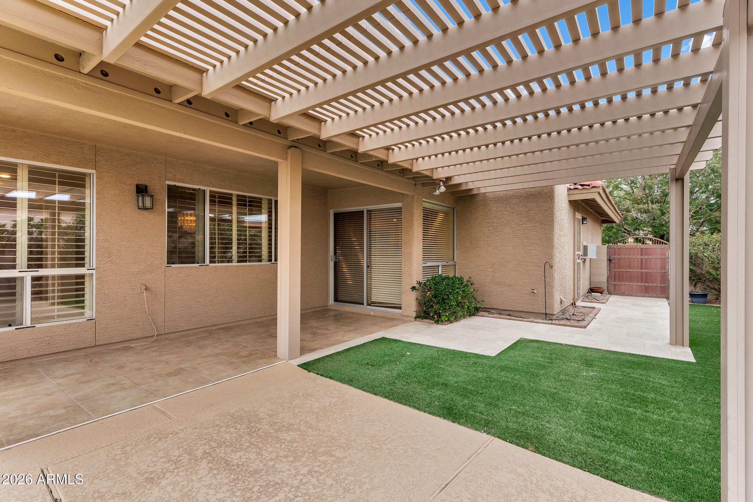 Charming and spacious ''Zuni'' model located in the heart of Sun Lakes. Step into a thoughtfully designed floor plan filled with natural light and endless possibilities to make it your own. The inviting open living area is perfect for gathering by the fireplace and provides a wonderful canvas for your personal touches. This home features two bedrooms, two bathrooms, and a den or office space, complete with a wet bar at the back of the home, offering additional functionality. This space could also be used as a third bedroom and includes its own private exit to the swimming pool. The updated eat-in kitchen showcases beautiful granite countertops, a stylish backsplash, and ample cabinet space, ideal for everyday living and entertaining. Retreat to the expansive owner's suite featuring two large closets, including one walk-in closet, a separate shower and bathtub, and a spacious en suite bath with dual vanities. The guest bedroom is conveniently located next to a full bath, providing added comfort and privacy for visitors. The backyard has been thoughtfully designed for low-maintenance living with artificial turf and a covered pergola, creating the perfect setting to relax or host guests. The pool deck was recently resurfaced, and the pool was acid-washed, making it ready for immediate enjoyment. Located in the highly desirable active adult community of Sun Lakes, residents enjoy access to pickleball, tennis, golf, sparkling pools, a spa, social clubs, community events, and a recently updated fitness center available exclusively to residents.