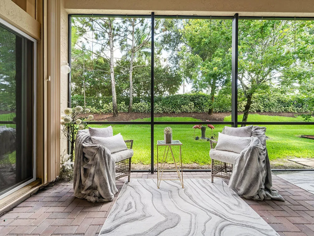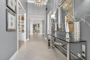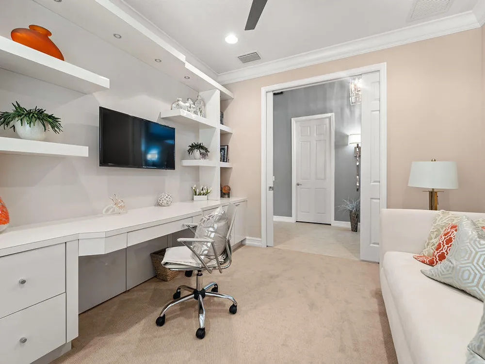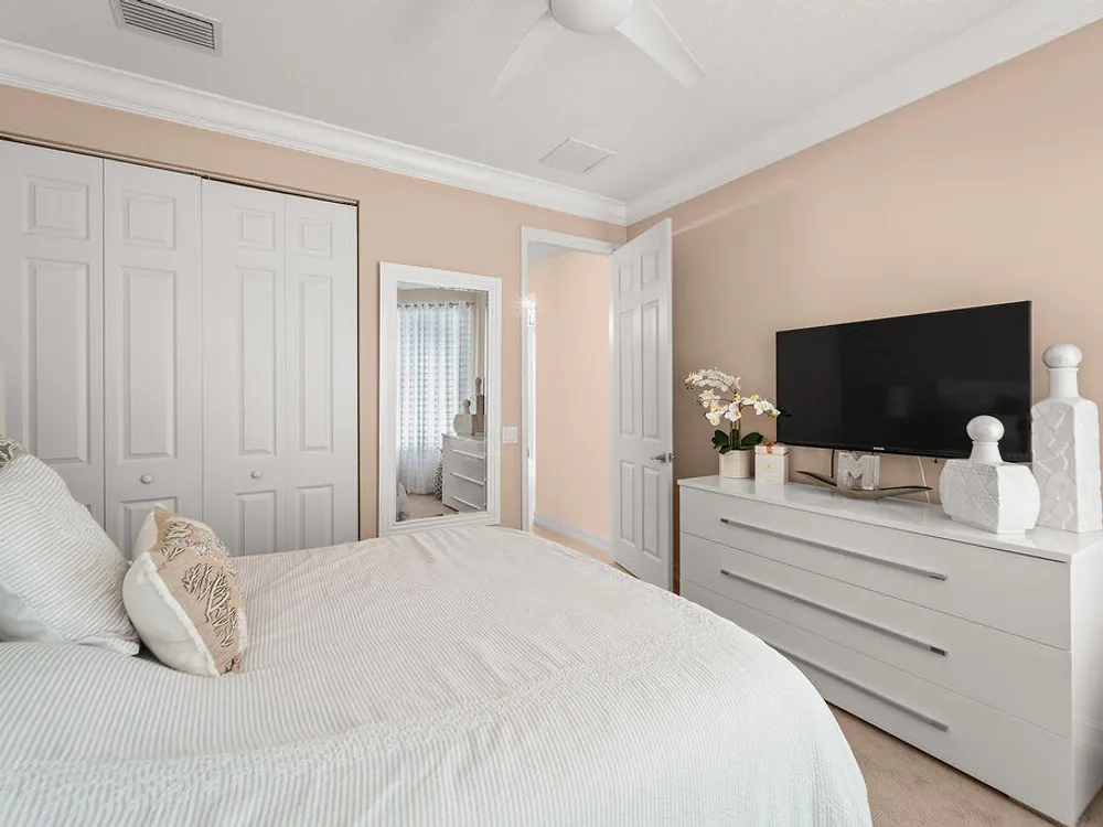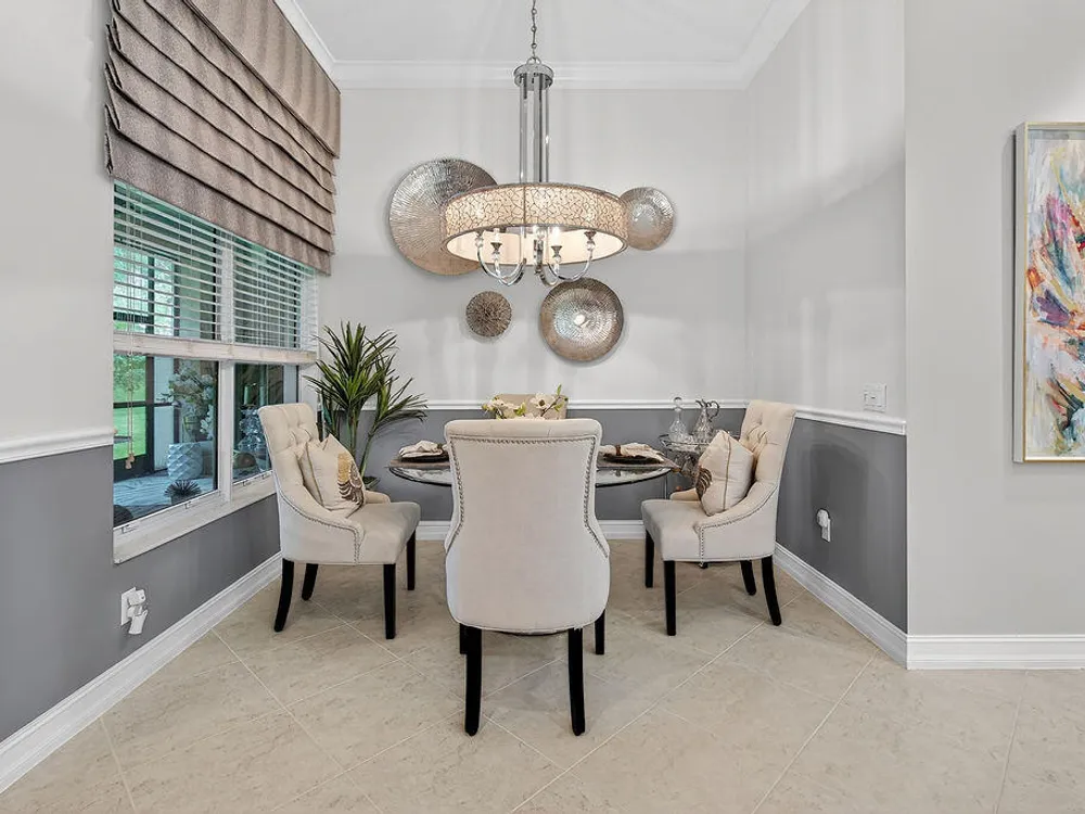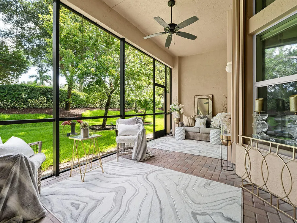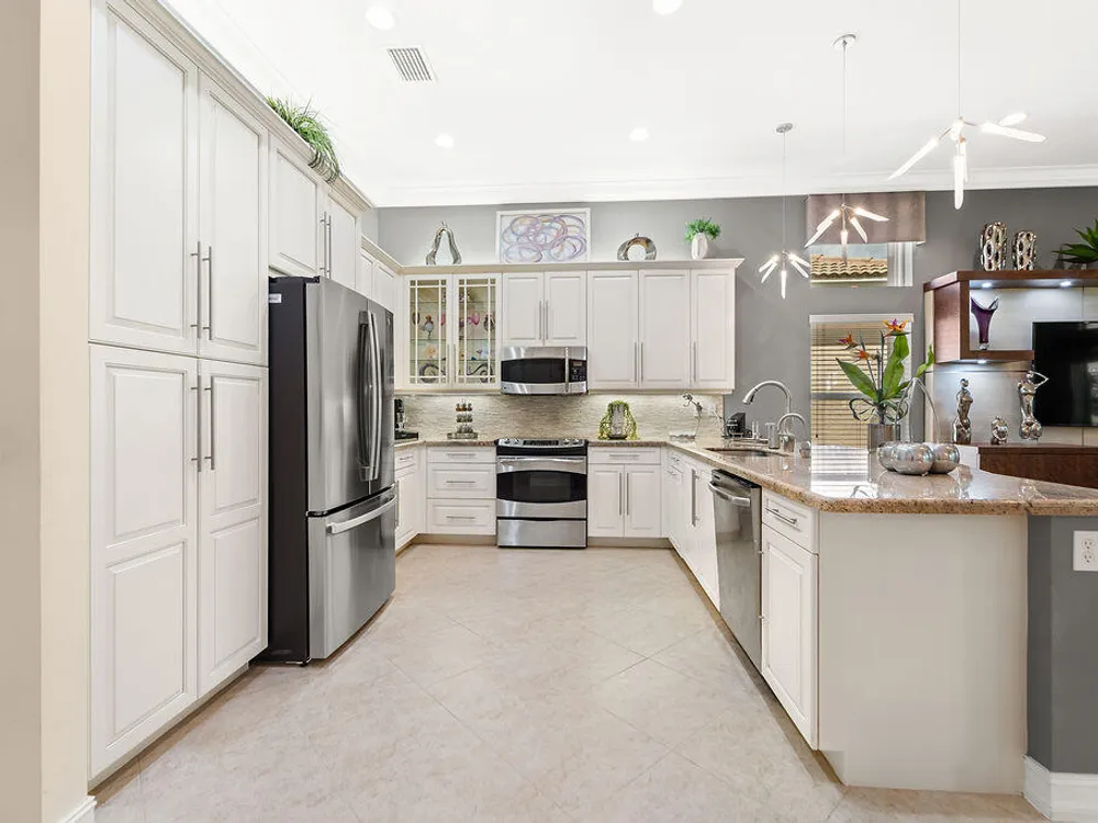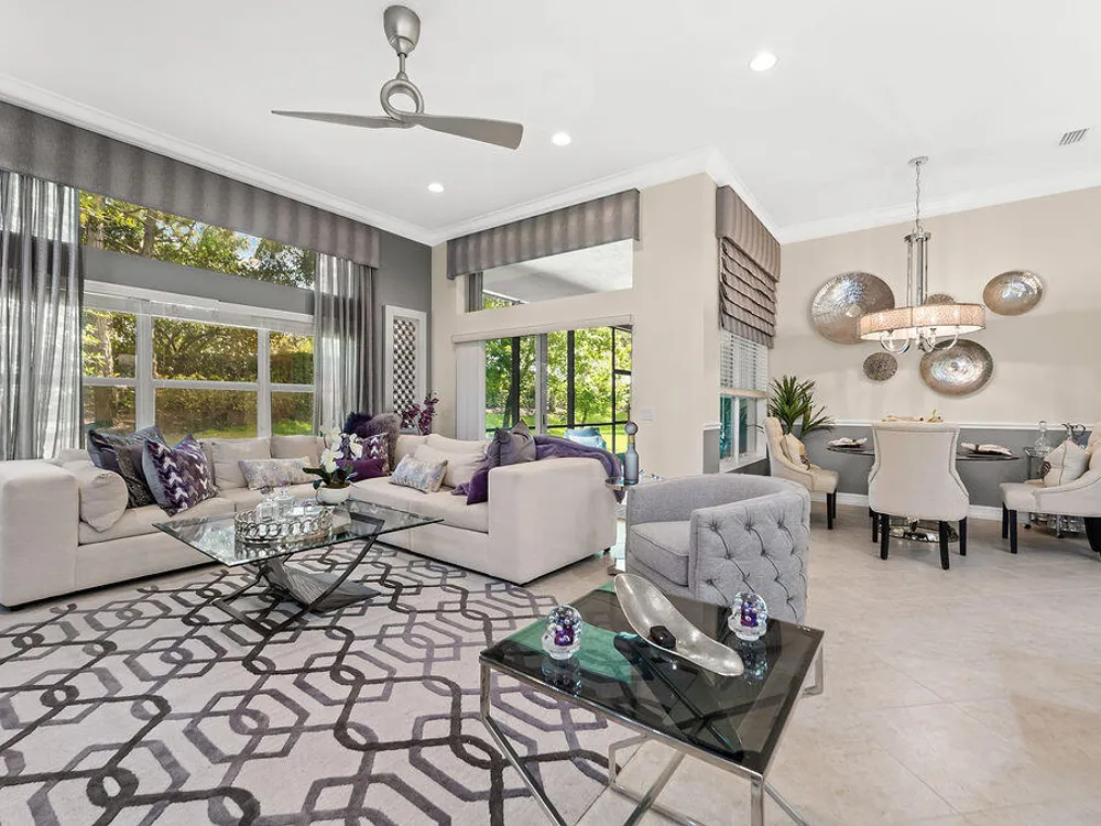 Welcome to this impeccably maintained, move-in ready home that effortlessly blends elegance, comfort, and functionality. Featuring an open-concept layout filled with natural light, this bright and spacious residence offers two generous bedrooms, a versatile den, a formal living room, and a formal dining room--perfect for both everyday living and entertaining. The gourmet kitchen is a standout, with granite countertops, upgraded cabinetry, quality appliances, and a brand new refrigerator. The primary suite provides a serene retreat with custom finishes and a spa-like bathroom. Neutral flooring, stylish lighting, and ceiling fans add warmth and sophistication throughout.