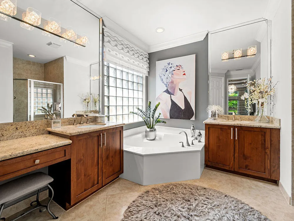 - Entry Level Living Area, Garden Tub/Roman Tub, Walk-In Closet(s), Home Office, Dual Sinks, Primary Downstairs, Separate Shower, Bathtub