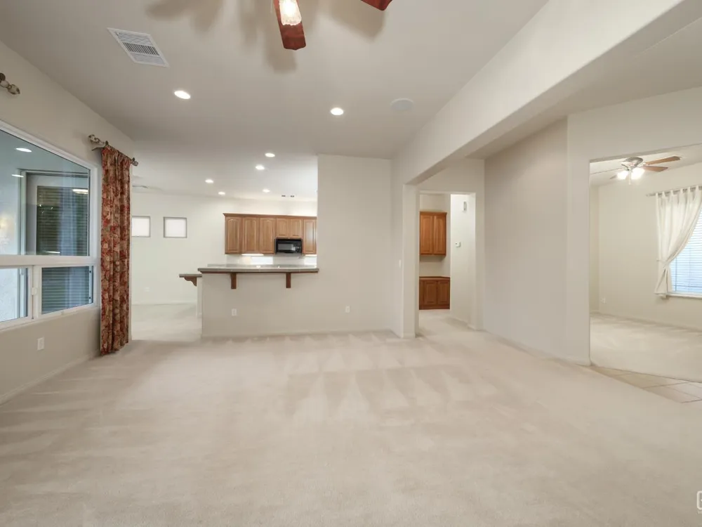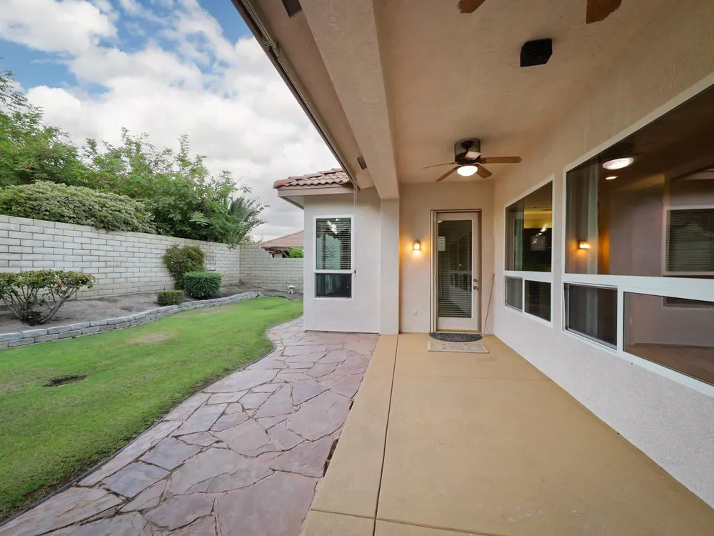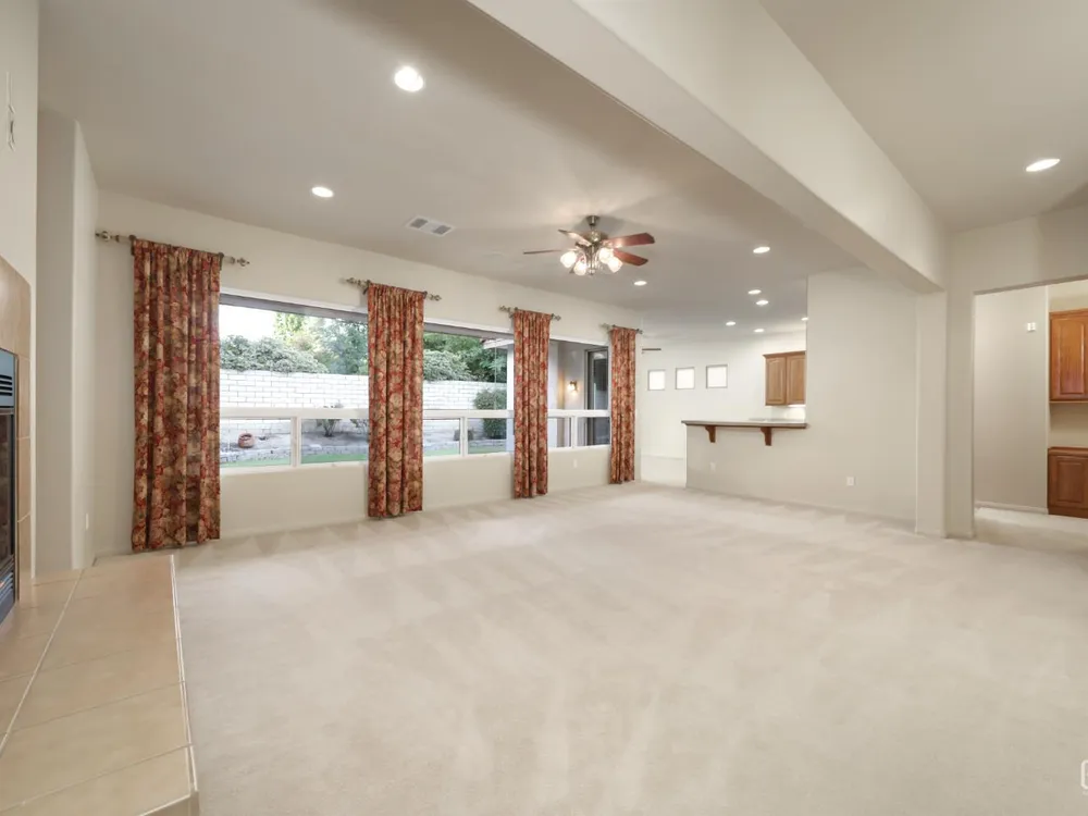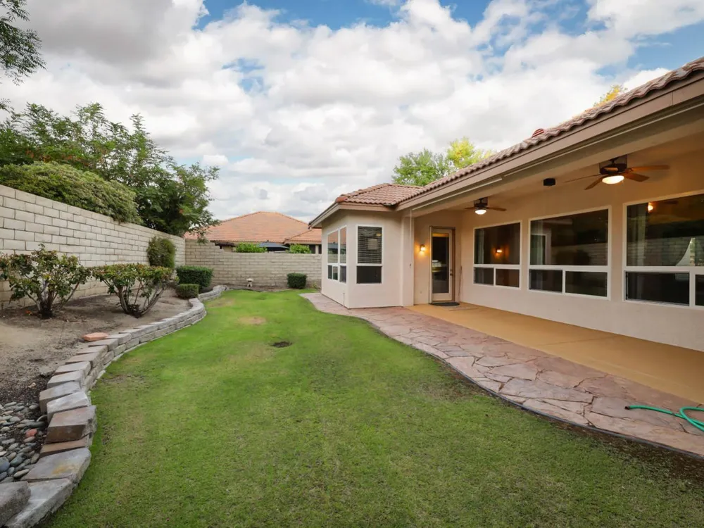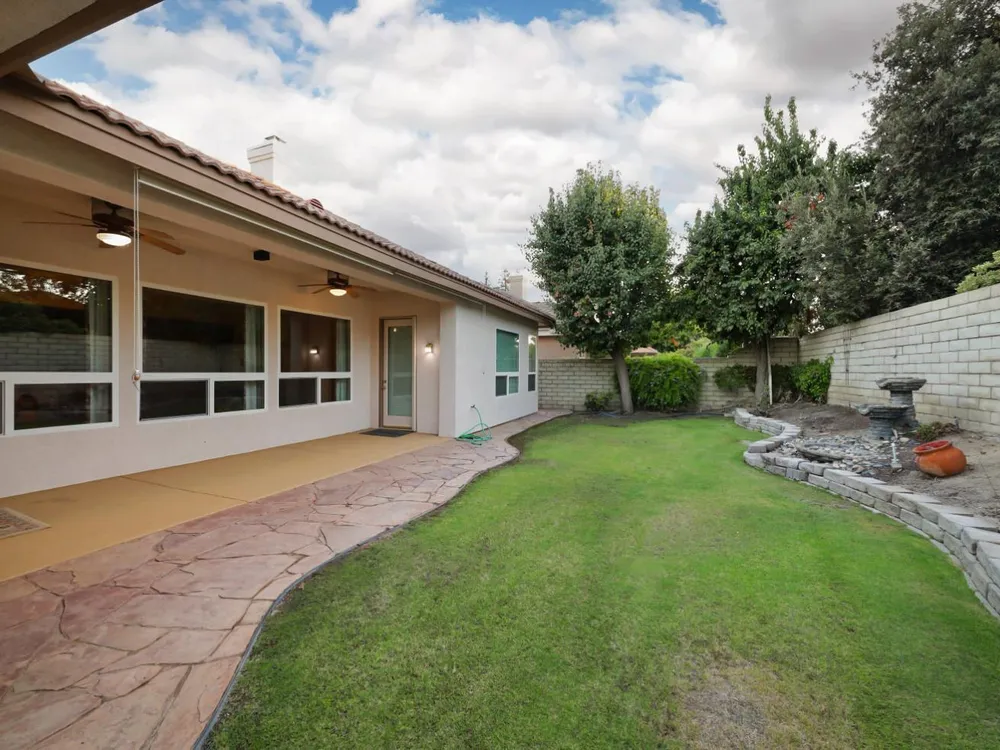 This impeccably maintained home in the desirable Seven Oaks Greens 55+ gated community is a true gem! Featuring a spacious split-wing layout with 2 bedrooms + office, 2 bathrooms, and a large family room with high ceilings, cozy fireplace, and surround sound, this home offers both comfort and functionality. Enjoy serene views of the picturesque backyard through oversized windows.The primary suite includes dual vanities, a soaking tub, and two generous closets. The open-concept kitchen overlooks the living area and is ideal for entertaining. Additional features include a 2.5-car garage with built-in cabinetry, alarm system, and a backyard oasis with a peaceful water feature, pull-down shades on the patio, a storage shed, and block wall fencing for privacy.Residents of The Greens enjoy two clubhouses offering an exercise facility, library, kitchen, social hall, putting green, BBQ area, pool, and spaall designed for an active and vibrant lifestyle.