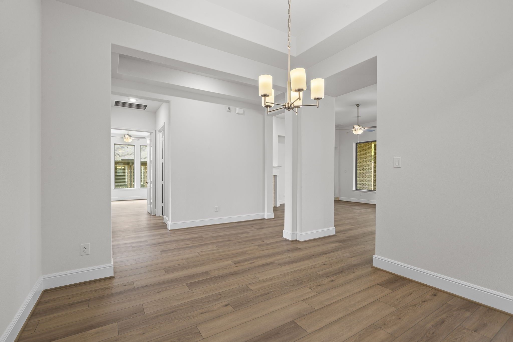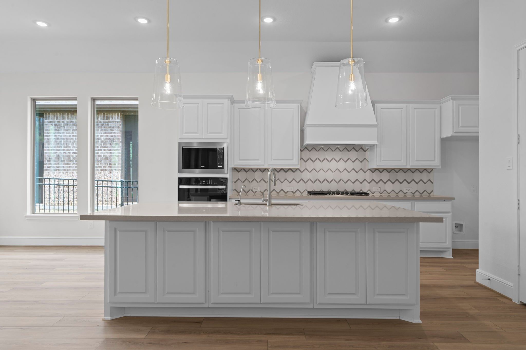 This gorgeous home is situated on a peaceful lot within walking distance of the golf course. The stunning elevation is sure to catch your attention. Upon entering, you are led into an open foyer adorned with trayed ceilings and accent lights. Breathtaking luxury vinyl floors and cool color palettes grace the home. The kitchen is equipped with beautiful quartz countertops, a butler's pantry, a grand island, and abundant cabinetry. Entertaining will flow smoothly with this open floor plan and large covered patio ready for you to personalize the outdoor kitchen. You will absolutely love all the extras this warm and inviting home has to offer. Your future home awaits you! Visit us today!