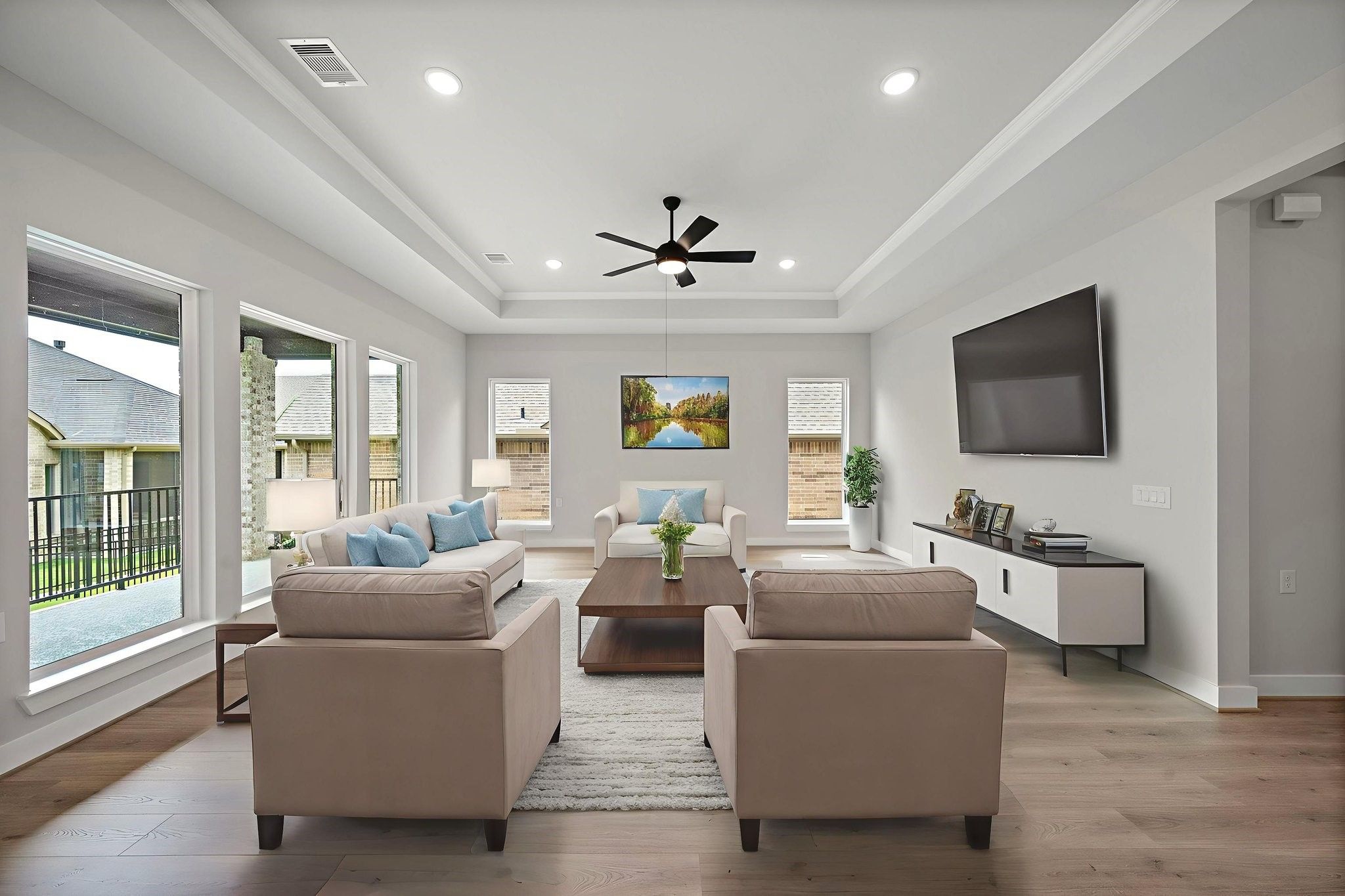 - Handicap Access, High Ceilings, Kitchen Island, Pots & Pan Drawers, Pantry, Quartz Countertops, Walk-In Pantry, Ceiling Fan(s), Programmable Thermostat