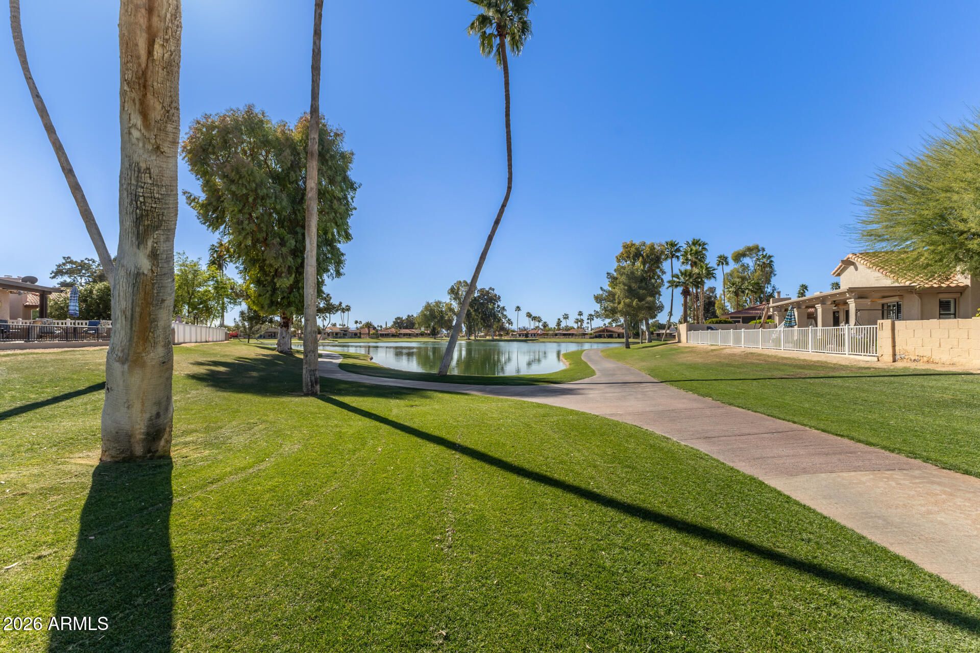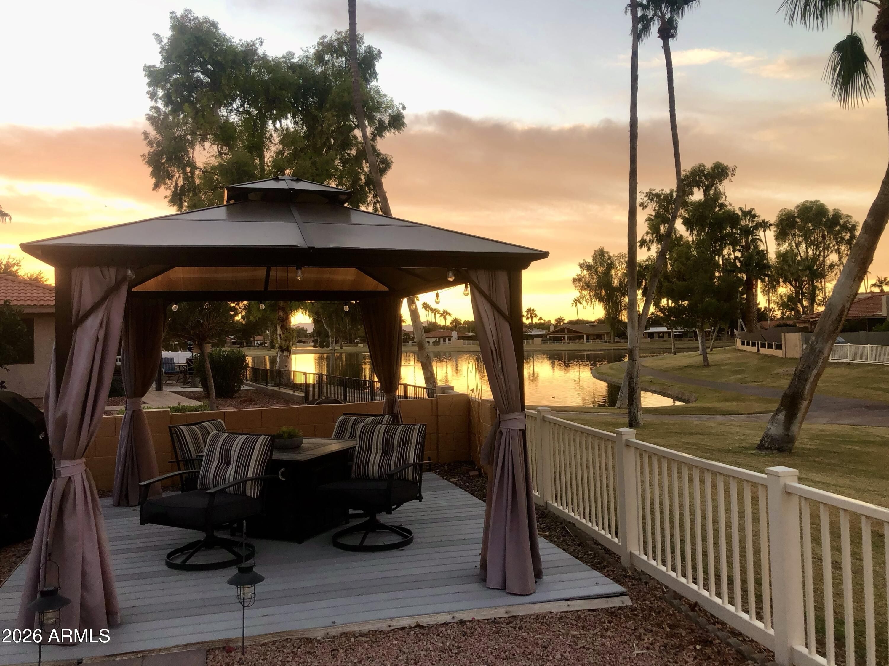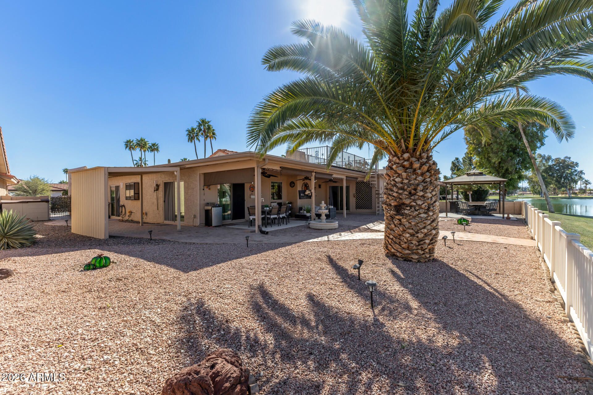 LAKE VIEWS! REMODELED KITCHEN! Welcome to this popular Alameda model in the vibrant active adult community of Cottonwood in Sun Lakes. Previous owner added 236 sf of office space with an exterior entrance. Secure covered golf cart parking on side behind the gate. Enjoy star gazing on the rooftop deck. Beautiful backyard patio and gazebo to enjoy the lake views and the amazing sunsets. Updates galore. New garage door opener 2026. Full kitchen remodel, gutters, exterior paint & freshly sealed roof in 2025. New HVAC 2020. New mini split, RO system, tankless water heater in 2019. 2018 water softener. Dual paned windows & gate in 2017. Golf, 7 pickle ball & 7 tennis courts, fitness center, 5 pools, restaurants, clubs, & countless social activities all included for one low HOA fee.