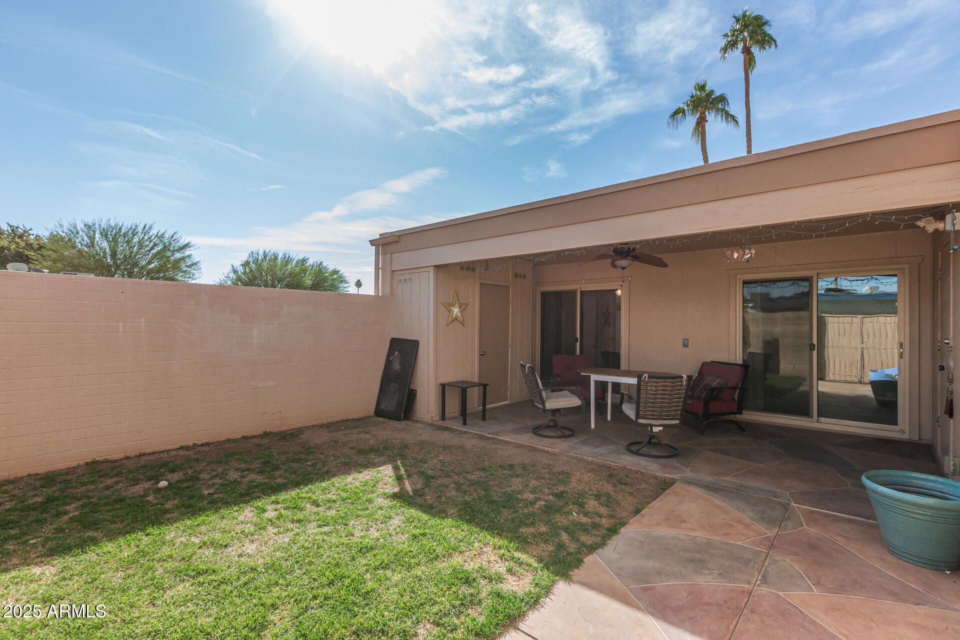 Beautifully updated end-unit patio home in Sun City's active adult community. This turn-key 2 bed, 2 bath home is light and bright with newer carpet in bedrooms, oversized tile in the kitchen and baths with wood-look laminate flooring throughout the main living areas. The remodeled kitchen boasts quartz countertops, new white cabinets, a newer stainless fridge, and designer backsplash. Bathrooms include updated vanities and fixtures. Enjoy an east-facing patio with flagstone, grass, and a flowerbed, plus a custom gate with golf cart access and extra storage. New roof and HVAC (both about 2 years old) offer peace of mind! Come see your new home today!