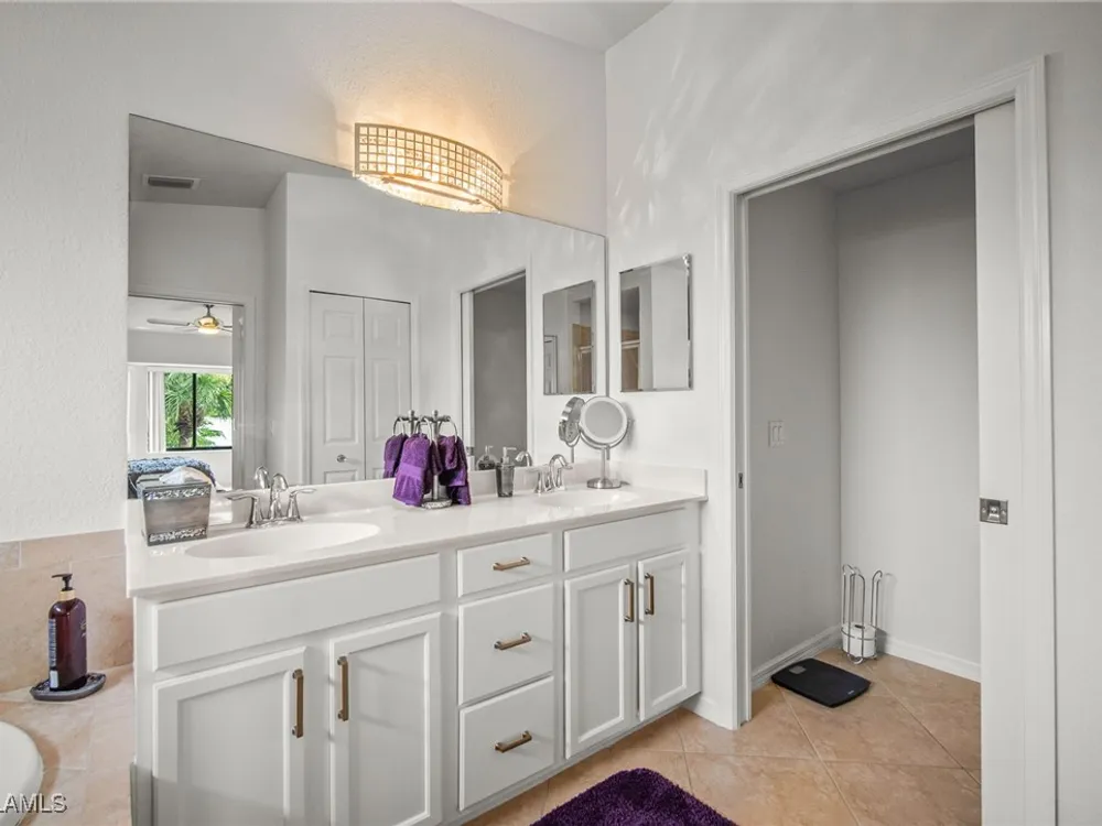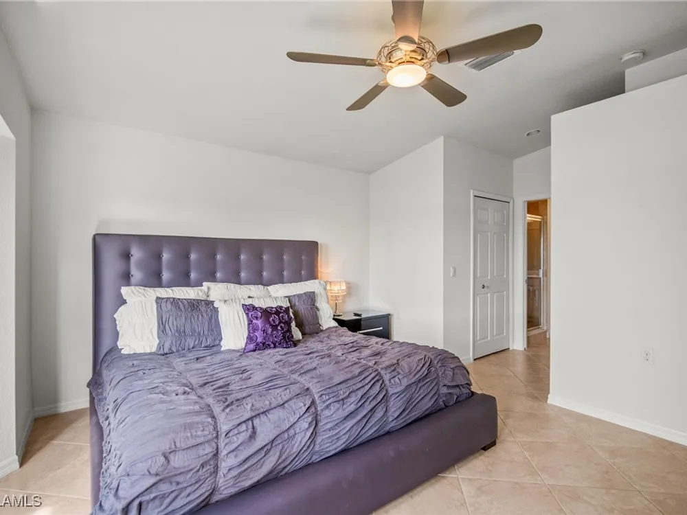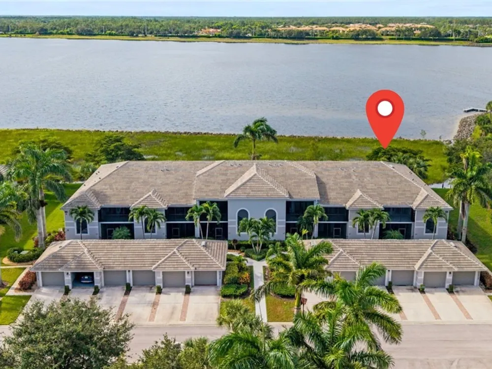 Extremely rare top-floor end unit with 3 full bedrooms and no side neighbor, featuring an incredible southern lake view! This unique residence comes fully turnkey and move-in ready for an effortless move, complete with a FULL golf membership to Heritage Bay’s 27-hole championship golf course. The "Abbey" model Veranda condo features a 1-car detached garage, front AND back screened lanai, and this one has the traditional den/office closed into a bedroom, transforming the layout into a true 3-bedroom condo. Flooded with natural light and offering peaceful southern lake views, this condo has hurricane impact glass and sliders, and was recently refreshed with a newer A/C (2020), freshly painted walls & cabinets with new hardware, and modern furniture and fixtures. Heritage Bay boasts a stunning 27-hole Lewis-Azinger designed golf course and aqua driving range. The grand clubhouse features diverse dining options, elegant event spaces, and a lively social scene. Dine at The Grille Room, a casual indoor/outdoor bar and restaurant with an incredible southern view of the 27th green. Members enjoy a resort-style pool area with heated spa, plus ‘The Cabana’ poolside bar & grille offering a full-service kitchen. The community also offers a top-notch tennis program with 7 har-tru clay courts, pickleball (4 more being added with no assessment) & bocce courts, and a state-of-the-art fitness center. With a calendar full of events and activities, Heritage Bay delivers a vibrant, luxurious lifestyle—whether you’re a golf enthusiast or simply seeking serene golf & nature views and elevated living. These condos are super easy to rent in winter at $7500+ a month, which covers all of your costs!