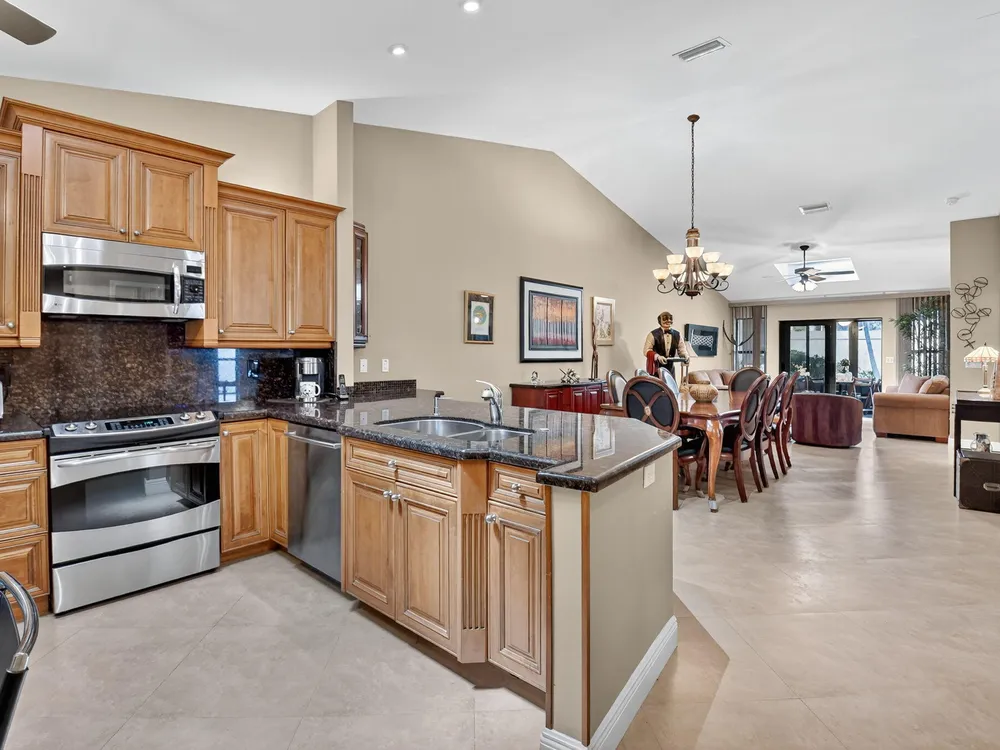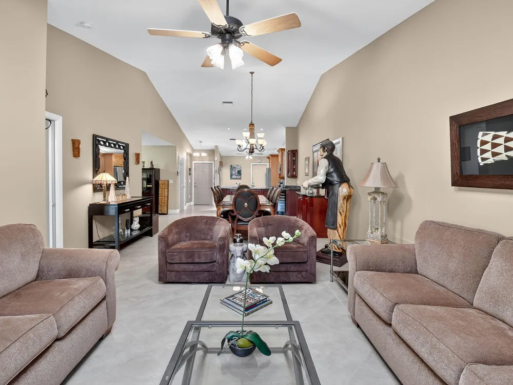 - Cathedral Ceiling(s), Kitchen Island, Split Bedrooms, High Ceilings, Walk-In Closet(s), Home Office, Breakfast Area, Living/Dining Room, Impact Glass, Primary Downstairs, Separate Shower