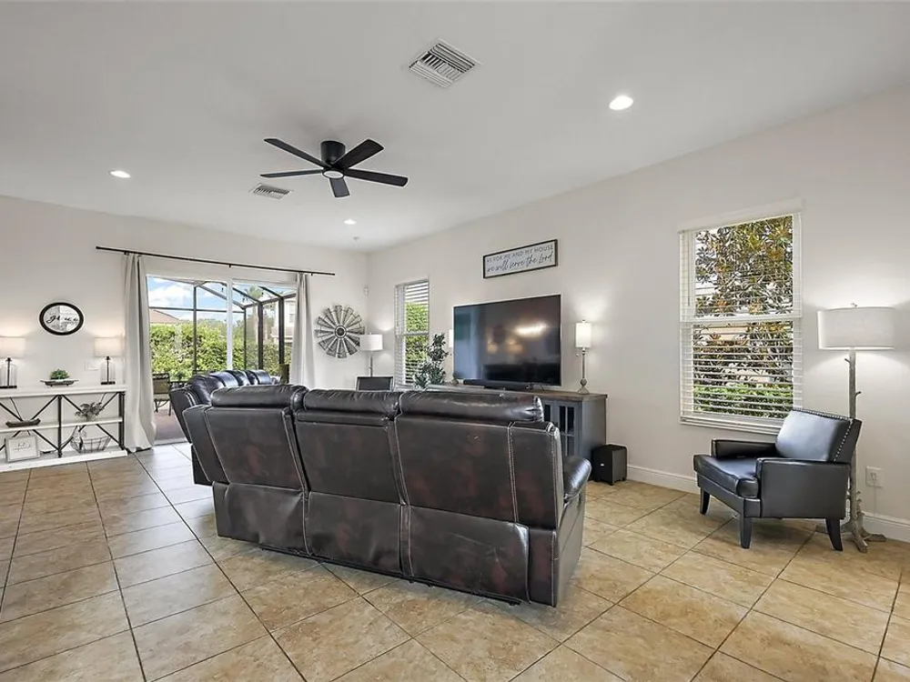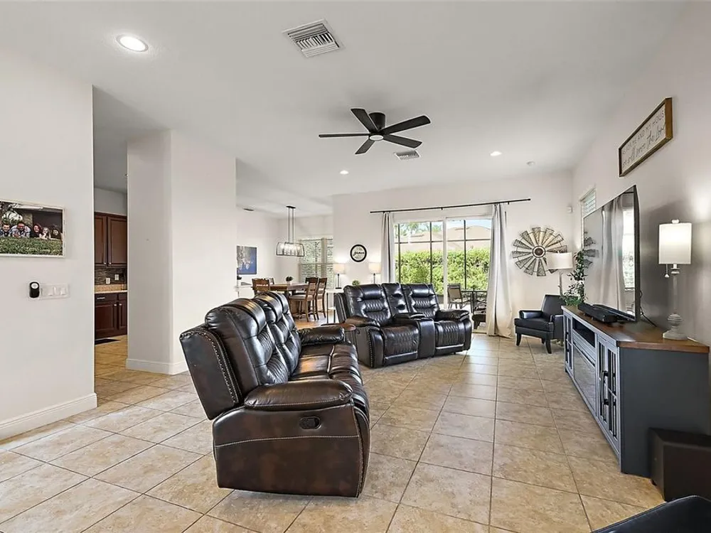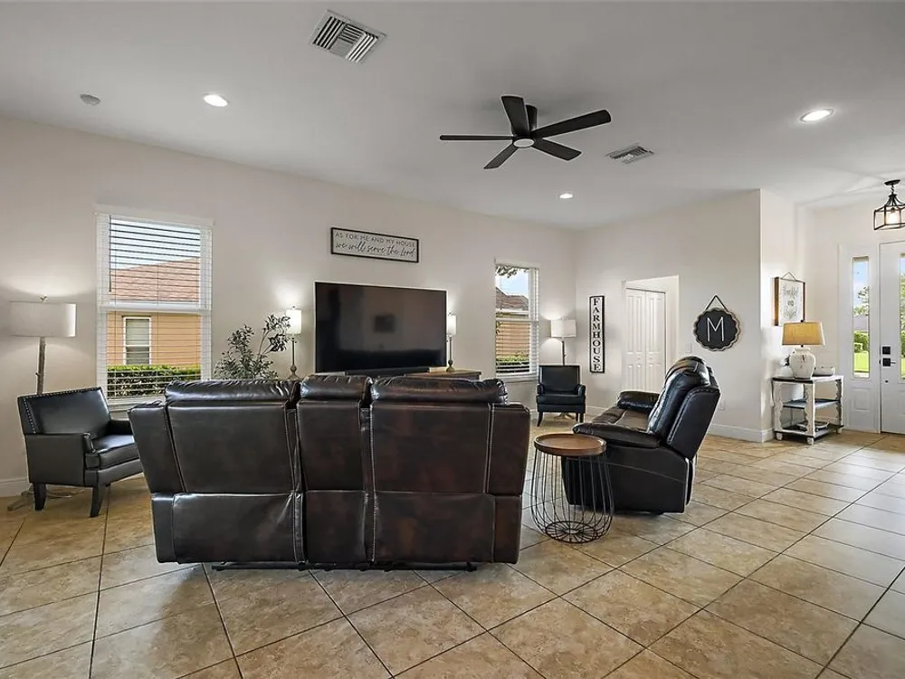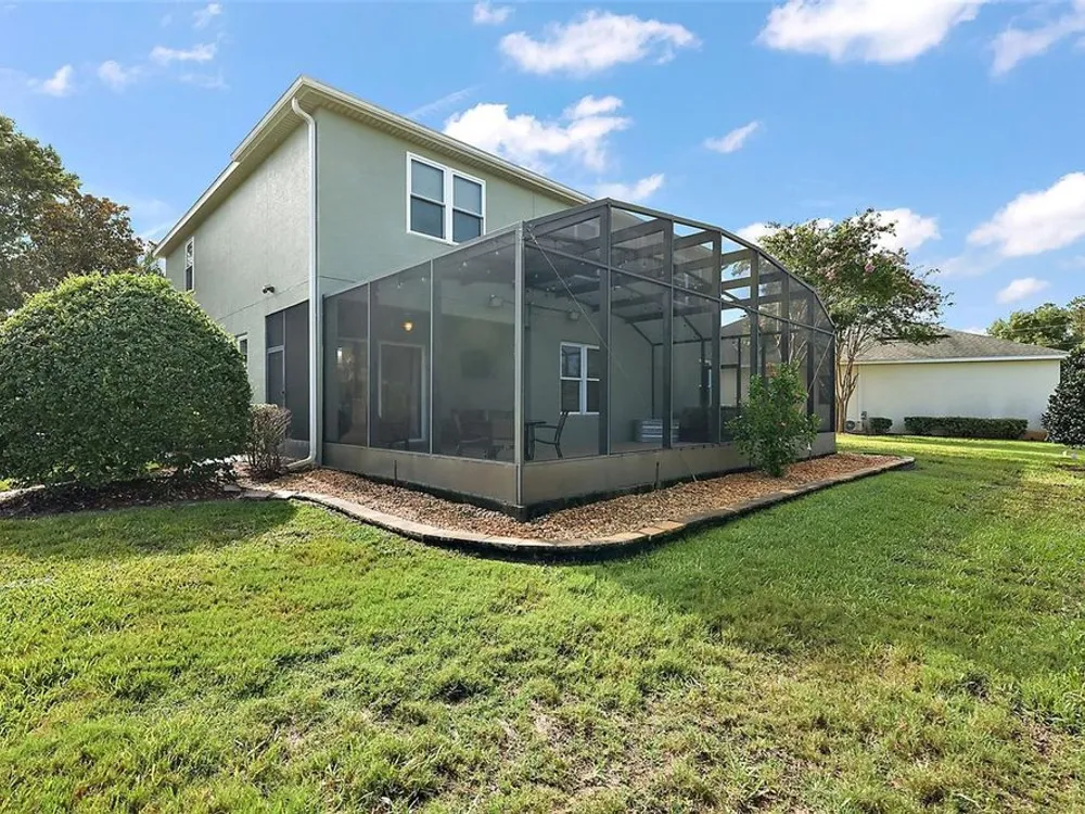 Under contract-accepting backup offers. FABULOUS 4-Bedroom 3 1/2-Bath BLOCK and STUCCO home with ENORMOUS BONUS ROOM, IMMENSE BIRDCAGE, and PRIVACY LANDSCAPING nestled on a LARGE PIE-SHAPED LOT in the highly sought-after GATED community of Lakeside Landings - amenities include a lagoon-style pool, hot tub, state-of-the-art clubhouse, and fitness center! Enjoy MAINTENANCE FREE LIVING with HOA-COVERED lawn care, irrigation, trash, and pest! JUST MINUTES from The Villages retirement community, The Villages Charter Schools, and CR466 offering easy access to a plethora of shopping, dining, banking, medical and more! The STRIKING exterior screams curb appeal with lush tropical landscaping, curved stacked walls, and PAVER drive and walkways. A quaint FRONT PORCH and beautiful GLASS front door with sidelight welcomes you in to the generous foyer. Soaring 13’ HIGH ceilings and TILE flooring grace the VOLUMINOUS living, dining and kitchen areas. The OPEN-CONCEPT offers a SPACIOUS layout that connects these rooms for effortless entertaining and everyday living! From the living room, sliding glass doors invite you in to the EXPANSIVE lanai and birdcage with PRIVACY landscaping. This SPACIOUS OUTDOOR RETREAT is perfect for everything - Whether you're hosting friends and family or simply savoring a quiet morning coffee - It’s truly an entertainer’s dream and a PRIVATE sanctuary all in one! Back inside, the STUNNING GOURMET kitchen boasts pristine CHERRY cabinetry, GRANITE countertops, GLASS TILE backsplash, STAINLESS appliances, EAT-IN breakfast bar, and PANTRY closet. The luxurious primary bedroom features beautiful RICH WOOD LAMINATE flooring, HIGH ceiling, and a WALK-IN closet. Its en-suite bathroom offers TILE flooring, CHERRY cabinetry, DOUBLE sinks, WALK-IN TILED ROMAN-STYLE shower, and a separate water closet. For added CONVENIENCE, there’s also an additional HALF-BATH with two hallway STORAGE closets just off of the living room. Venture upstairs to discover three more bedrooms and two baths! Bedroom two features a built-in closet and an EN-SUITE bathroom with CHERRY cabinetry and a TILED tub and shower combination. The third and fourth bedrooms both have built-in closets and are conveniently connected by and HUGE Jack-and-Jill style bathroom. This amazing bath boasts TWO separate CHERRY vanities, TILED WALK-IN shower, and a LINEN closet. But wait, there’s more! There’s also an ENORMOUS BONUS ROOM for endless possibilities! This FANTASTIC MULTIPURPOSE SPACE offers limitless potential for your lifestyle needs. Whether you're dreaming of a state-of-the-art home theater, a spacious playroom, a home gym, or even a multi-station office setup, this oversized flex space is ready to become whatever you envision! The GENEROUS laundry room is centrally located on the second floor and features WHITE cabinetry and a utility sink. Back downstairs and completing the package is a 506sf two-car garage boasting a HUGE under-stairway storage closet and plenty of space for parking! WITH SO MUCH TO OFFER- THIS HOME IS A MUST SEE! The Lakeside Landings community offers INCREDIBLE AMENITIES! Soak up the sun or take a refreshing dip in the RESORT-STYLE POOL! Workout in the FITNESS CENTER or enjoy a game of TENNIS or PICKLE BALL! There’s even a PLAYGROUND, BEACH AREA and FISHING DOCK with access to BEAUTIFUL Lake Miona! DON’T MISS YOUR OPPORTUNITY TO MAKE THIS FABULOUS HOME in an AMAZING LOCATION YOUR OWN! Please watch our walkthrough video and call today to schedule your Private Showing or Virtual Tour!