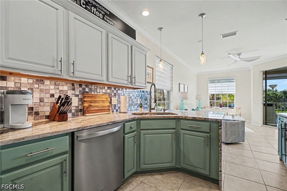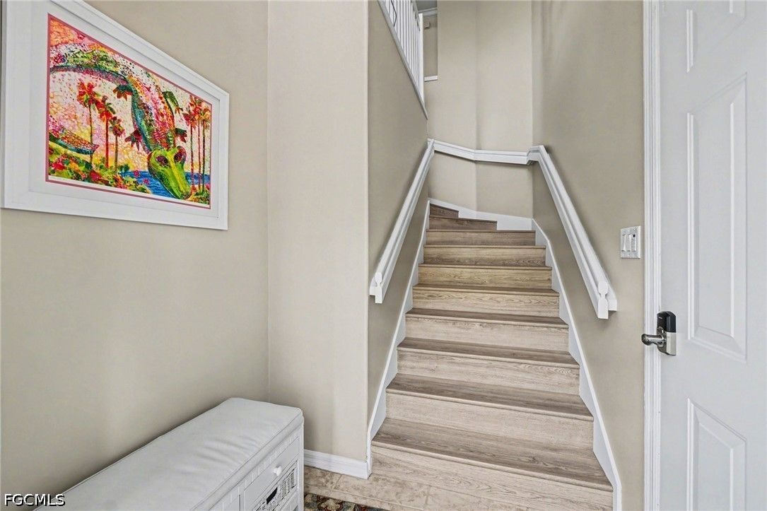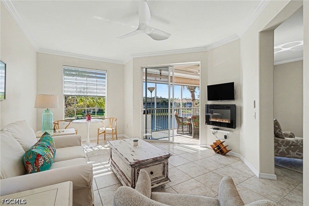 If you have been looking for the PERFECT, sunlit, END UNIT, spacious, Carriage Home with a 2 CAR GARAGE and a BUNDLED GOLF MEMBERSHIP at the prestigious Colonial Country Club- then your wait is officially over! Properties like this one do not come up often. The finest attention to detail has been paid in this stunning remodel. As you enter the home via your private entrance, you will notice the luxury vinyl plank flooring on the oversized staircase. The beautifully appointed living room leads straight to the screened lanai via telescoping triple sliding doors and overlooks a sparkling lagoon with fountain where you can enjoy the spectacular sunrises. A formal dining space is adjacent to the remodeled kitchen with all the bells and whistles. Stainless steel appliances, a beverage cooler, waterfall granite countertops, glass tile backsplash, recessed lighting and custom cabinetry. Truly a chef's delight! A separate sitting area off the kitchen overlooks the water and includes an electric fire place for ambiance. The Primary Bedroom Suite features a spacious bedroom with 2 walk in closets plus a separate linen closet. The En Suite Primary Bathroom features a spa like shower and dual vanity with gorgeous granite countertops and designer lighting. Your Guest Bedroom Suite is similarly appointment to the Primary Bedroom Suite with an oversized bedroom with window seat, and en suite bath with a bonus sink area. They may never want to leave... A third bedroom with french doors rounds out the home and provides a flexible space for a home office and/or hobby room. The home features the coveted super sized 2 car garage with a concrete coated floor and room to park 2 cars or your golf cart plus plenty of extra space store all your goodies! Updated lighting, custom window treatments and a Storm Smart Kevlar Remote Operated Screen on the Lanai make this the ultimate home or home away from home where enjoying all that SWFL offers. The property features a FULL GOLF MEMBERSHIP TO THE 18 HOLE GOLF COURSE AND EXPANDED PRACTICE FACILITY. As a Member, you will also have ACCESS to multiple renovated & lit TENNIS, PICKLE BALL & BOCCE COURTS. The Community Center has reopened fully re-imagined with new meeting spaces for FUN & FELLOWSHIP and a state of the art, professionally staffed fitness facility. Miles of paved sidewalks and walking trails within a WILDLIFE PRESERVE exist inside the neighborhood for abundant opportunities to enjoy nature's beauty. A recent impressive CLUBHOUSE RENOVATION has brought the Membership AWARD WINNING DINING OPTIONS & a continuous slate of ENTERTAINMENT with fun filled events to fill your calendar. The Award Winning Troon Managed Colonial Country Club is so close to everything but offers an oasis of tranquility and beauty within its' gates. An easy 15 minute ride to RSW. Less than 5 minutes to I-75. Minutes to SW Florida's best dining, shopping and beaches. Live where you play! Start enjoying the good life today!