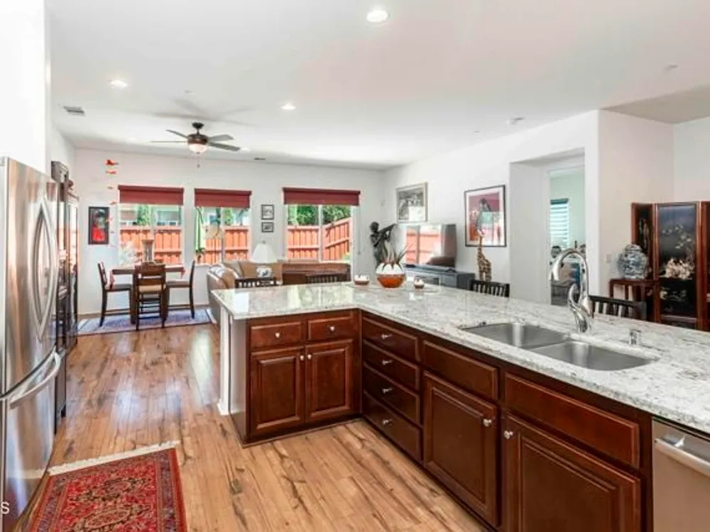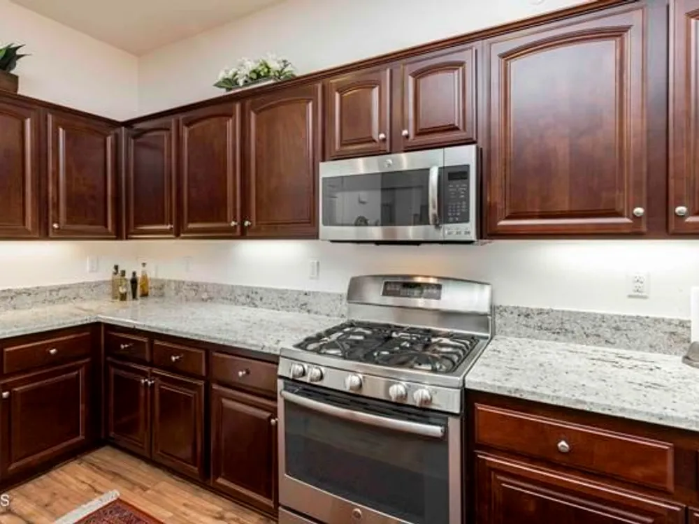 Just Reduced!! Welcome to this beautifully maintained 2-bedroom, 2.5-bath home in the highly desirable Four Seasons 55+ community. Offering comfort & style, this residence features an inviting open floor plan filled w/ lots of natural light. The spacious kitchen boasts granite countertops, rich custom cabinetry, stainless-steel appliances and a large island w/ seating that flows seamlessly into the dining and living areas-perfect for entertaining. The private primary suite includes a spa-like bath w/ dual vanities, a soaking tub, a separate shower and an expansive walk-in closet. A second bedroom and bath provide an ideal space for guests or a home office. Additional highlights include LVP and neutral carpet flooring and a convenient laundry room. Outside, the backyard offers low-maintenance landscaping and room to relax or dine outdoors. Residents enjoy resort-style amenities including a clubhouse, pool, fitness center, bocce ball, pickle ball, tennis courts a putting green, walking trails and more.