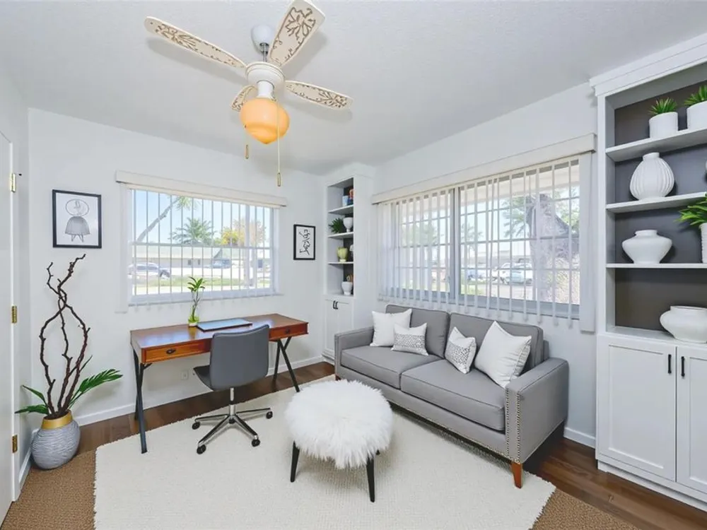 One or more photo(s) has been virtually staged. Maintenance-Free Living in Springwood Villas 55+ Community! Experience the best of carefree Florida living in this beautifully maintained two-bedroom, one-bath villa located in the welcoming 55+ community of Springwood Villas. The low monthly HOA fee of $475 covers cable TV, internet, water, sewer, trash, gas, roof, exterior maintenance, building insurance, and more—allowing you to enjoy a maintenance-free lifestyle without the worry of unexpected expenses. This move-in ready home has been freshly painted throughout, including the ceilings, and features an open-concept layout filled with natural light. Updates include a newer AC (2018), newer water heater, all-new interior and closet doors, and the rare benefit of a private in-unit water heater. The spacious living and dining areas create a comfortable setting for daily living or entertaining guests, while the kitchen offers plenty of cabinet and counter space for ease of use. Just off the dinette, a private paved patio provides the perfect spot for morning coffee or evening relaxation. The bathroom is wheelchair accessible, and the second bedroom offers flexibility for guests, an office, or hobbies. A carpet replacement allowance is available with an accepted contract. Springwood Villas is designed for easy, active living. Residents enjoy a heated pool, sauna, fitness center, billiards, shuffleboard, and a clubhouse that hosts regular social events, creating a friendly and engaging community atmosphere. The location is ideal, close to shopping, dining, medical facilities, downtown St. Petersburg, Gulf beaches, and Tampa International Airport. For those 55 and older seeking convenience, community, and peace of mind, this villa offers an exceptional lifestyle in one of the area’s most desirable locations. Don’t miss your chance to make it yours—schedule your private showing today. Would you like me to shorten this slightly to fit typical MLS character limits (around 1,000 characters), or keep it in this more detailed form for marketing and flyers?