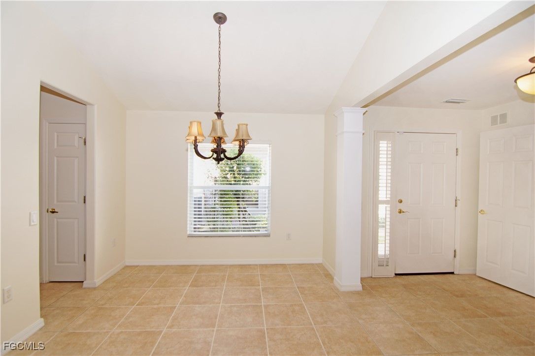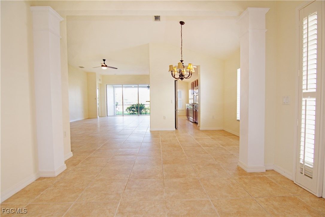 Would ya look at this view??? Come over an check out this amazing villa at friendly Colonial Country Club just waiting for your final touches! This Alexander Model, at just under 1,700sf boasts a screened lanai overlooking tranquil waters, tropical plantings and the sunny Southwest Florida skies! This Villa affords you a social membership to the Club and the opportunity to play golf at the newly renovated Troon-managed golf course on a pay as you play basis. The Villa features a large open floor plan with vaulted ceilings in the main living area all with tile flooring throughout- there is no carpeting in the home. The kitchen offers granite countertops with a breakfast bar and under cabinet lighting.The Plantation Blinds on all windows are a elegant upgrade and the entire home has recently also been freshly painted. The Primary Bedroom Suite offers a large enclave with a triple window so that you can wake up energized enjoying the sparkling water view. The Primary Bathroom offers a dual vanity, oversized shower and large walk in closet. Your guests will enjoy their own private escape with adjacent bath and pocket door. A large den rounds out the home and can also be used to accommodate additional guests or a home office or studio. With a 2 car attached garage, newer appliances and mechanicals, accordion style storm protection on all windows and a Storm Smart storm shutter on the back lanai- this easy care home would be a breeze to own as a vacation home or for year round use. Fresh, Light and Bright, this lovely Villa is a blank canvas awaiting your best decorating ideas and inspirations. In the community, amenities include multiple sparking pools just a short walk away; numerous well maintained and fully lit clay tennis courts; newly refinished pickle ball courts and two bocce courts- all offered with leagues galore. Stay in top shape at the state of the art fitness center with full slate of fitness and aqua fitness offerings scheduled to reopen fully remodeled in March 2026. Enjoy dinner at the beautifully remodeled Clubhouse with full restaurant and bar with many special events with entertainment. Check out a book at the on-site library or meet with friends over a card game or get crafty at the community center. Walk or bike along miles of winding streets with sidewalks or step outside your door and marvel at the nature to behold inside the large wooded wildlife preserve -all within the gates of this friendly community. Minutes to all conveniences including: highways, shopping, restaurants, beaches, ball parks, attractions and the RSW Airport. START ENJOYING YOUR BEST SWFL LIFE TODAY!