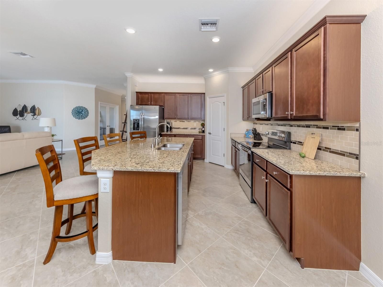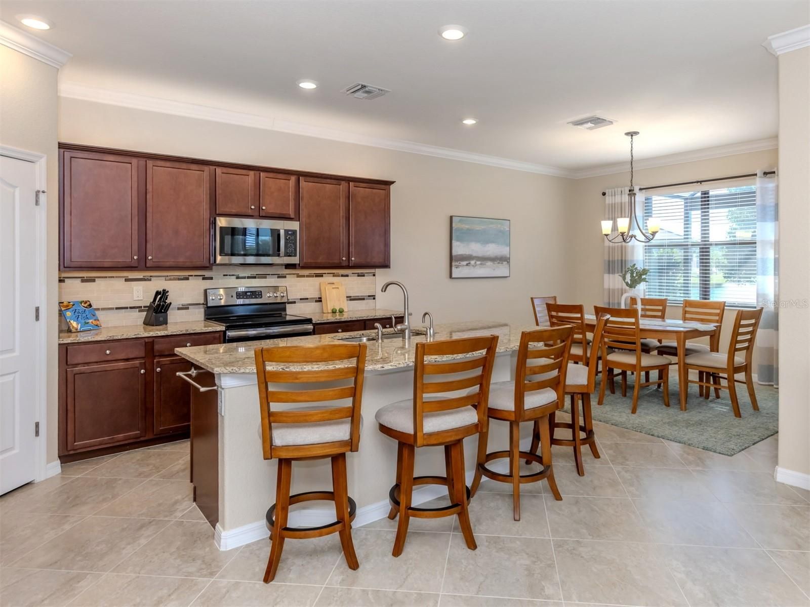 Welcome to this beautifully maintained Roma floor plan residence in Sarasota National, a gated community celebrated for its resort-inspired amenities and maintenance-free lifestyle. This furnished home features two bedrooms, a private den with doors that can serve as a third bedroom, and an open layout designed for comfort and functionality. Tile flooring extends throughout the home, creating a cohesive and low-maintenance interior. The spacious kitchen includes wood cabinetry, granite countertops, a walk-in pantry and a generous breakfast bar that opens to the dining area overlooking the water. The split floor plan offers privacy for guests, while crown molding, upgraded finishes, and a dedicated laundry room with cabinets and sink enhance daily convenience. Go outside to the extended lanai with brick pavers and a clear-view screen, ideal for morning coffee or evening gatherings overlooking the tranquil pond. A private homesite with no neighbor to one side provides an added sense of peace, and hurricane shutters ensure year-round confidence. Life in Sarasota National is designed for those who appreciate effortless living surrounded by natural beauty. Residents enjoy a wealth of resort amenities including a clubhouse with restaurant and tiki bar, fitness center, coffee lounge, pool and spa, and tennis and pickleball courts. Experience scenic recreational paths or spend time with friends at community events that bring neighbors together. Just minutes from the beaches of Venice and Nokomis, CoolToday Park and downtown Wellen Park, this location offers endless opportunities to enjoy Florida’s coastal charm. Browse the weekly farmers market, listen to live music under the stars, or savor dining and shopping close to home. Combining privacy, turnkey convenience and a vibrant social setting, this residence represents the best of Gulf Coast living within one of the area’s desirable gated communities.