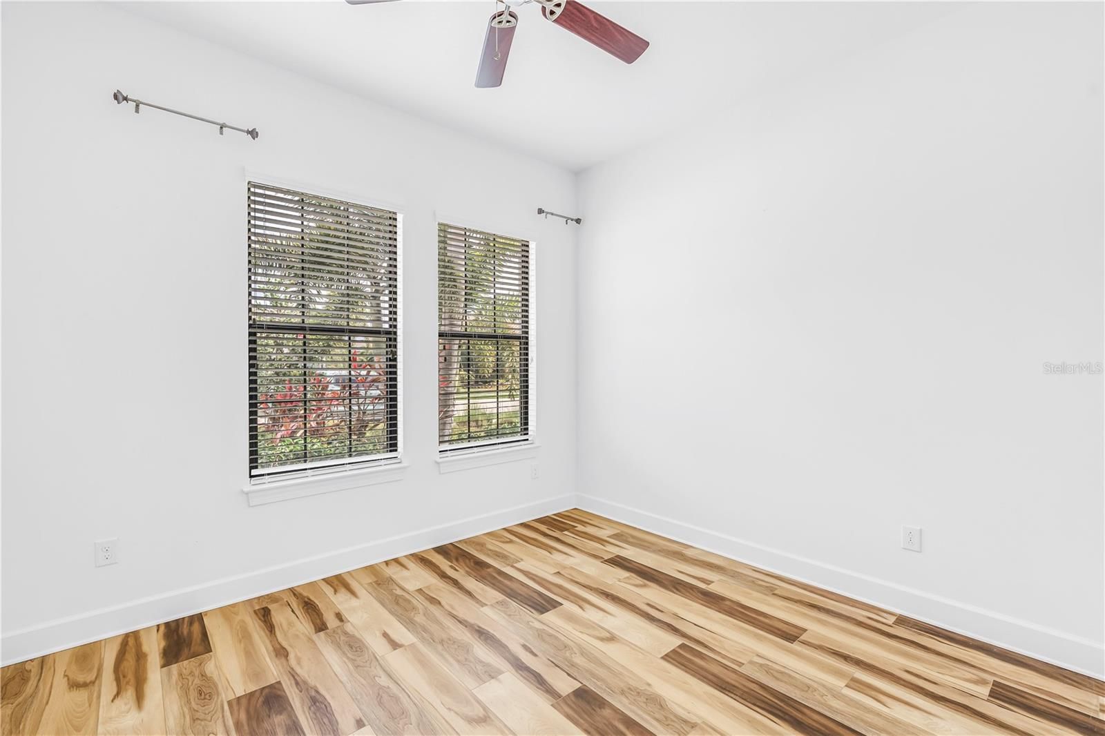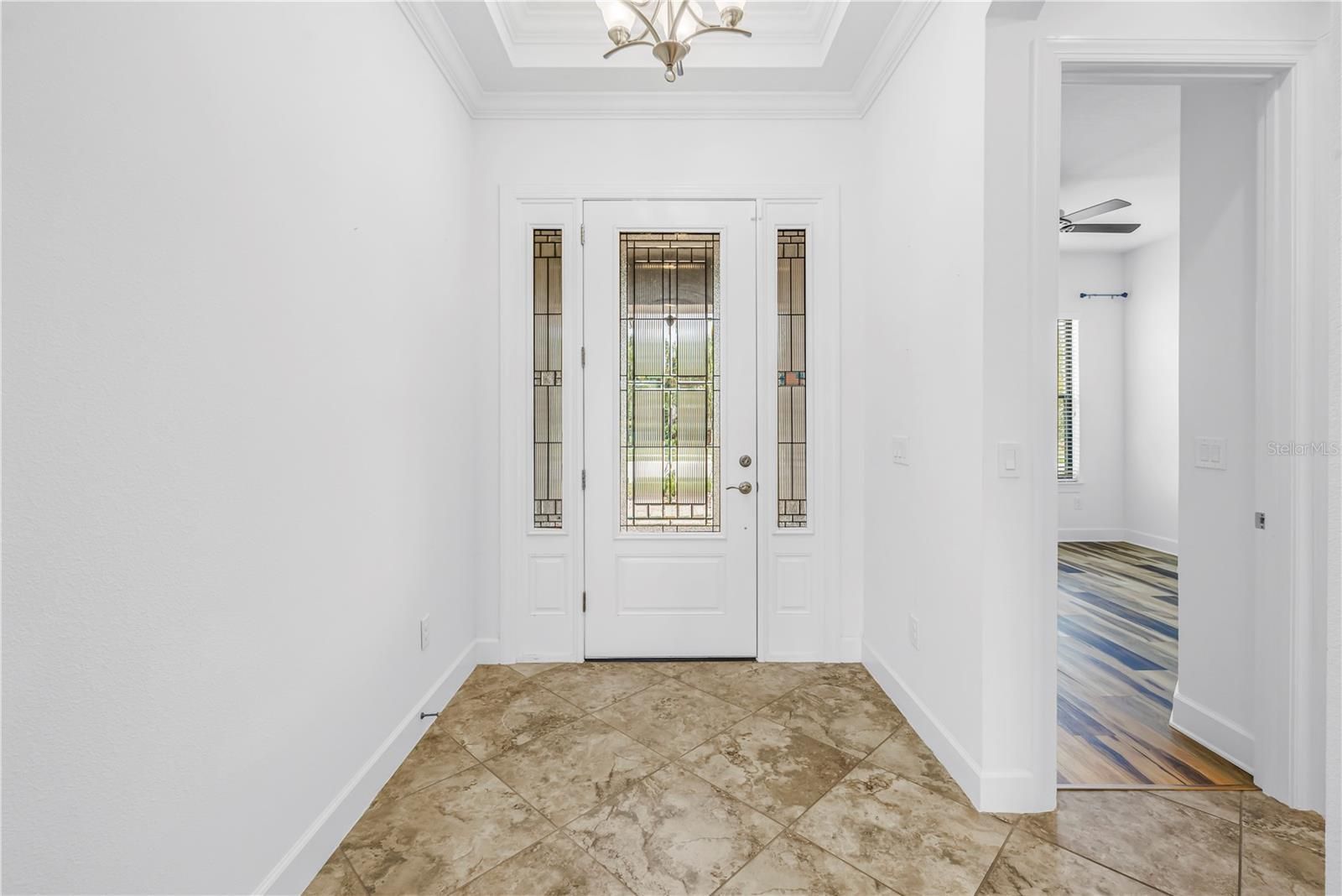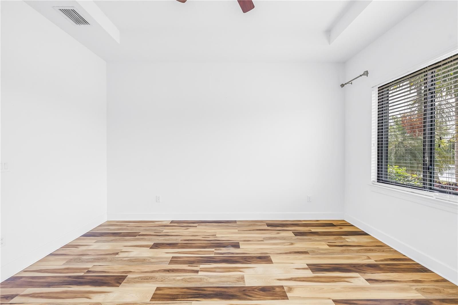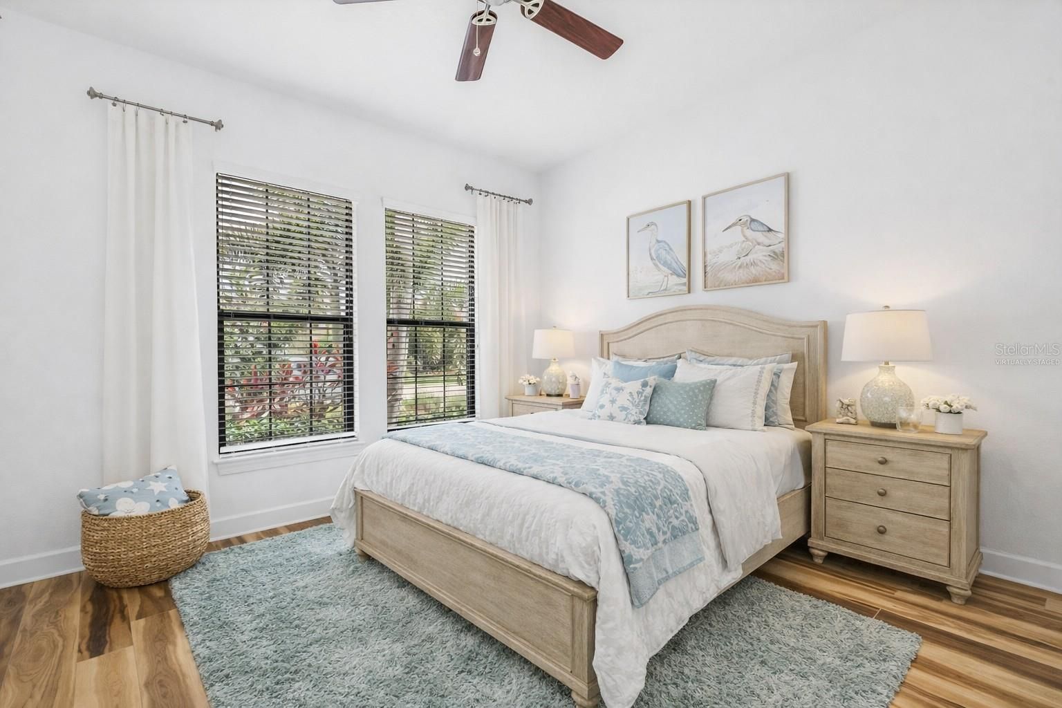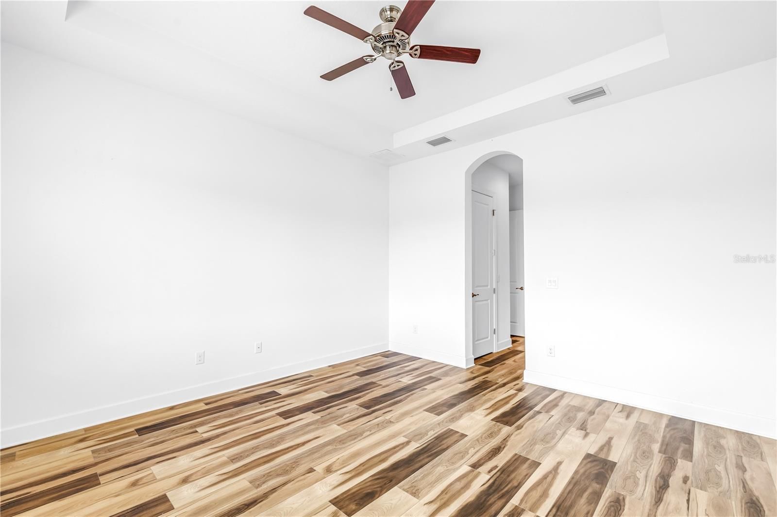 - Ceiling Fan(s), Coffered Ceiling(s), Crown Molding, Kitchen/Family Room Combo, Living/Dining Room, In-Wall Pest Control, Main Level Primary, Solid Surface Counters, Split Bedrooms, Stone Counters, Thermostat, Tray Ceiling(s), Walk-In Closet(s), Window Treatments