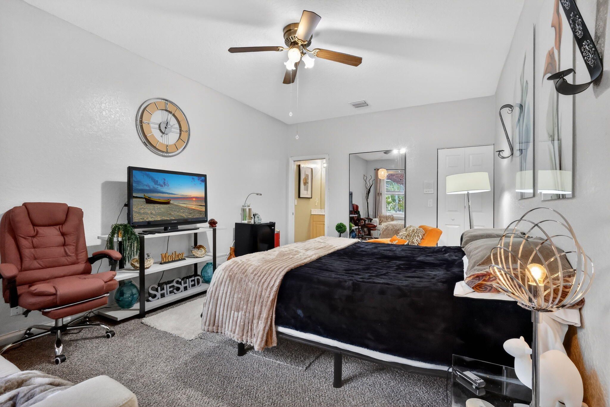 Welcome to this exceptional private courtyard home located in the highly sought-after 55+ gated community of The Club at Indian Lakes. This beautifully maintained residence offers a rare and versatile layout featuring a 2-bedroom, 2-bath main home plus a separate 1-bedroom, 1-bath guest house/studio, ideal for visiting guests or use as a private home office or den. Majestic double doors open to an oversized screened courtyard, creating a serene and private outdoor retreat perfect for relaxing or entertaining. The courtyard is enhanced by a retractable awning and secluded garden views that provide exceptional privacy. Inside the main home, you'll find a wide-open floor plan with vaulted ceilings, filling the space with natural light and creating an airy, spacious feel. Custom window treatments complement the home's warm and inviting design. The kitchen is equipped with gorgeous granite counters and backsplash, stainless appliances, ample cabinetry, and generous counter spaceperfect for both everyday living and hosting guests. The primary suite offers comfort and tranquility, while the secondary bedroom and bath provide flexibility for guests or hobbies. The detached guest house/in-law suite includes a private bathroom and separate entrance, making it ideal for a home office, studio, den, or overnight visitors seeking privacy. A spacious 2-car garage and whole-house Accordion hurricane shutters add peace of mind and convenience. The Club at Indian Lakes is a 24-hour manned, gated community known for its vibrant lifestyle and beautifully updated amenities. Residents enjoy a newly renovated clubhouse, social hall, fitness center, card and billiard rooms, and an array of activities and clubs. Outdoors, the community features a resort-style swimming pool and spa, seven Har-Tru tennis courts, pickleball and bocce courts, and moreensuring there's always something to do. HOA services include lawn care, cable, and internet, allowing for low maintenance living in a friendly, active environment. This move-in-ready courtyard home offers comfort, privacy, and an unbeatable lifestylea rare opportunity in one of Boynton Beach's most desirable 55+ communities.