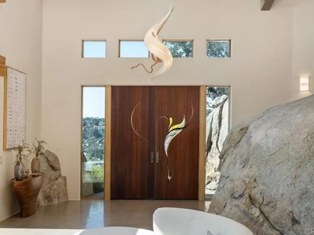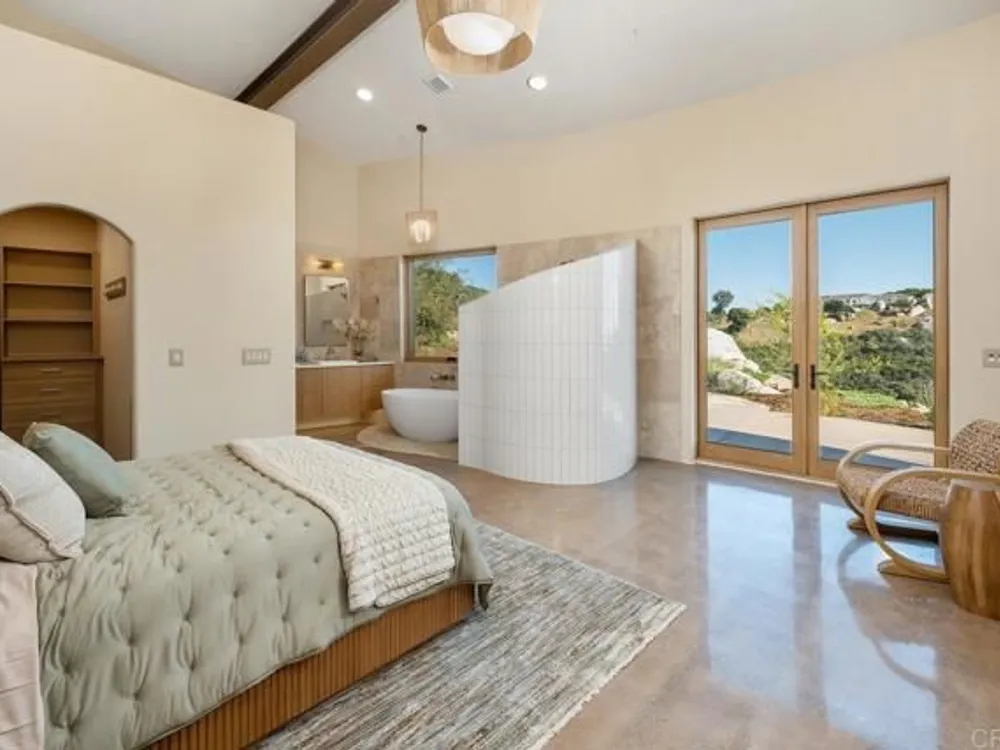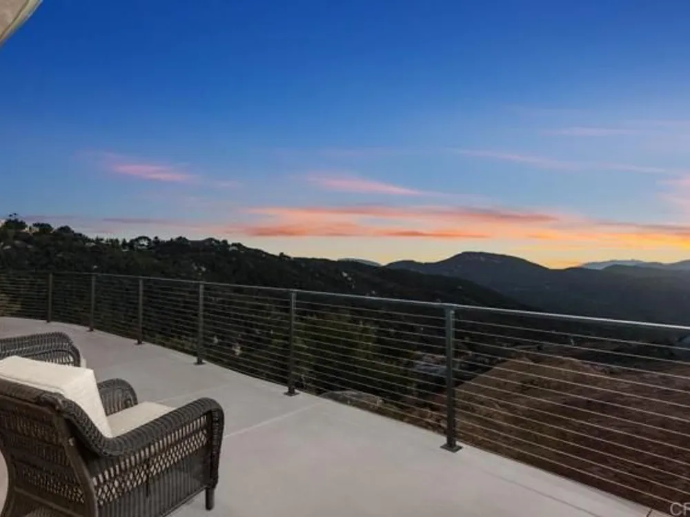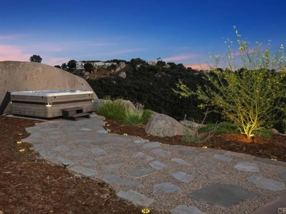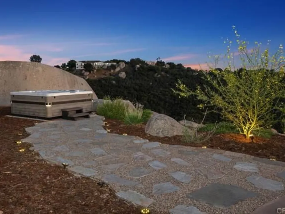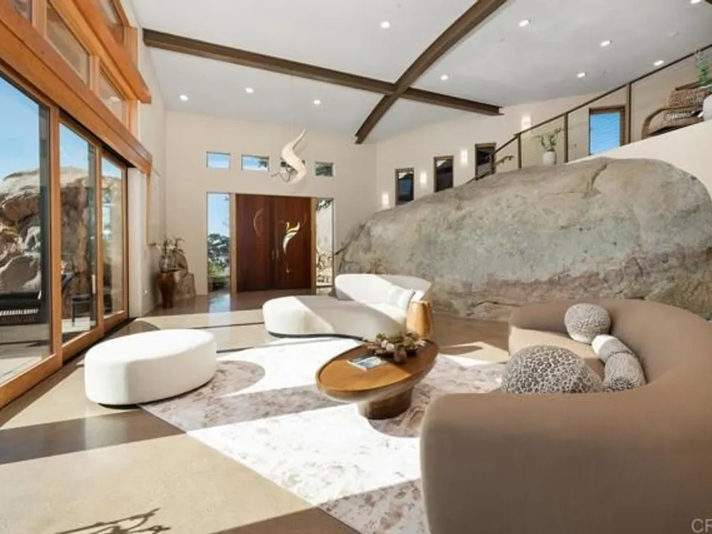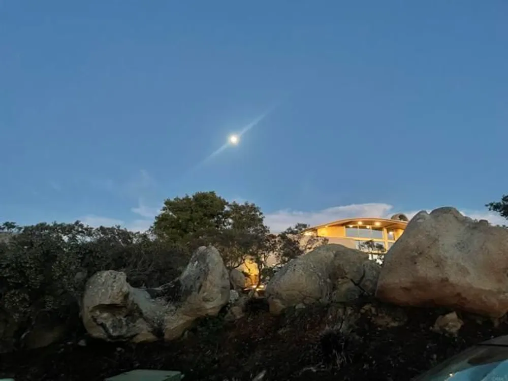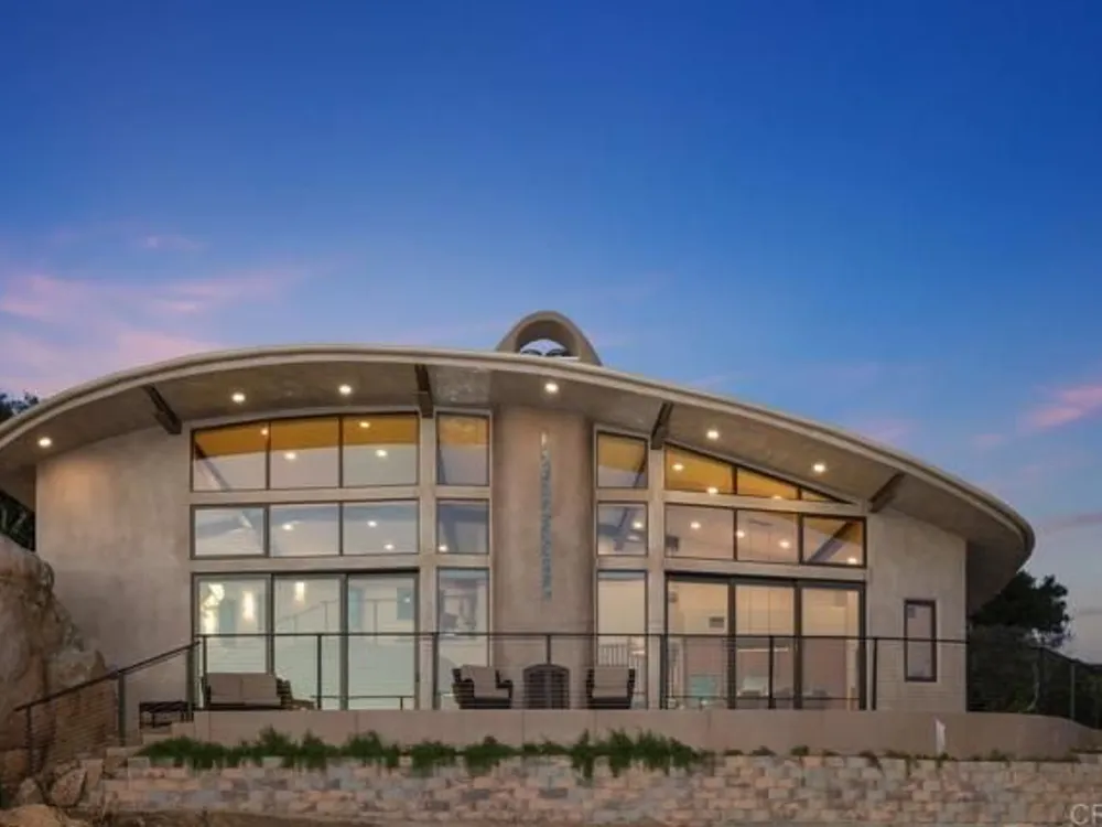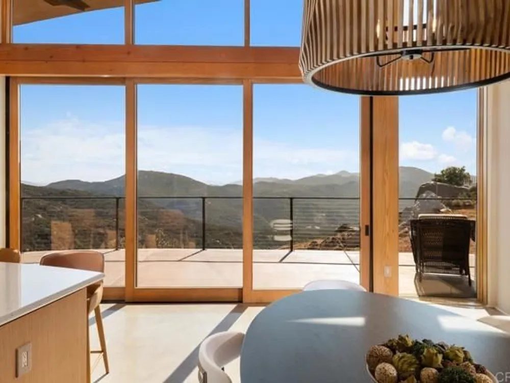 As recently featured in Dwell, an award-winning sustainable masterpiece envisioned by renowned architect Drew Hubbell of Hubbell & Hubbell. Perched at the edge of a canyon with panoramic views of the Pacific Ocean to the west and Palomar Mountain to the east. Hidden from the cul-de-sac below in Escondido’s iconic Boulder Landscape, this extraordinary “Museum of Imagination,” 3 bedroom, 4 bath custom home is harmoniously integrated into its natural surroundings of manzanita groves, native oaks, and massive granite boulders. Natural stone steps to the custom handcrafted entryway door you are immersed in a property that lives in harmony with its surroundings. Inside, a soaring open-concept living space you’re greeted by its carefully curated light child- chandelier, sculptural curved staircase anchored by a natural interior boulder, a majestic wood-burning fireplace, and floor-to-ceiling glass doors and windows that frame breathtaking vistas. Every material was selected for sustainability, wellness, and longevity from polished concrete floors and bamboo cabinetry to natural stone accents and non-toxic custom finishes. The Kitchen features a curved island, energy-efficient appliances, a state-of-the-art induction cooktop, and smart oven. The living and dining areas enjoy dramatic views and abundant daylight, enhanced by operable clerestory windows and passive cross-ventilation. The primary suite captures tranquil canyon views and offers direct access to a private spa deck. Its ensuite bathroom feels like a retreat, with a curved walk-in tile shower, soaking tub, dual vanity, and bamboo cabinetry. The secondary loft-style bedroom offers expansive ocean and sunset views and each of the guest suites feature ensuite bathrooms and serene privacy. This Net-Zero home is powered by solar panels and includes mini-split HVAC systems, foam-core panel roofing, and ICCF walls made from post-consumer materials providing exceptional insulation, fire resistance, and durability. Deep overhangs and integrated interior boulders help regulate temperature and minimize energy use. The UV/Ozone spa system reduces chemical usage, while preserved native landscaping enhances the property's ecological integrity. Winner of the 2023 San Diego Green Building Council’s Maverick Award for Sustainable Leadership, and recognized by the County of San Diego’s Green Building Program. Just minutes from the exclusive Golden Door Resort, boutique wineries, the Escondido Center for the Arts, the world-famous Safari Park, and scenic local hiking trails, this location blends privacy with convenient access to the best of North County. San Diego—often celebrated as America’s Finest City—is a short drive away, with its world-class beaches, vibrant cultural scene, and year-round temperate climate.