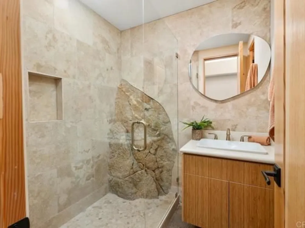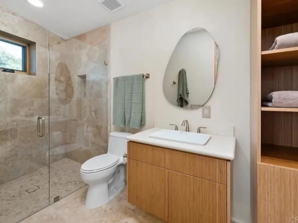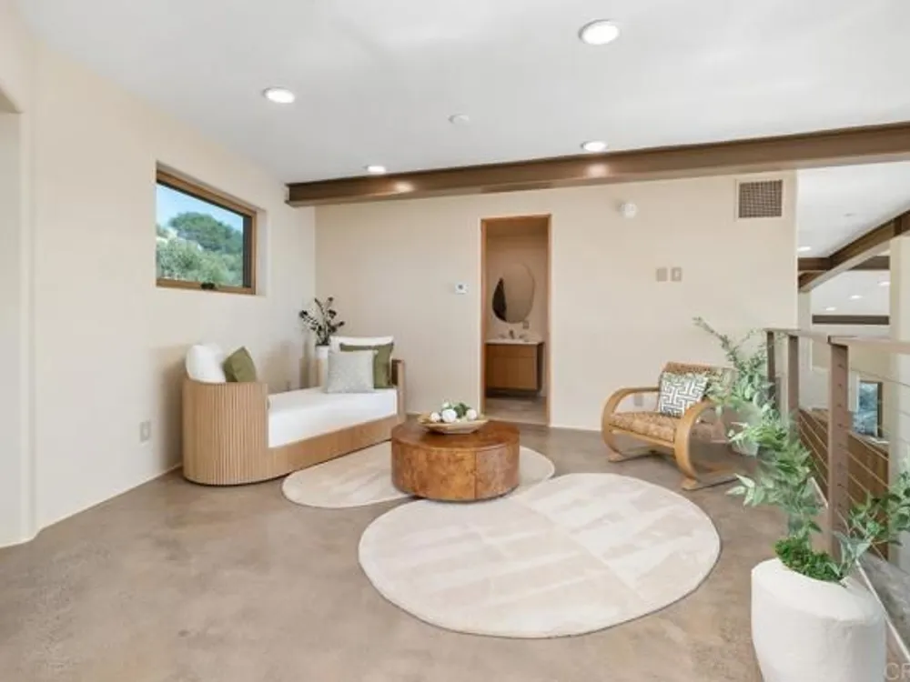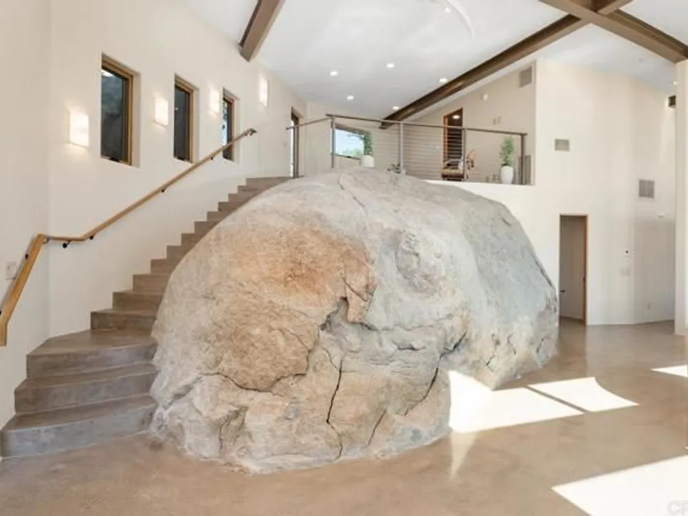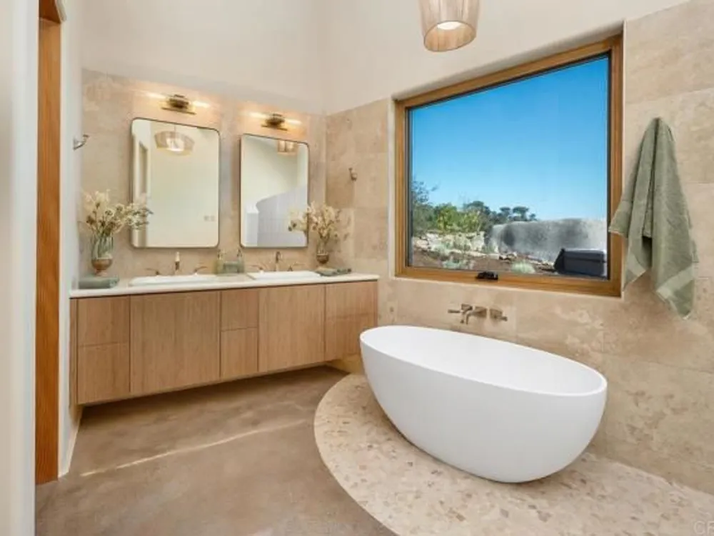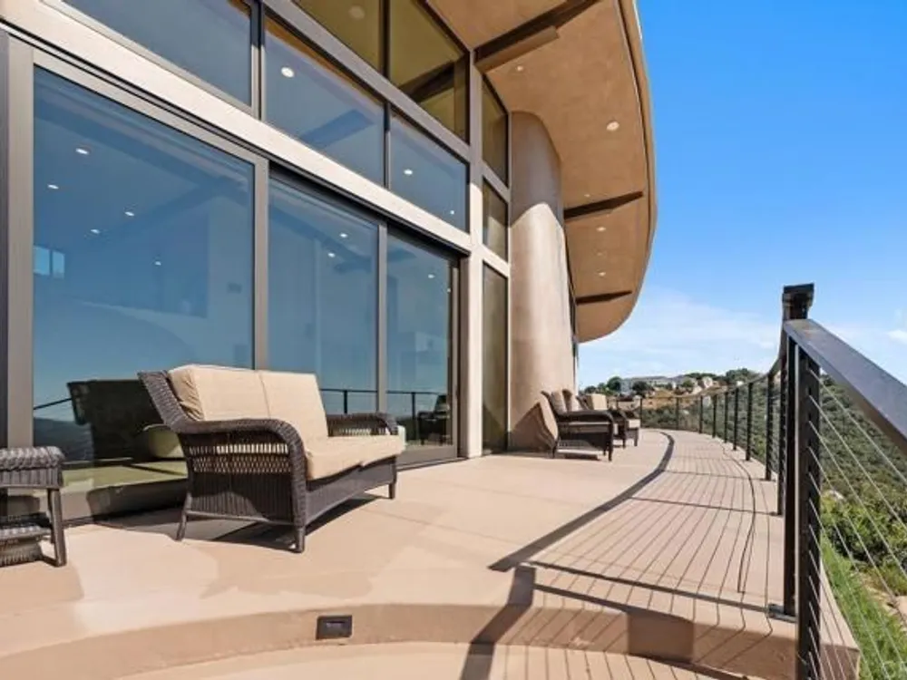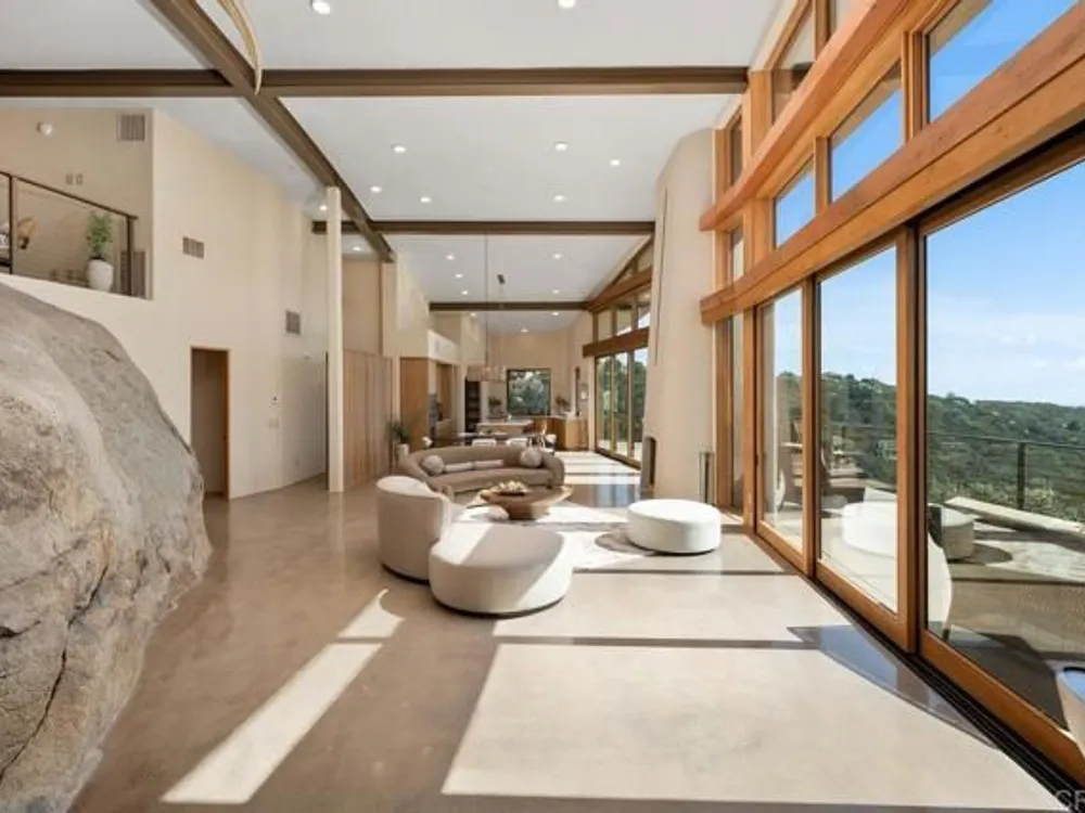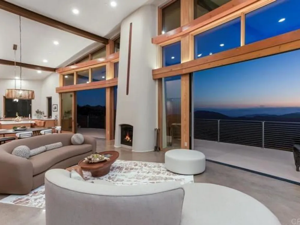 As recently featured in Dwell, an award-winning sustainable masterpiece envisioned by renowned architect Drew Hubbell of Hubbell & Hubbell. Perched at the edge of a canyon with panoramic views of the Pacific Ocean to the west and Palomar Mountain to the east. Hidden from the cul-de-sac below in Escondido’s iconic Boulder Landscape, this extraordinary “Museum of Imagination,” 3 bedroom, 4 bath custom home is harmoniously integrated into its natural surroundings of manzanita groves, native oaks, and massive granite boulders. Natural stone steps to the custom handcrafted entryway door you are immersed in a property that lives in harmony with its surroundings. Inside, a soaring open-concept living space you’re greeted by its carefully curated light child- chandelier, sculptural curved staircase anchored by a natural interior boulder, a majestic wood-burning fireplace, and floor-to-ceiling glass doors and windows that frame breathtaking vistas. Every material was selected for sustainability, wellness, and longevity from polished concrete floors and bamboo cabinetry to natural stone accents and non-toxic custom finishes. The Kitchen features a curved island, energy-efficient appliances, a state-of-the-art induction cooktop, and smart oven. The living and dining areas enjoy dramatic views and abundant daylight, enhanced by operable clerestory windows and passive cross-ventilation. The primary suite captures tranquil canyon views and offers direct access to a private spa deck. Its ensuite bathroom feels like a retreat, with a curved walk-in tile shower, soaking tub, dual vanity, and bamboo cabinetry. The secondary loft-style bedroom offers expansive ocean and sunset views and each of the guest suites feature ensuite bathrooms and serene privacy. This Net-Zero home is powered by solar panels and includes mini-split HVAC systems, foam-core panel roofing, and ICCF walls made from post-consumer materials providing exceptional insulation, fire resistance, and durability. Deep overhangs and integrated interior boulders help regulate temperature and minimize energy use. The UV/Ozone spa system reduces chemical usage, while preserved native landscaping enhances the property's ecological integrity. Winner of the 2023 San Diego Green Building Council’s Maverick Award for Sustainable Leadership, and recognized by the County of San Diego’s Green Building Program. Just minutes from the exclusive Golden Door Resort, boutique wineries, the Escondido Center for the Arts, the world-famous Safari Park, and scenic local hiking trails, this location blends privacy with convenient access to the best of North County. San Diego—often celebrated as America’s Finest City—is a short drive away, with its world-class beaches, vibrant cultural scene, and year-round temperate climate.