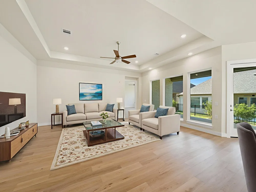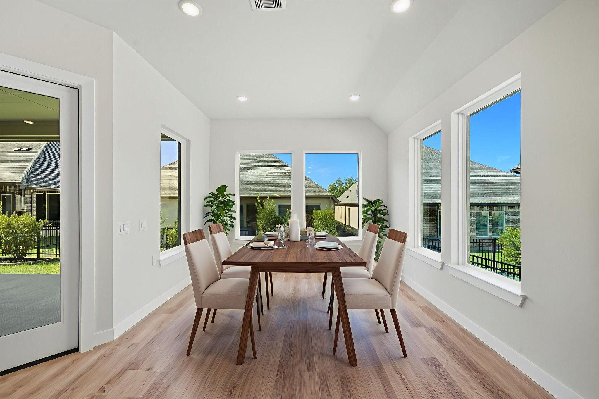 Experience the ultimate in resort-style living at Chambers Creek, a gated Active Adult Community nestled in Houston’s hill country, where luxury and wellness come together. Enjoy robust recreational activities, a clubhouse with a fitness center, café, and resort-style pool at The Summit, plus serene outdoor spaces with a vineyard, garden, and chapel—all while benefiting from the convenience of front yard maintenance. The Daisy floorplan, located in the exclusive Bridgeway section with a stunning bridge upon entry, offers an abundance of natural light, a spacious 3-car garage perfect for active adults, and a large patio ideal for outdoor living and entertaining. Don't miss out on this incredible opportunity to live the lifestyle you deserve!